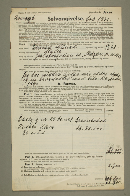 - Printed forms. E.g. income tax forms with small amounts of handwritten text scattered across the pages, or telegrams where text is filled in in the appropriate fields. The complicating factor for transcribing, encoding and representing is the intricate structure of the forms and the fact that, although Munch’s text and the text of the form are interconnected, the text of the form is irrelevant to our end users because it’s not Munch’s, but without it Munch’s text loses its function