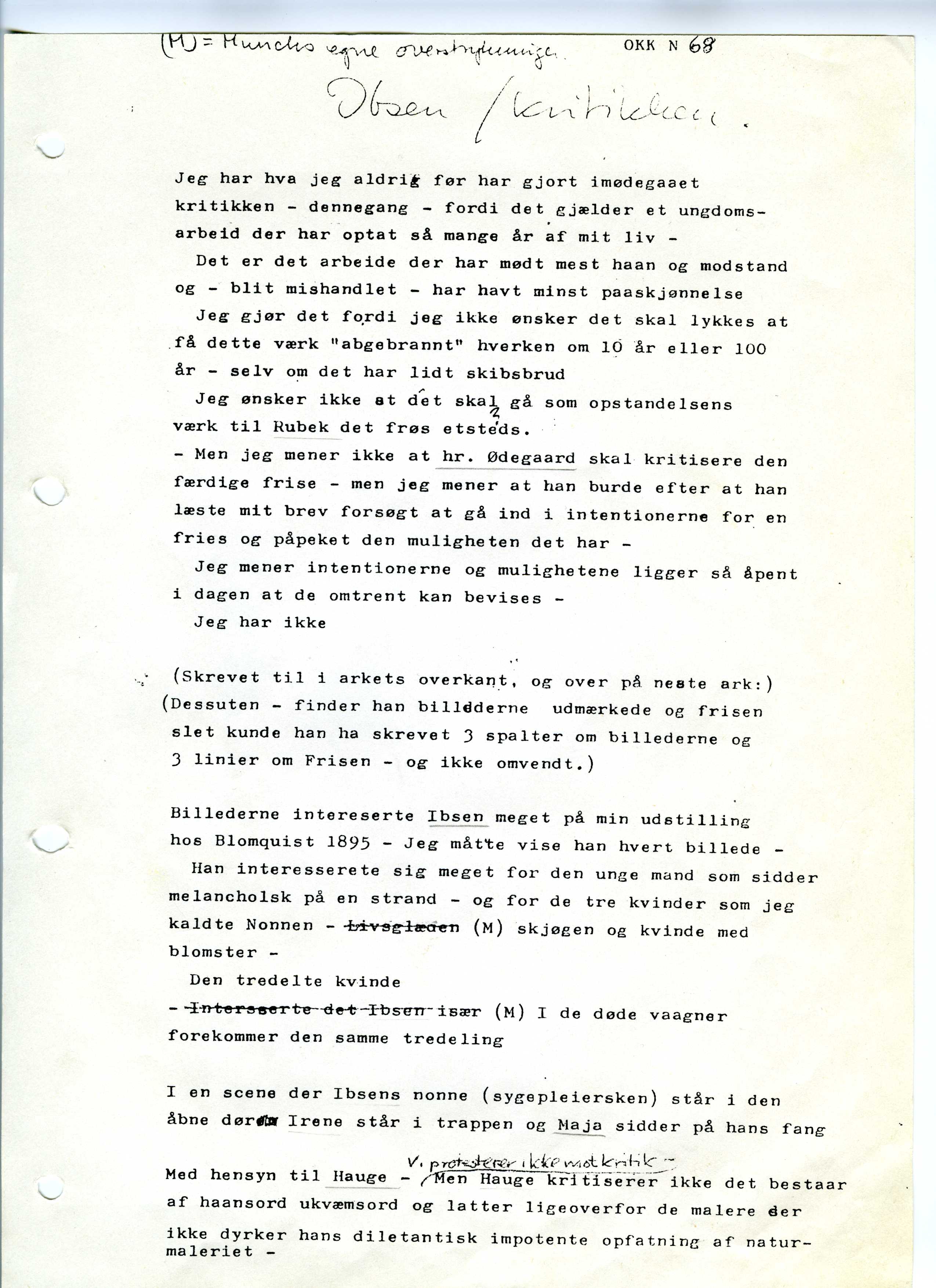 Filologisk kommentar: Teksten finnes bare som avskrift hos Munchmuseet.