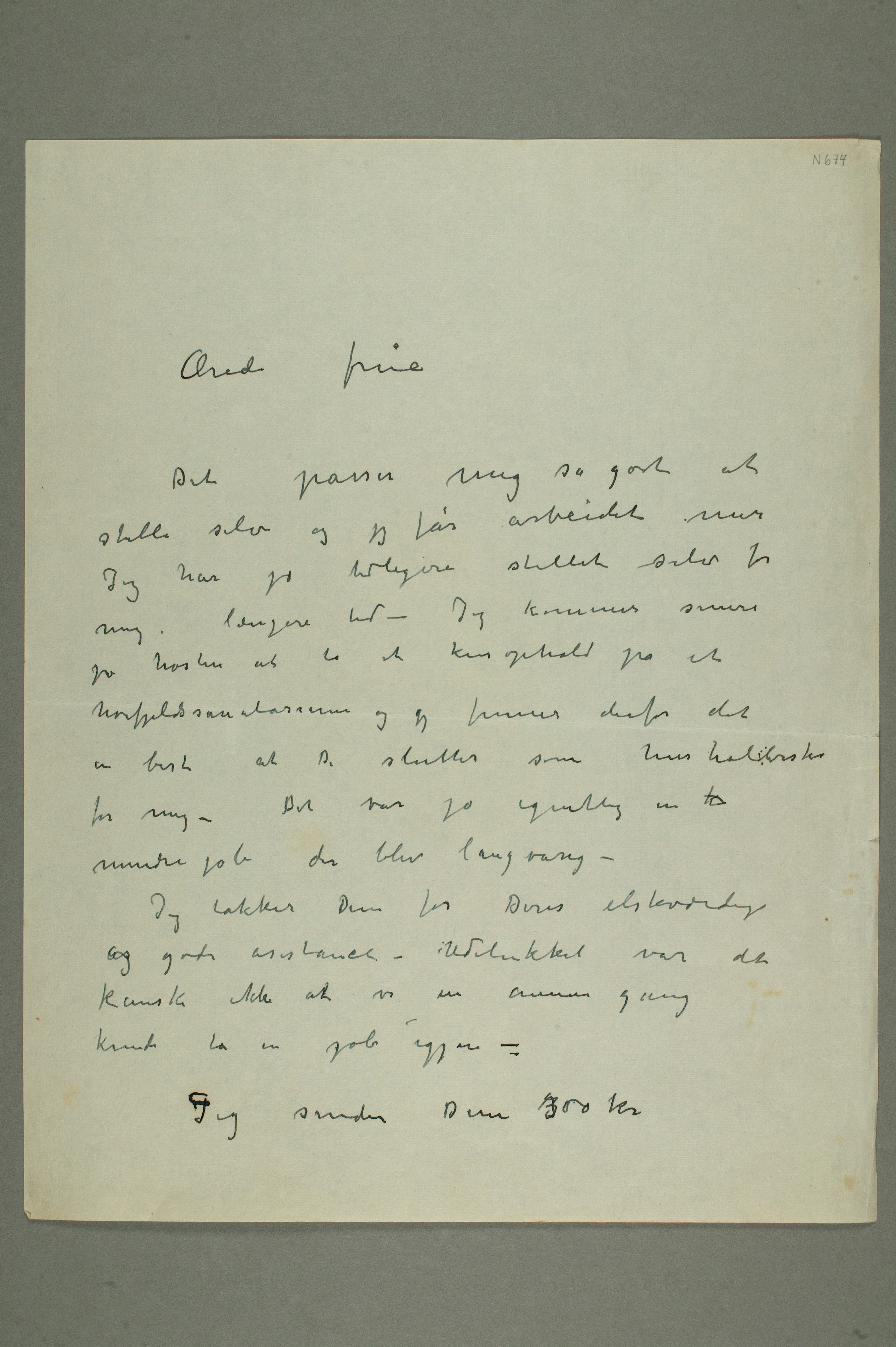 MM N 674, Munchmuseet. Ikke datert. Brevutkast til Uidentifisert kvinne.