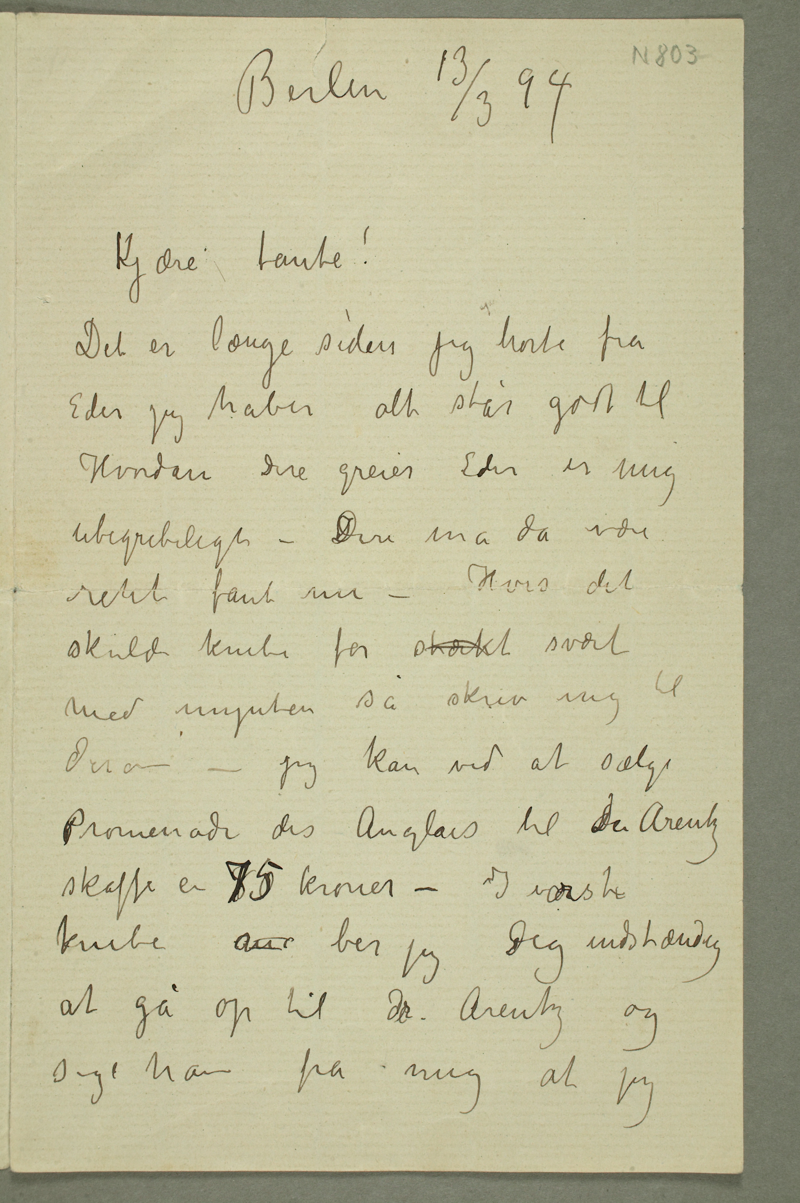 MM N 803, Munchmuseet. Datert 13.3.1894. Brev til Karen Bjølstad