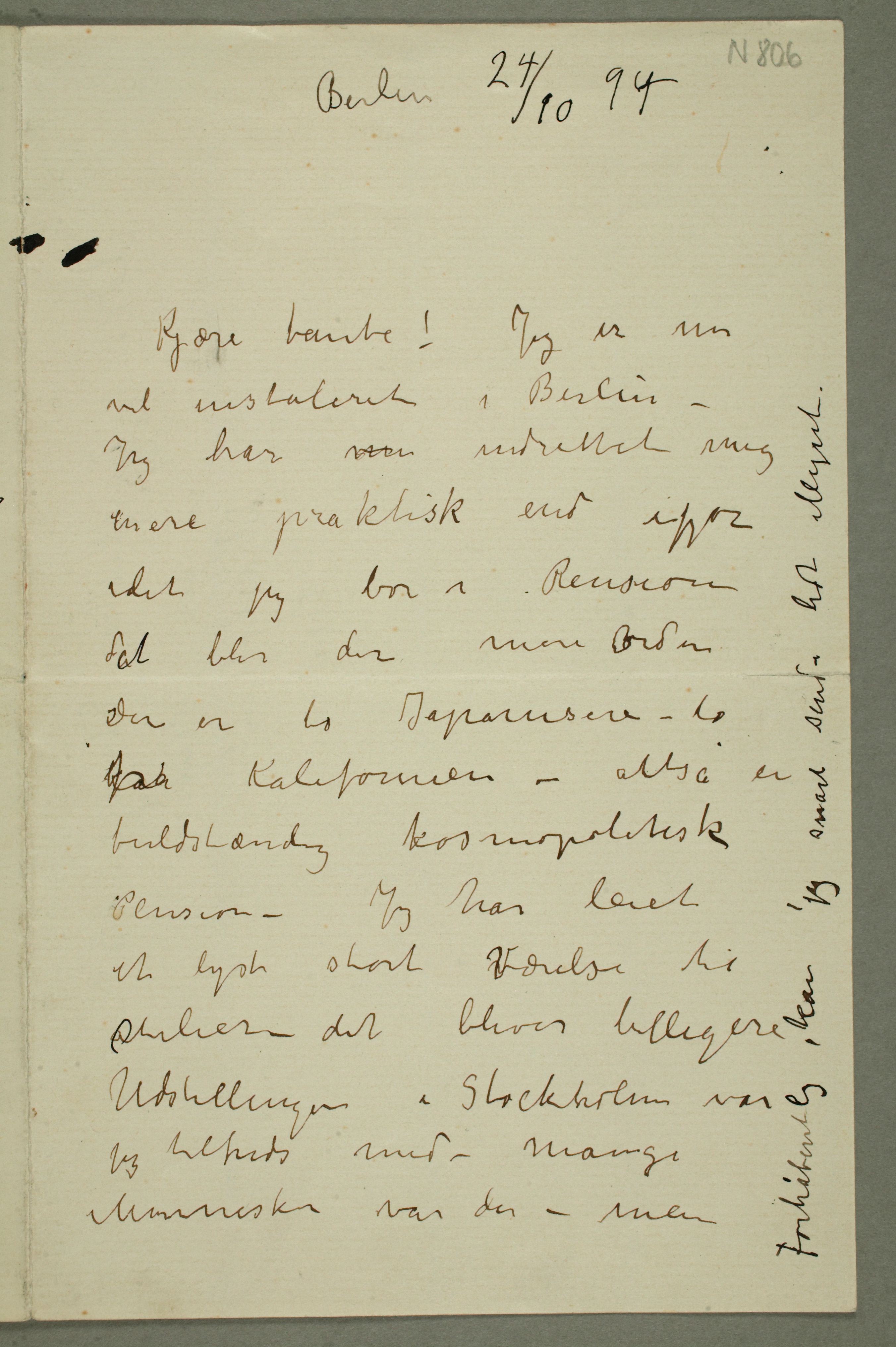 MM N 806, Munchmuseet. Datert 24.10.1894. Brev til Karen Bjølstad