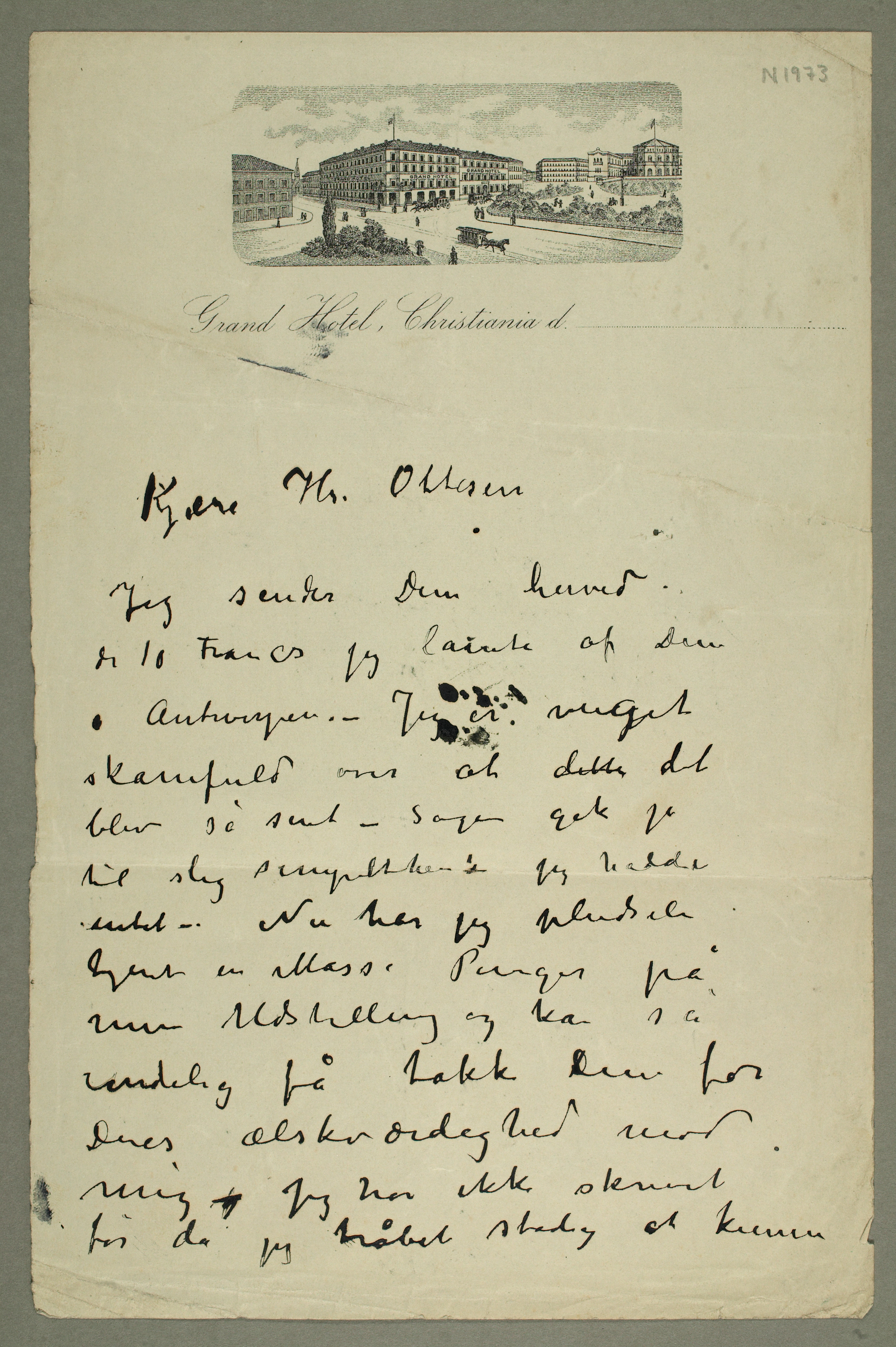 MM N 1973, Munchmuseet. Ikke datert. Brevutkast til Ottesen.