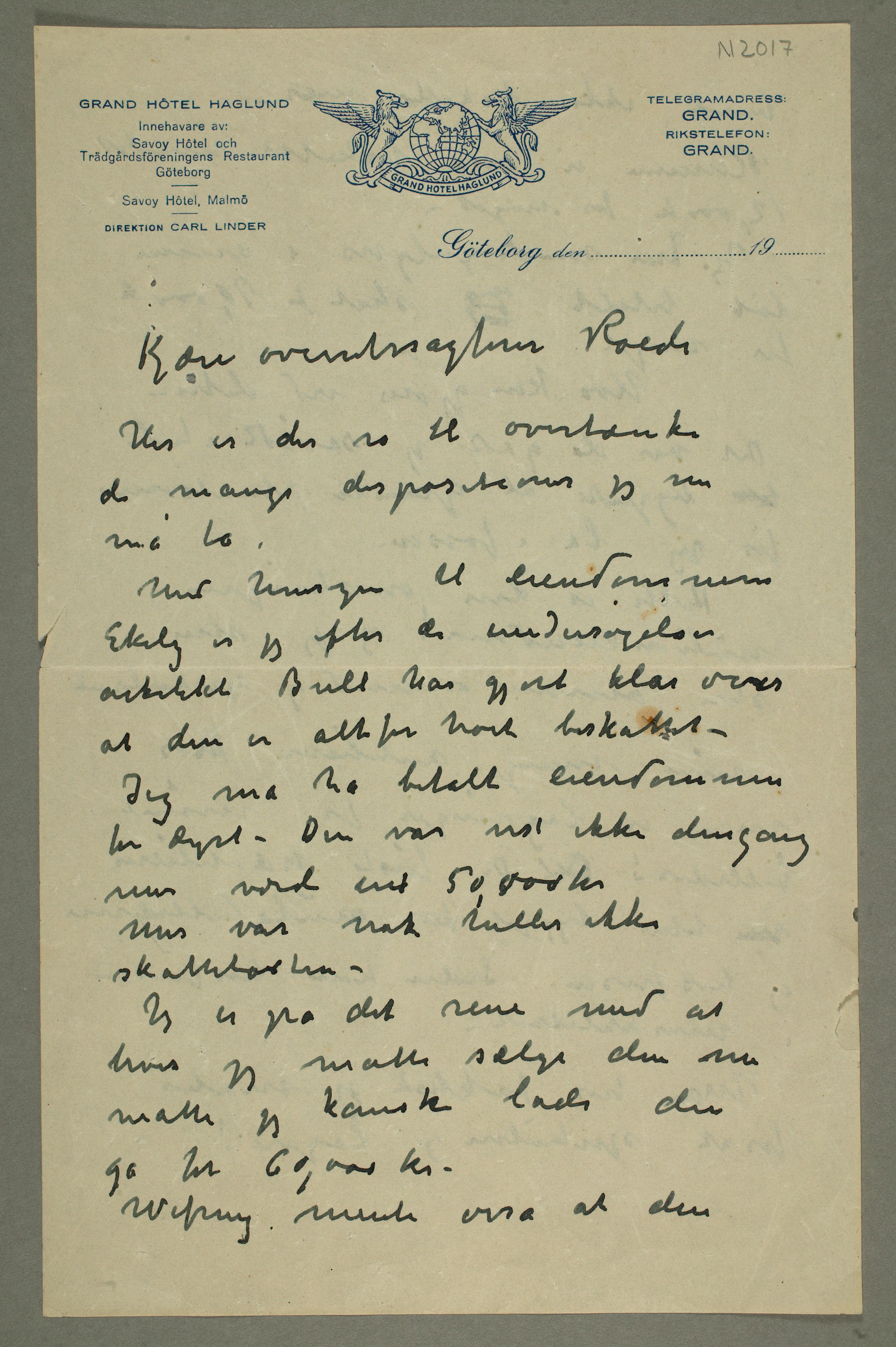 MM N 2017, Munchmuseet. Ikke datert. Brevutkast til Johannes Roede.