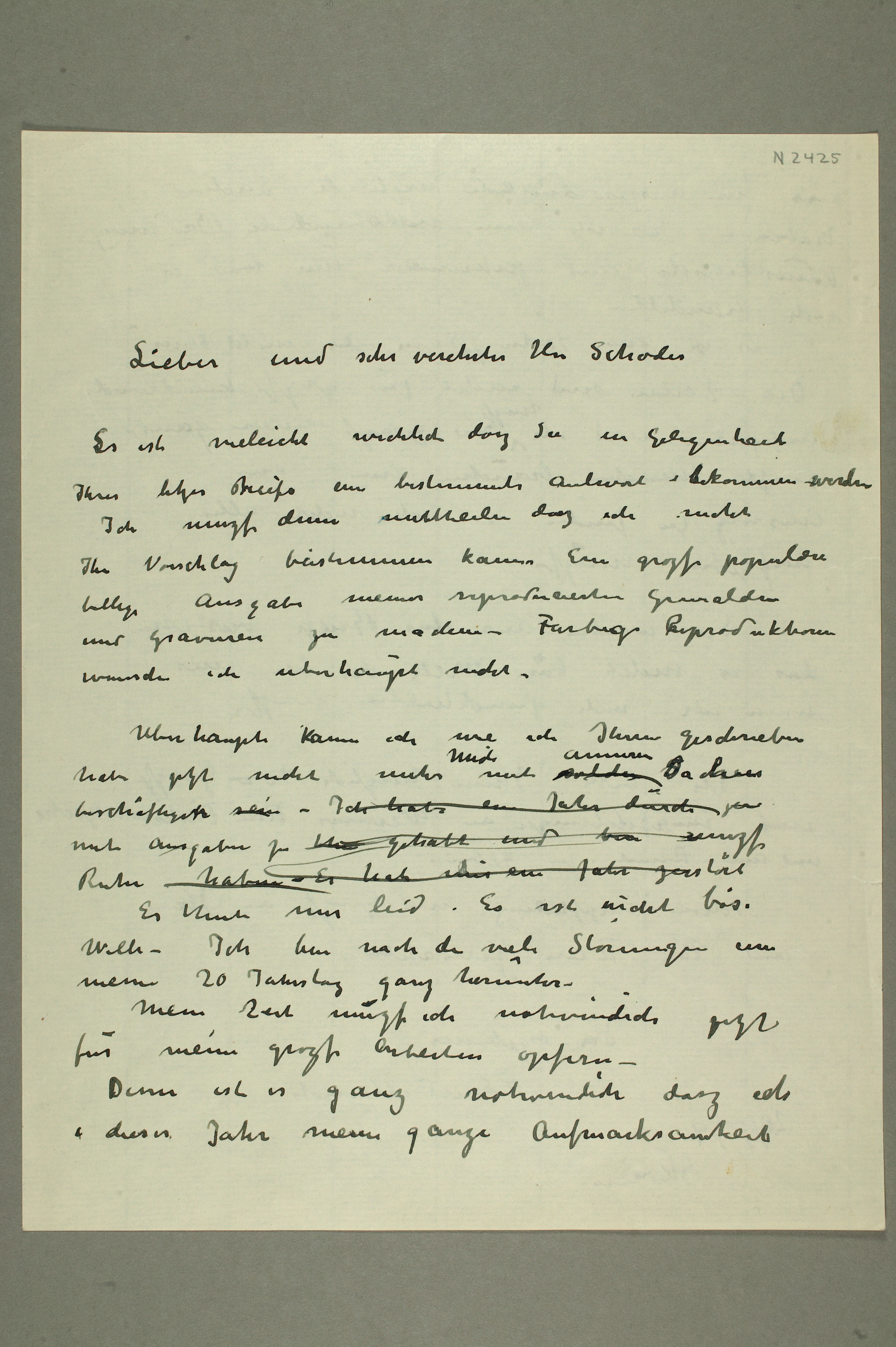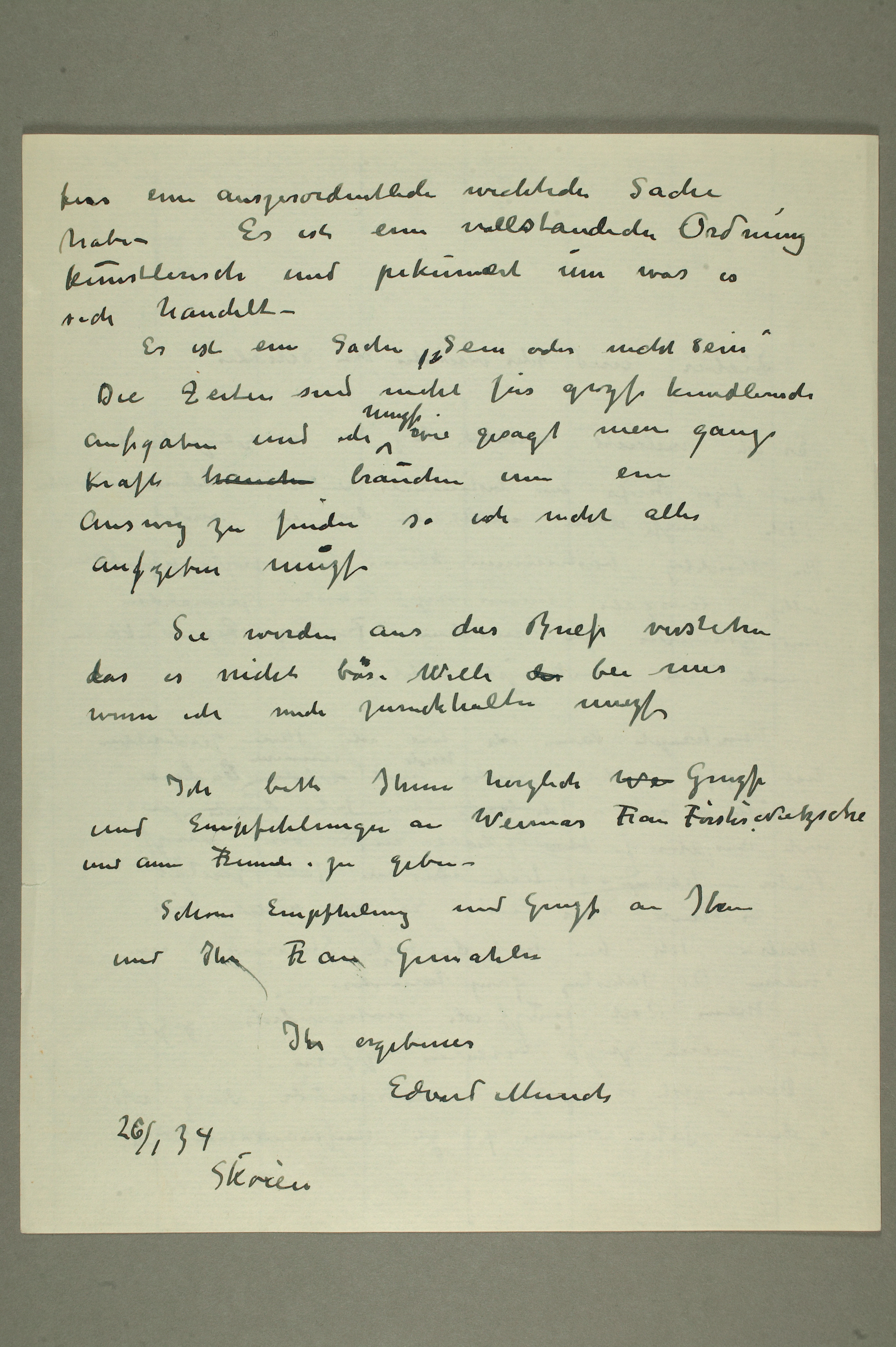 MM N 2425, Munchmuseet. Datert 26.1.1934. Brevutkast til Thilo Schoder.