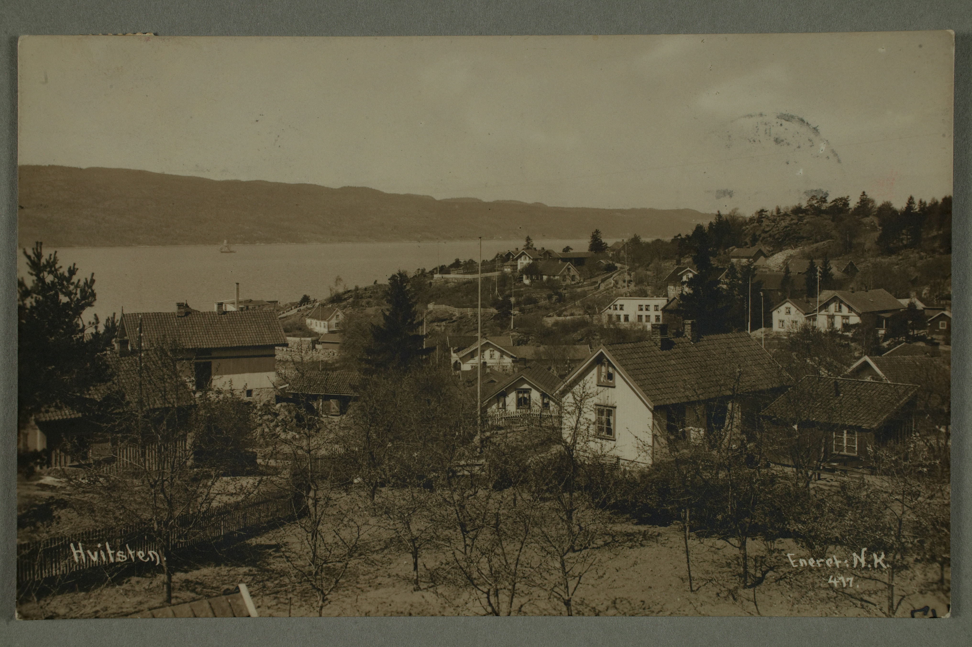 På illustrert postkort. Mål 85×136 mm (h×b)