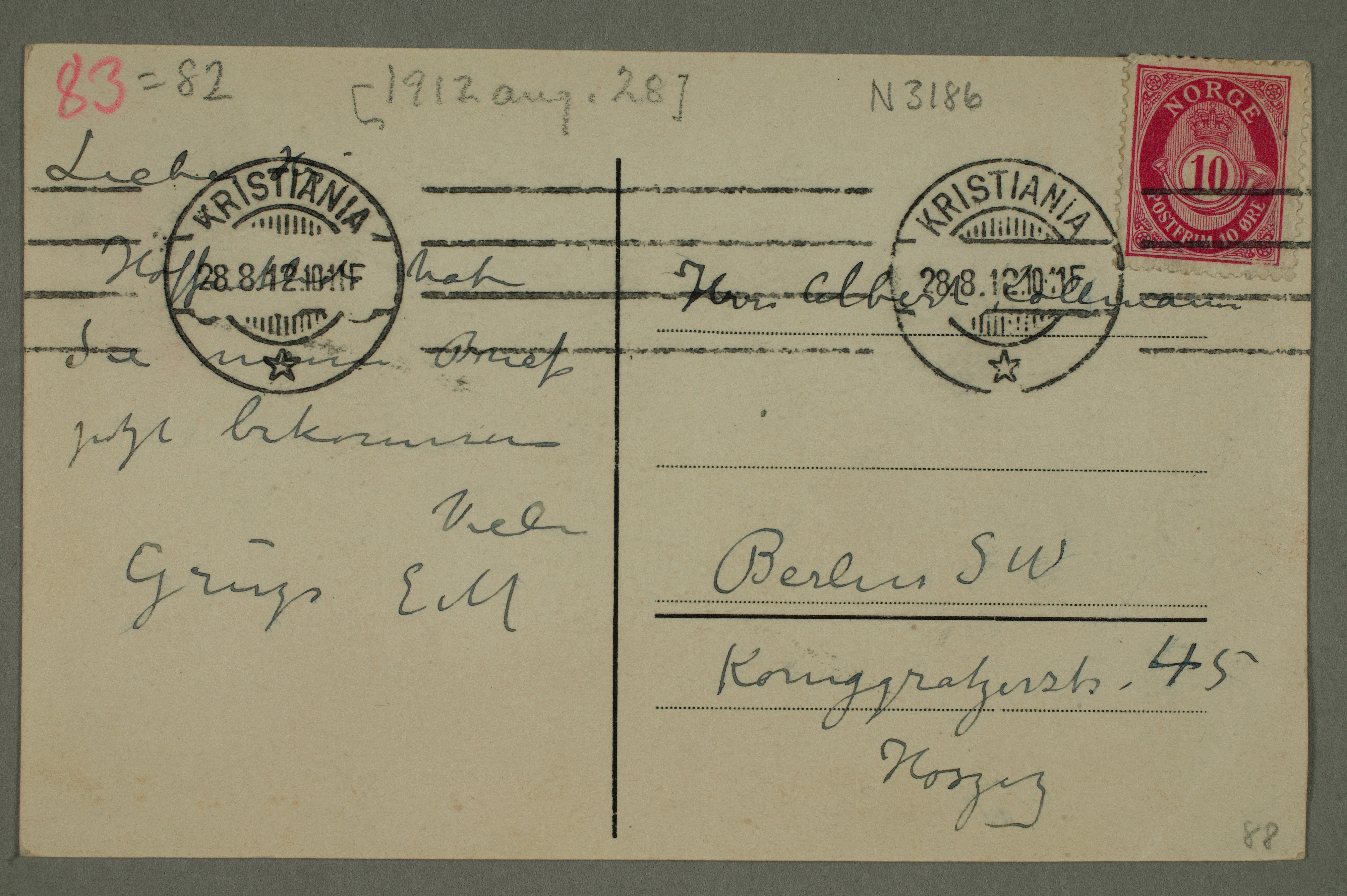 MM N 3186, Munchmuseet. Datert 28.8.1912. Brev til Albert Kollmann