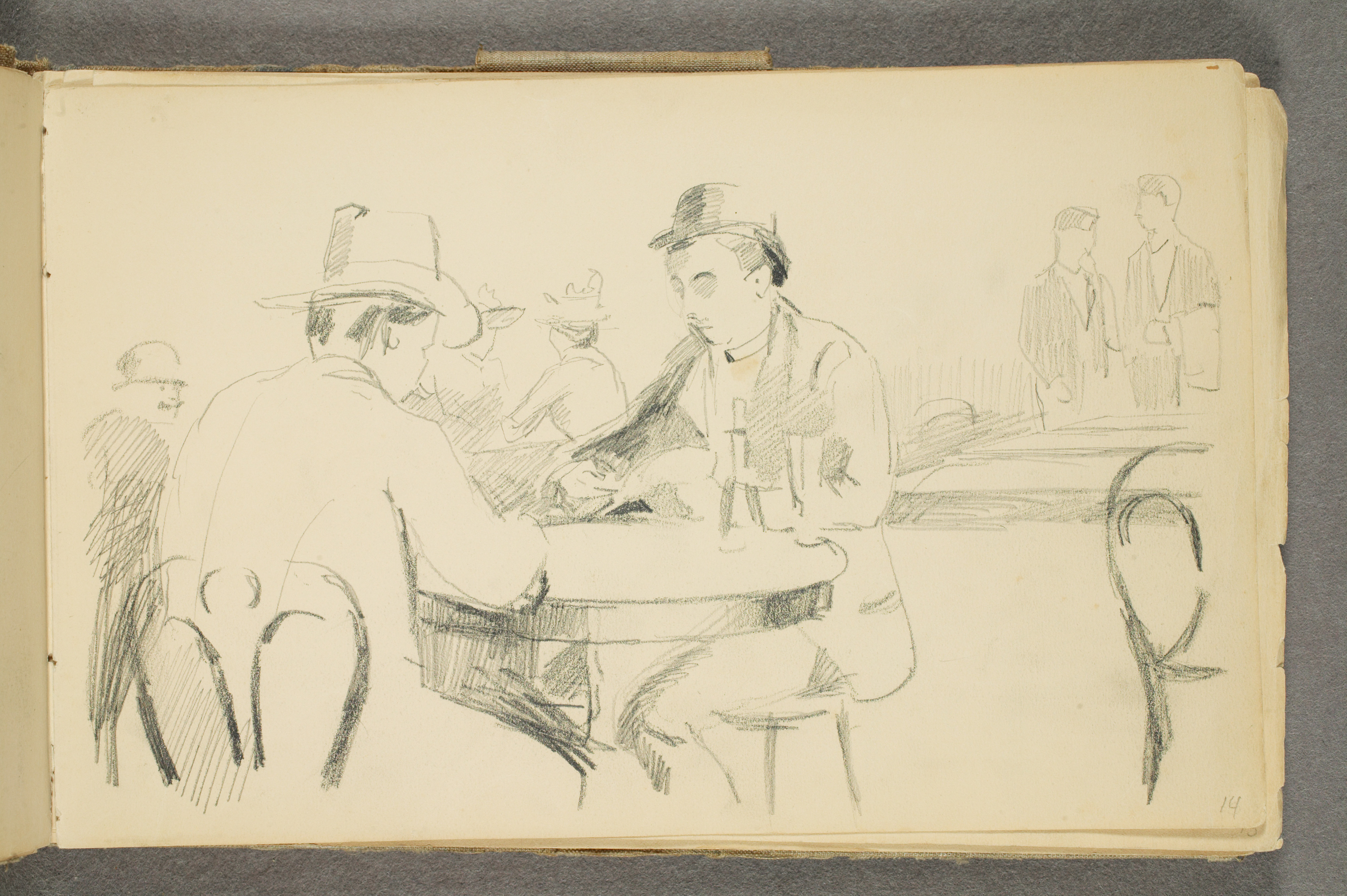 På skissebokpapir. Mål 270×170 mm (h×b)