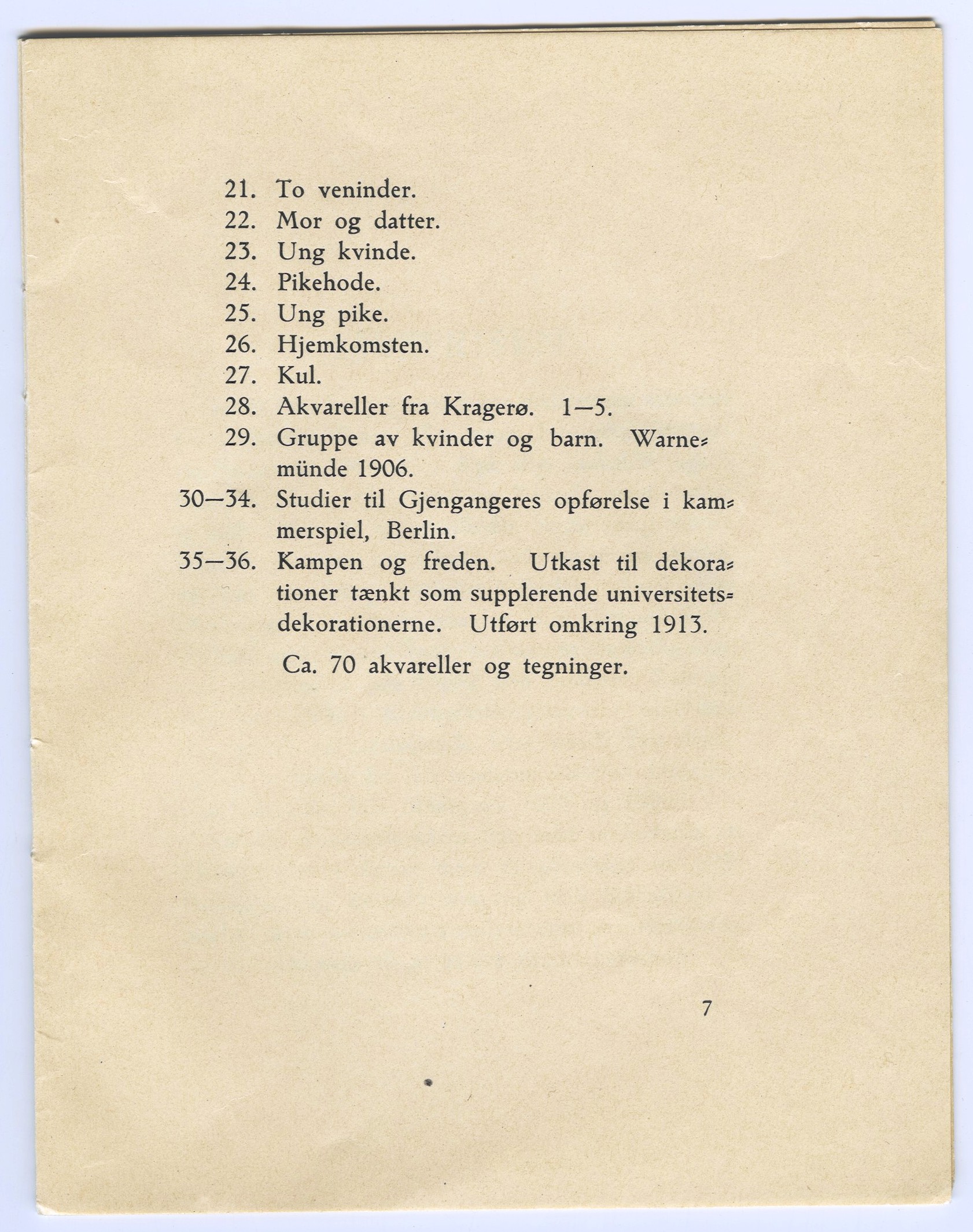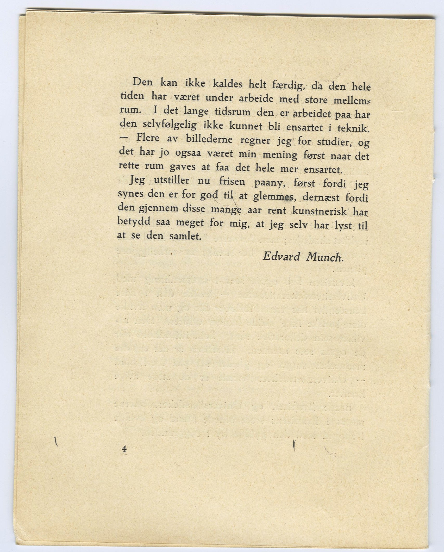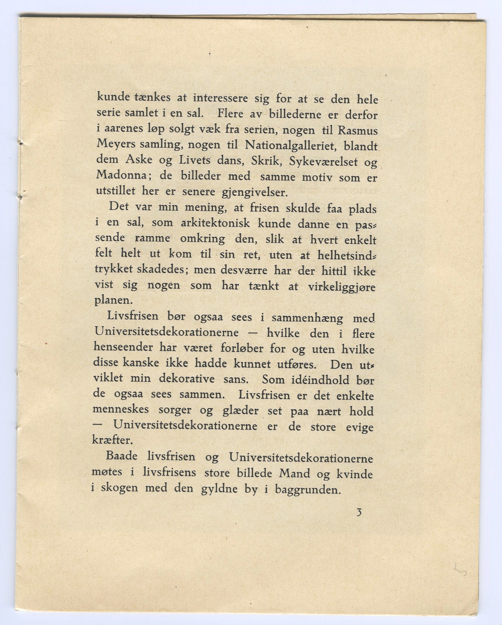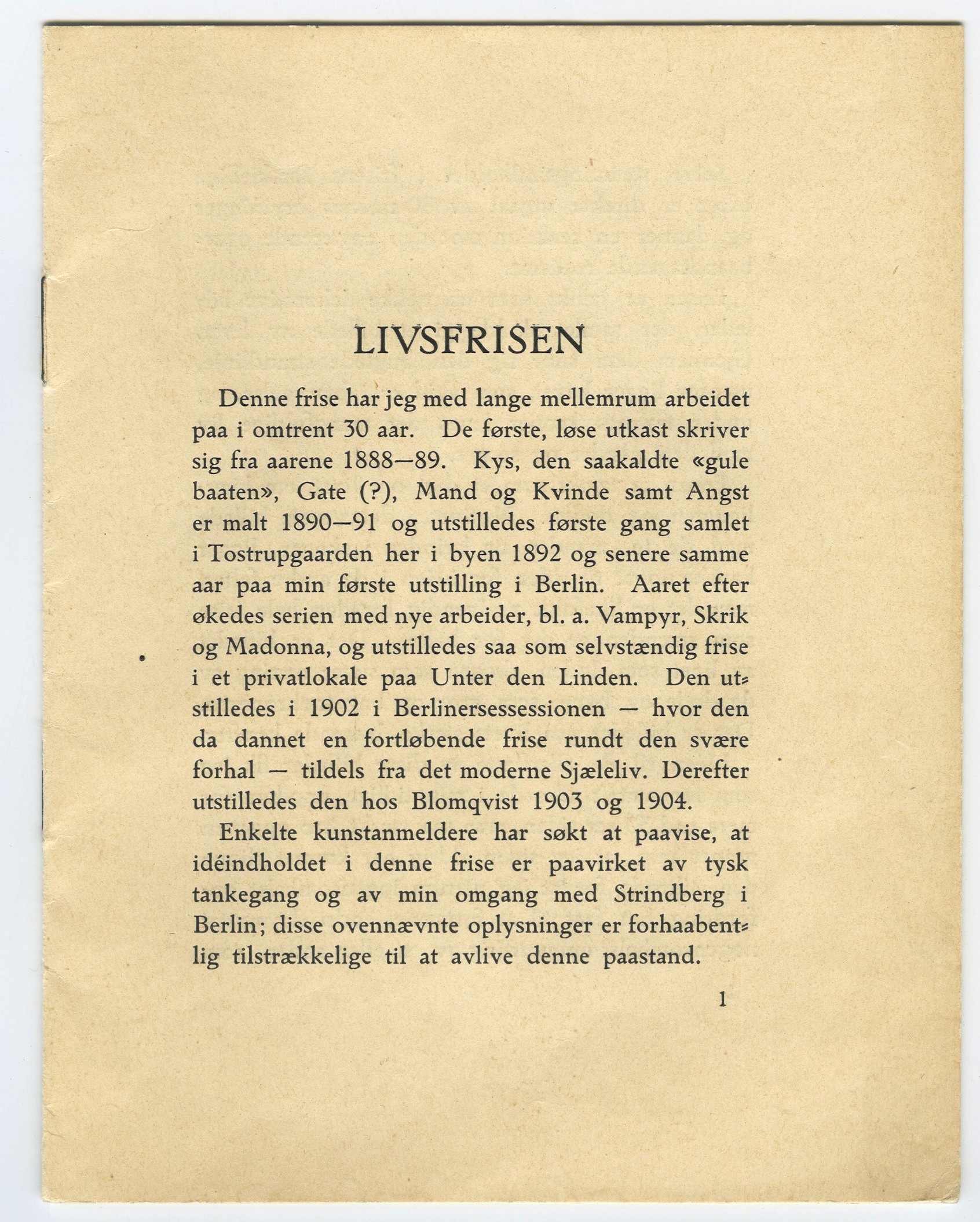 Edvard Munch : Blomqvists kunstudstilling : Blomqvist Kunsthandel, Kristiania, [oktober] 1918 / [tekst av] Edvard Munch. - Kristiania : Blomqvist Kunsthandel, 1918. – Inneholder: Livsfrisen og annet.
