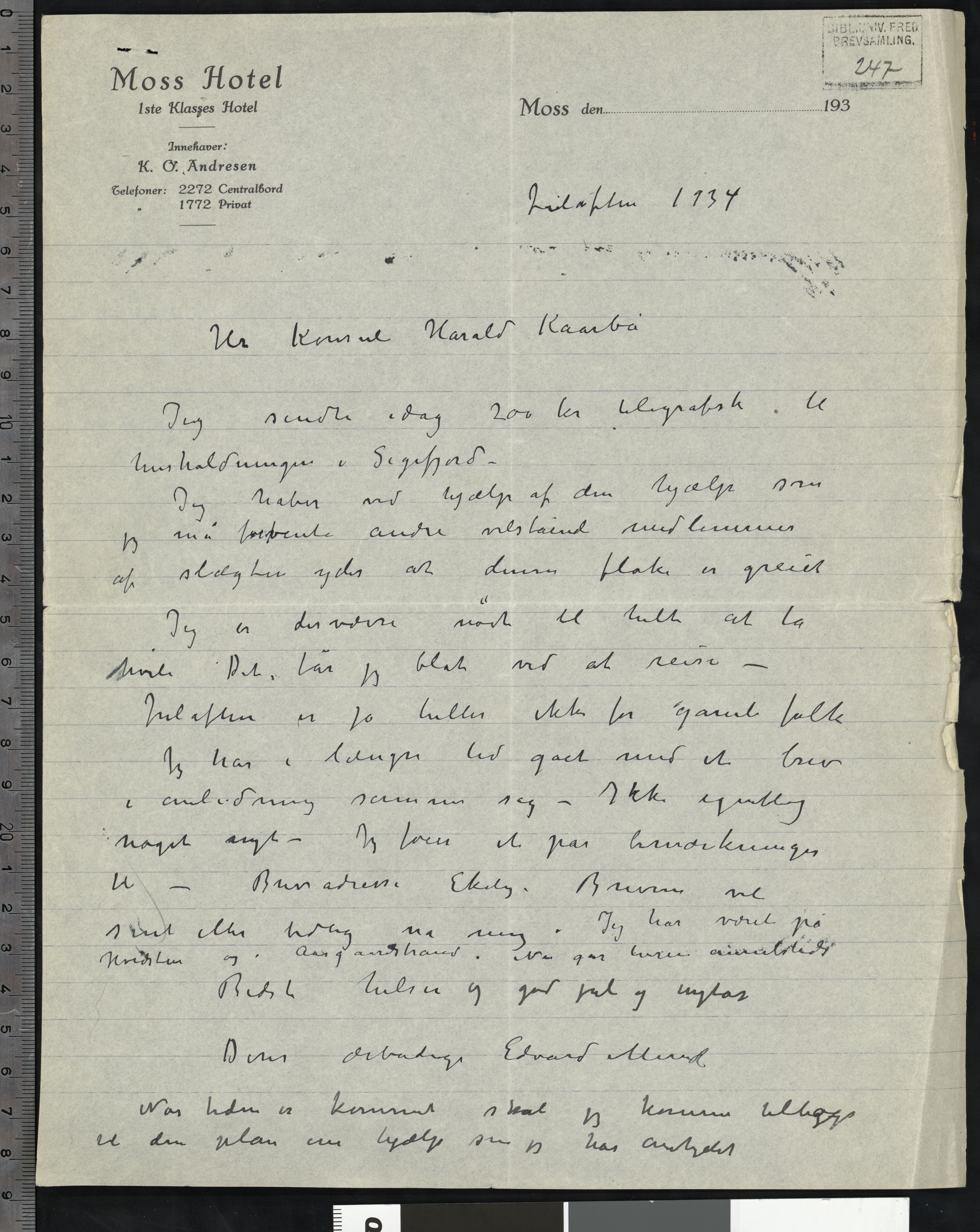 Brevs. 247 (PN 231), Nasjonalbiblioteket. Datert 24.12.1934. Brev til Harald Kaarbø