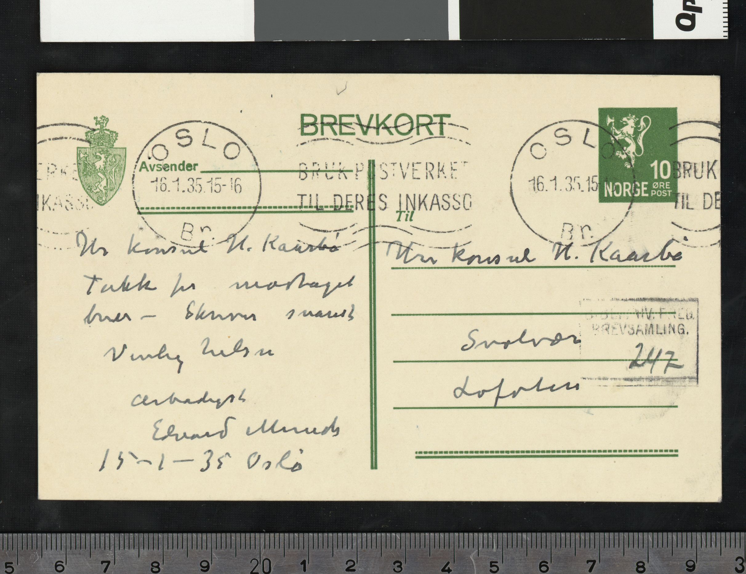 Brevs. 247 (PN 235), Nasjonalbiblioteket. Datert 15.1.1935. Brev til Harald Kaarbø