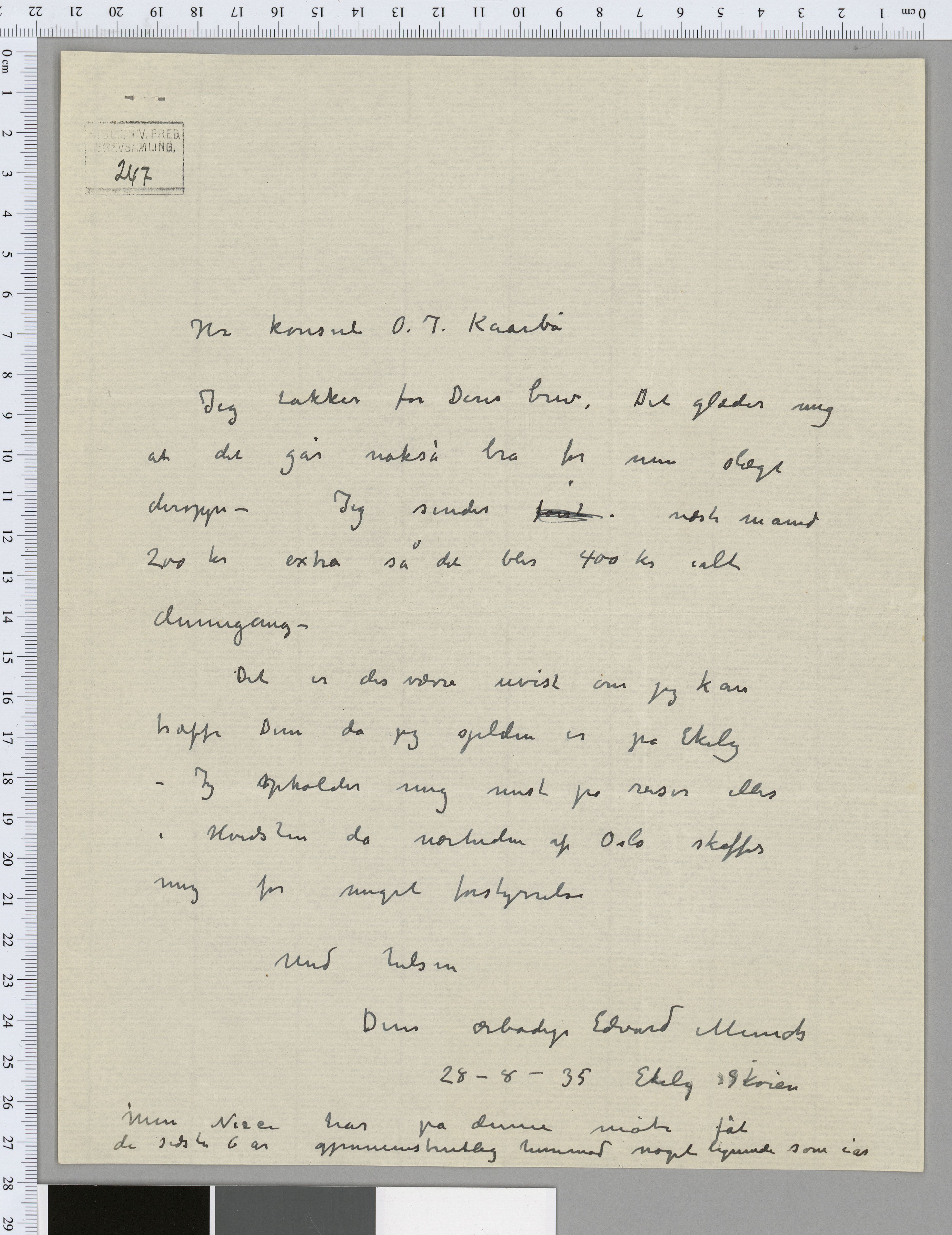 Brevs. 247 (PN 240), Nasjonalbiblioteket. Datert 28.8.1935. Brev til Otto Kaarbø