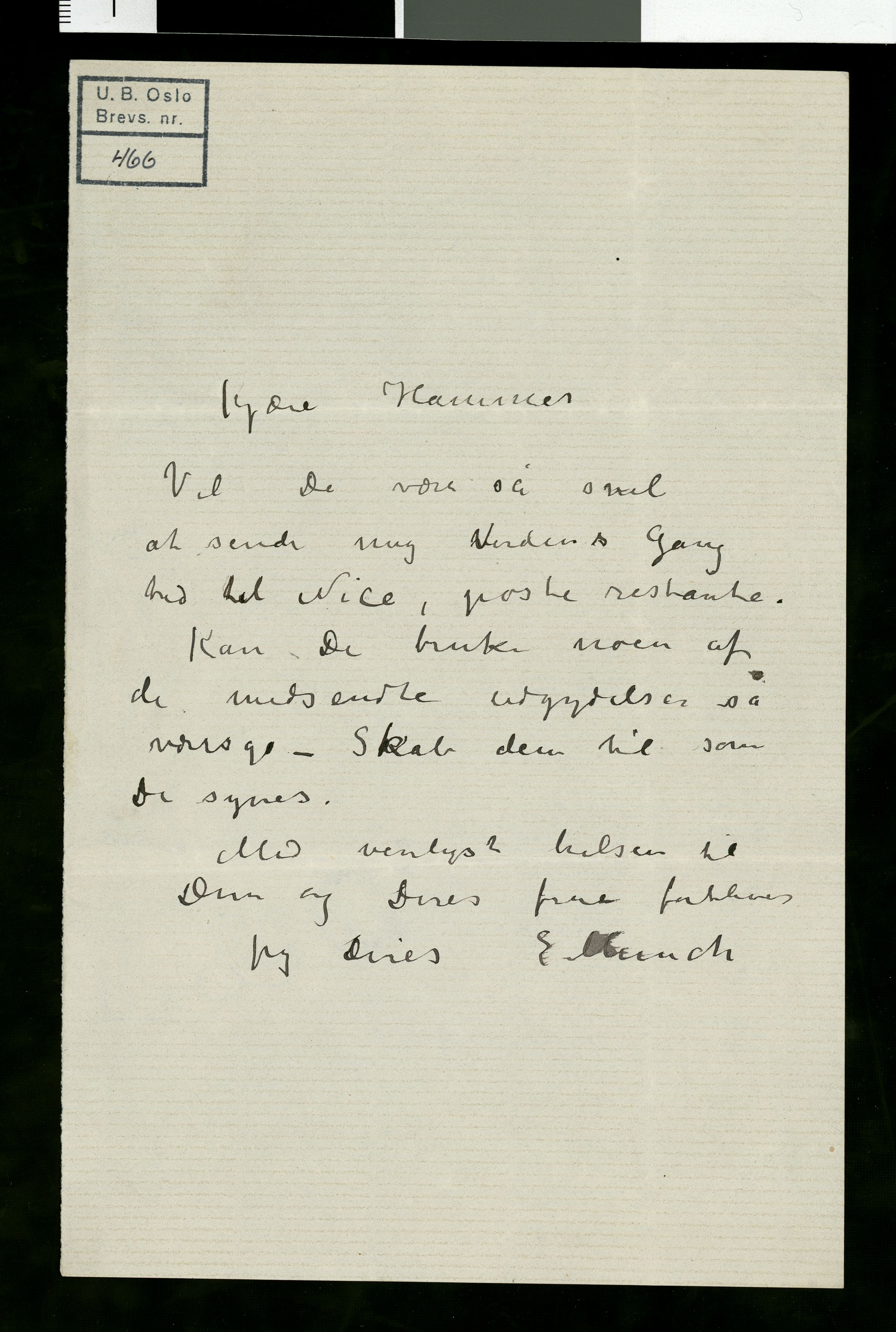 Brevs. 466 (PN 260), Nasjonalbiblioteket. Datert 1891. Brev til Karl Vilhelm Hammer