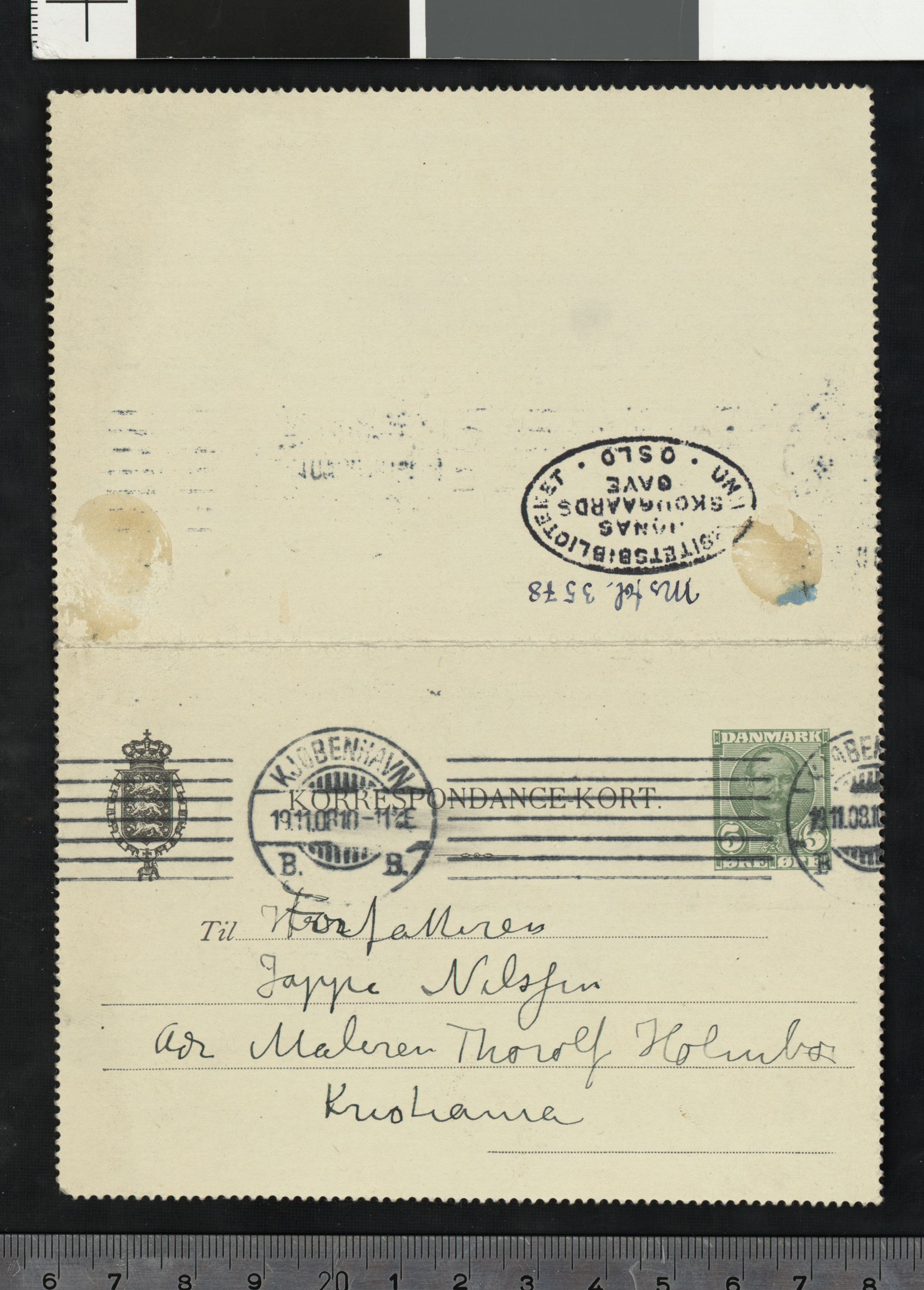 Ms.fol. 3578 (PN 746), Nasjonalbiblioteket. Datert 19.11.1908. Brev til Jappe Nilssen