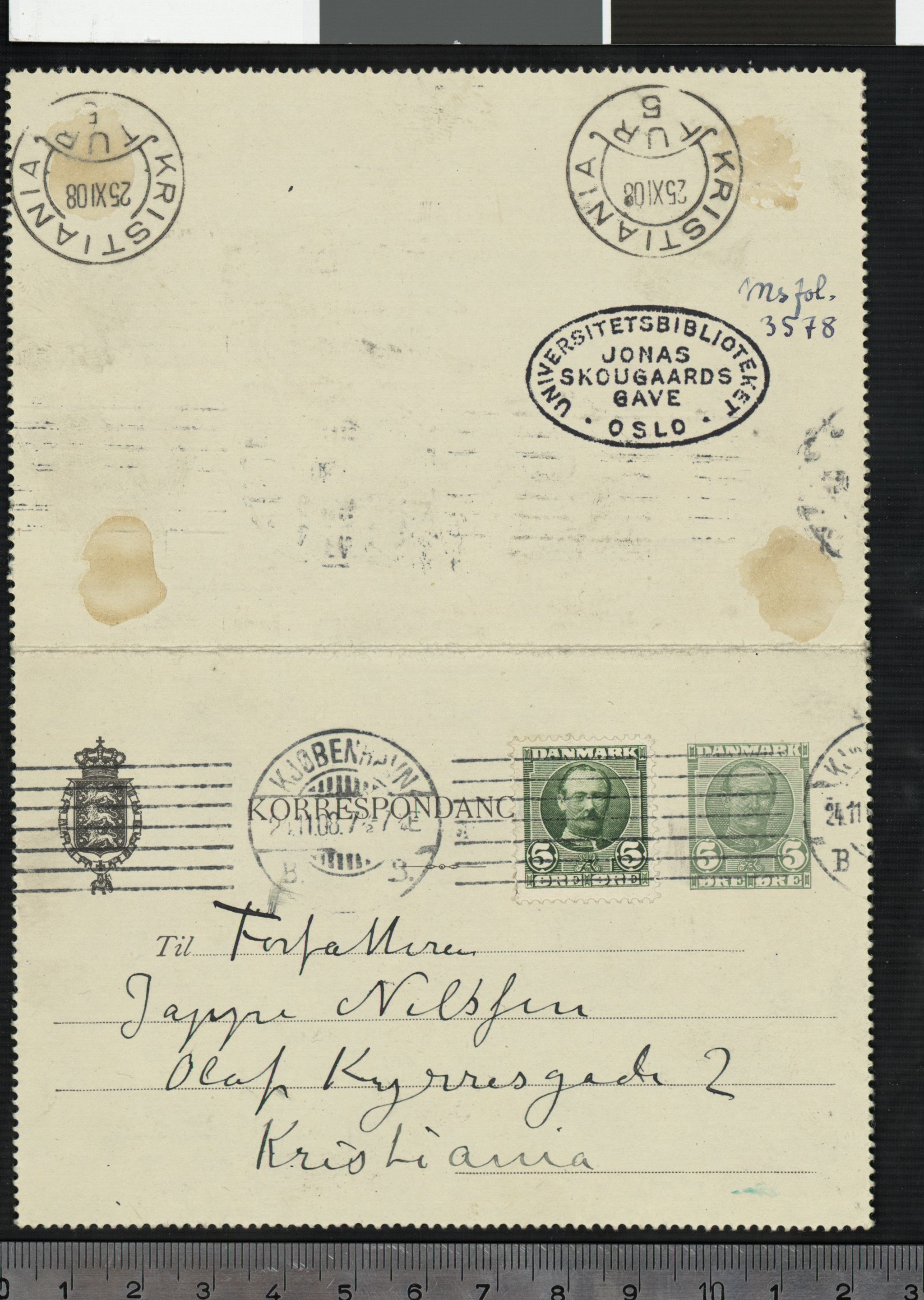 Ms.fol. 3578 (PN 747), Nasjonalbiblioteket. Datert 24.11.1908. Brev til Jappe Nilssen