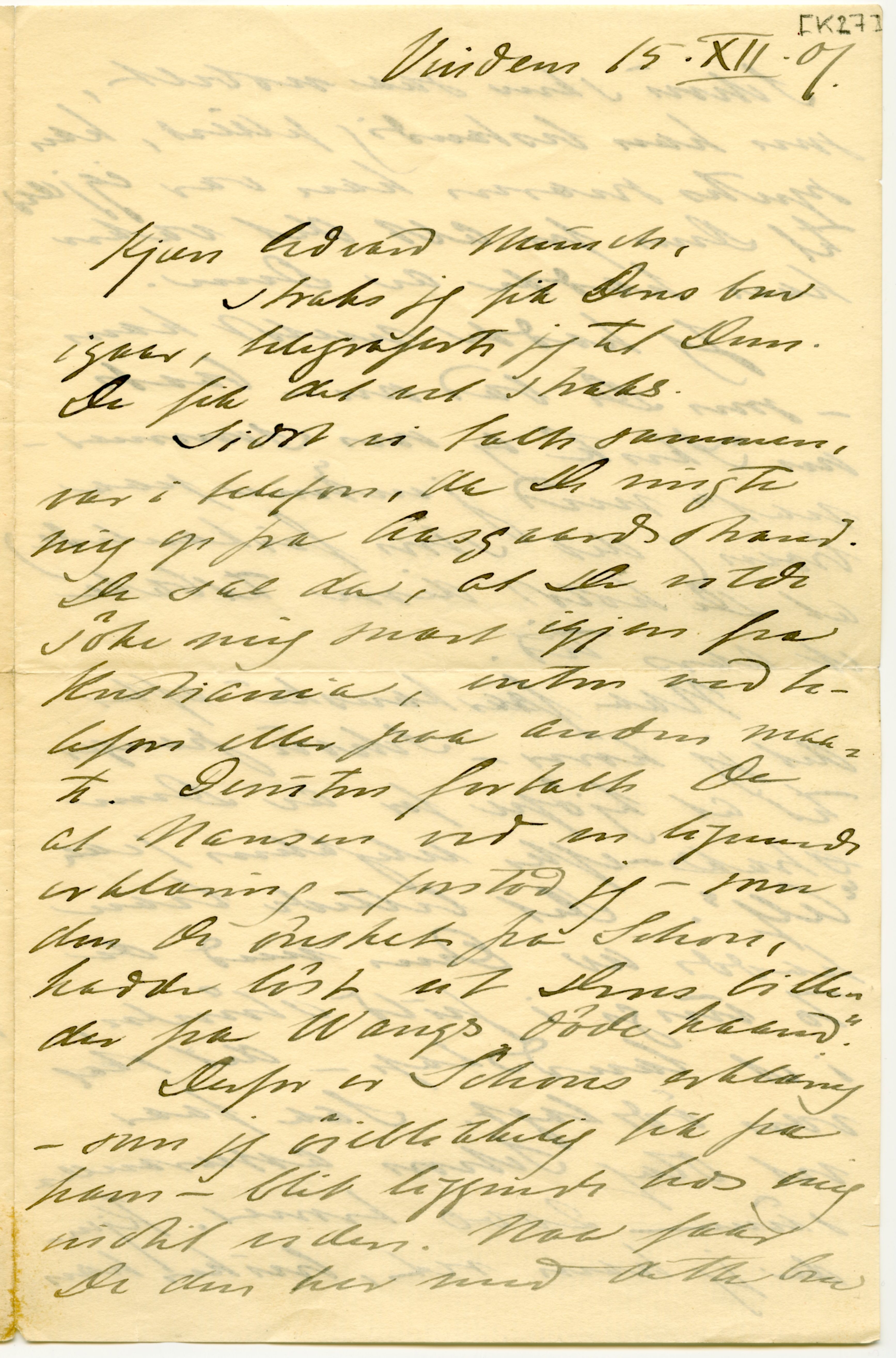 MM K 27, Munchmuseet. Datert 15.12.1901. Brev fra Andreas Aubert.
