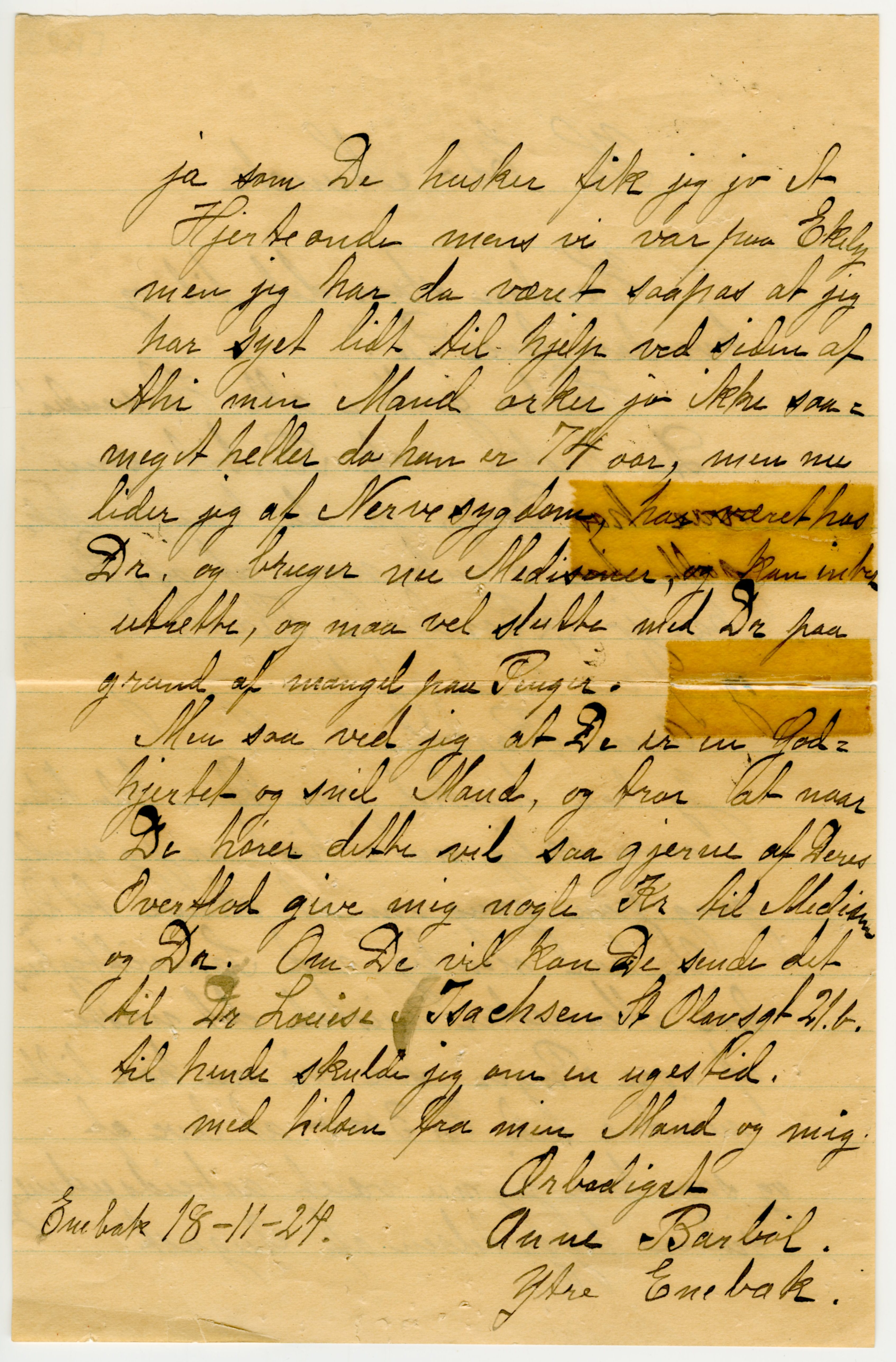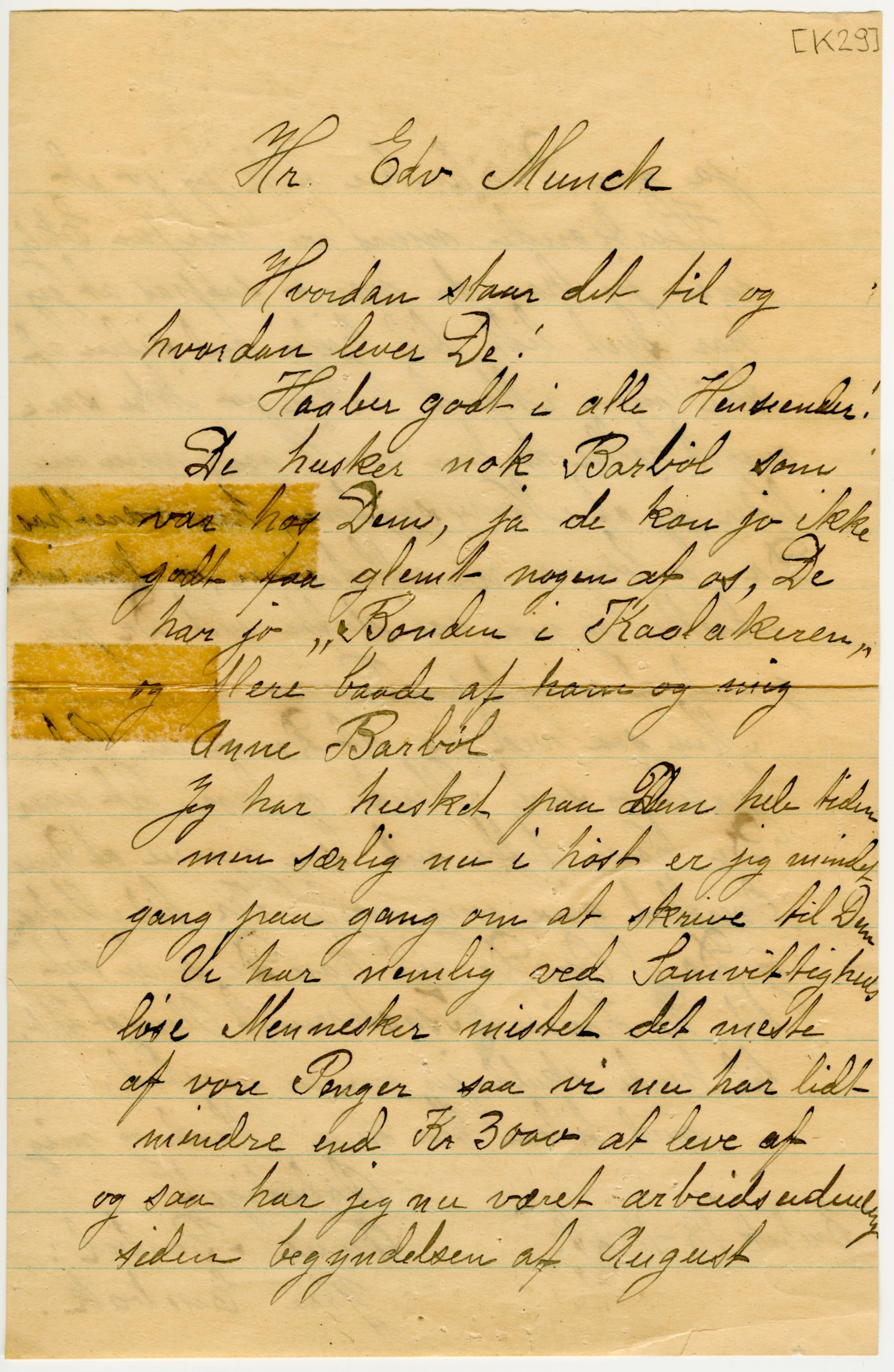 MM K 29, Munchmuseet. Datert 24.11.1924. Brev fra Anne Barbøl.