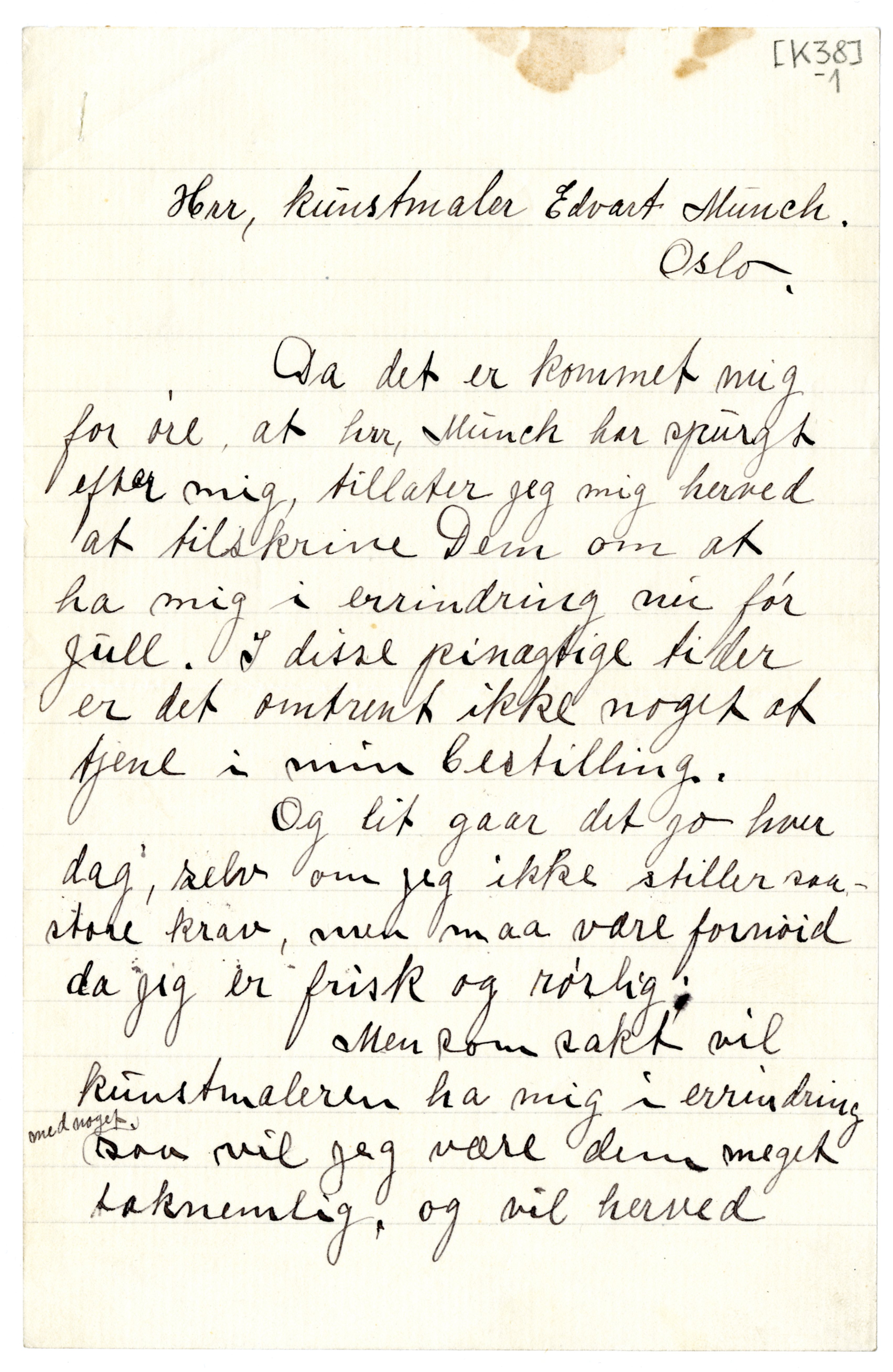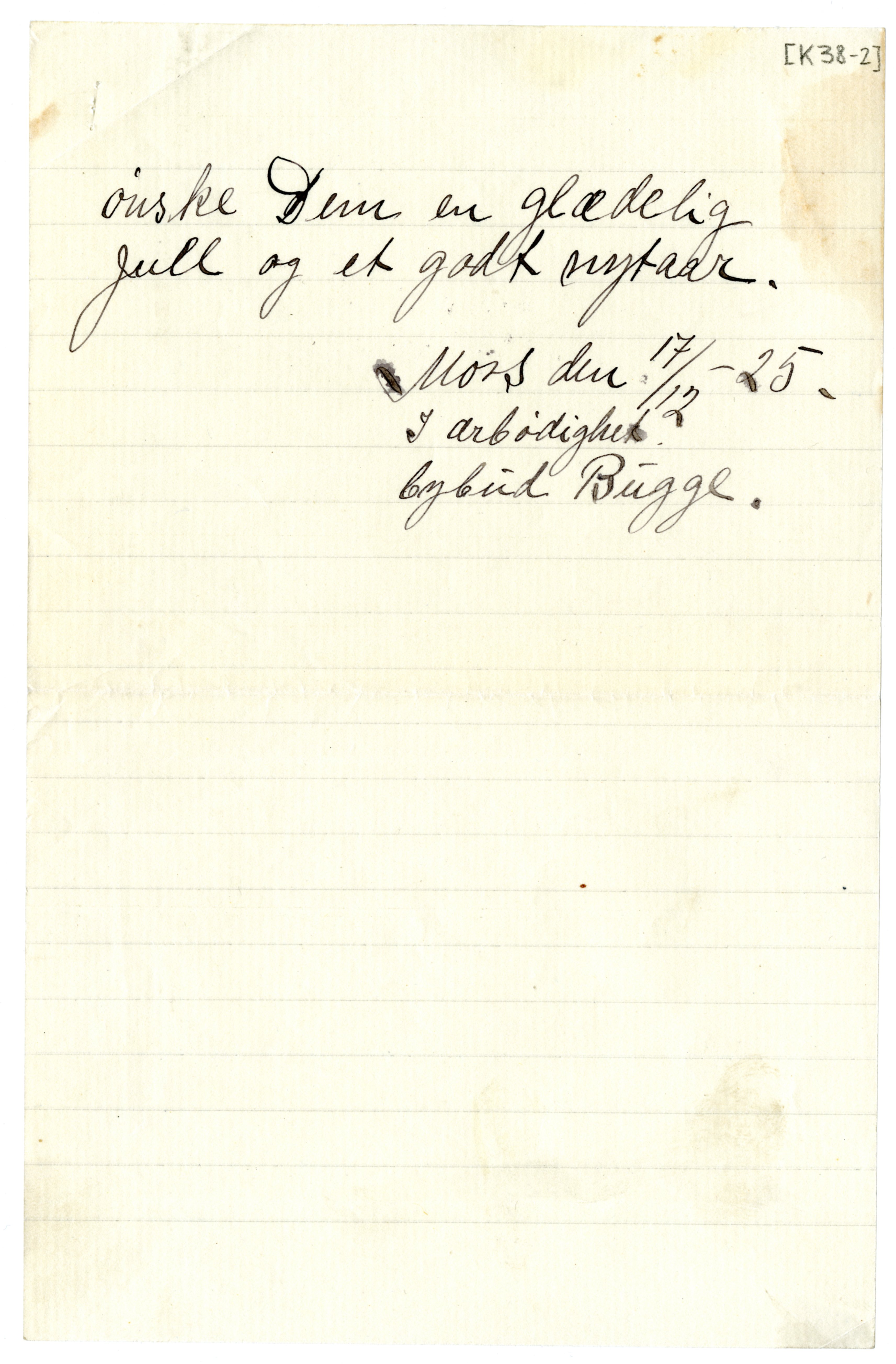 MM K 38, Munchmuseet. Datert 17.12.1925. Brev fra Magnus Bugge.