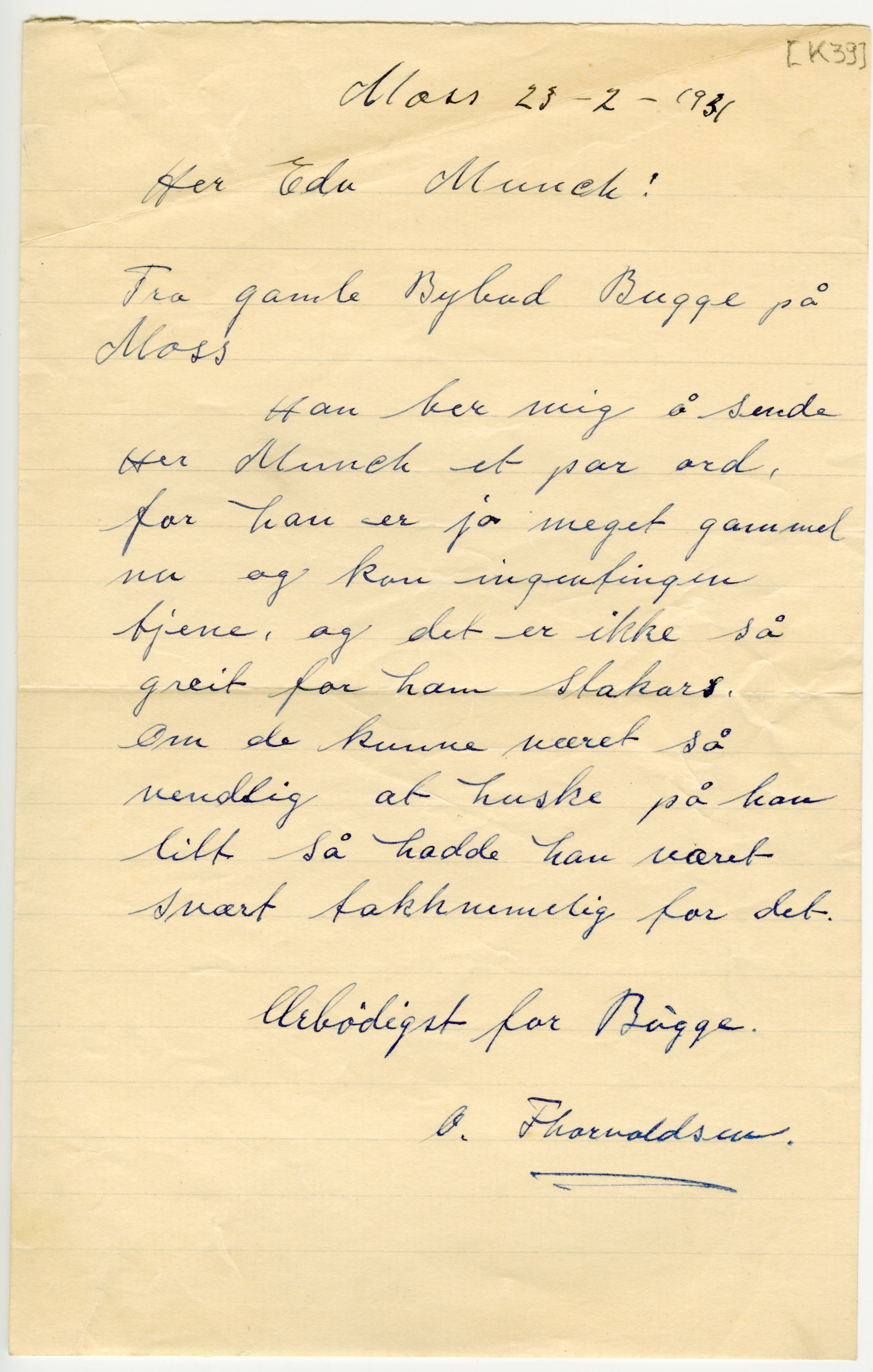 MM K 39, Munchmuseet. Datert 23.02.1931. Brev fra Magnus Bugge.