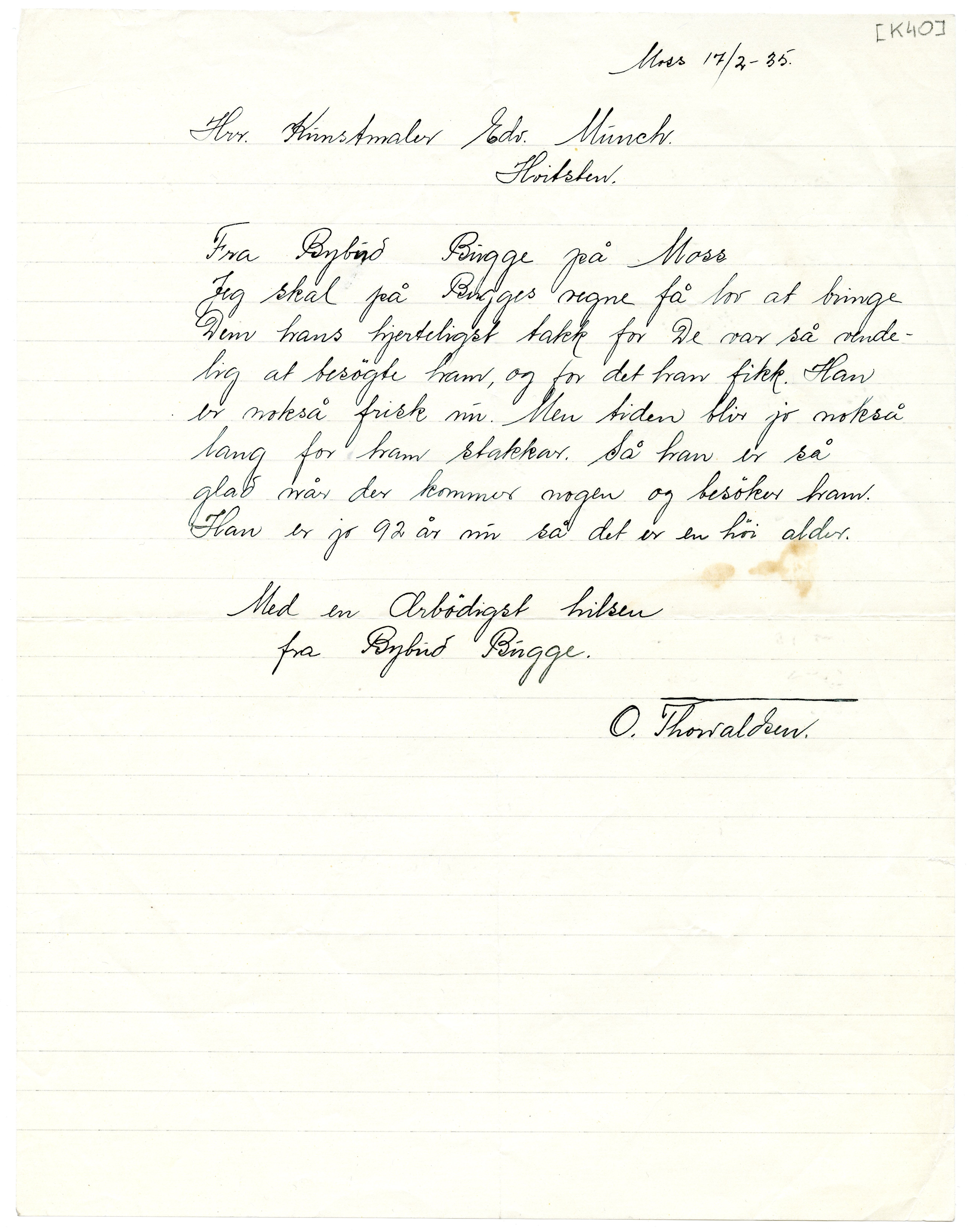 MM K 40, Munchmuseet. Datert 17.02.1935. Brev fra Magnus Bugge.