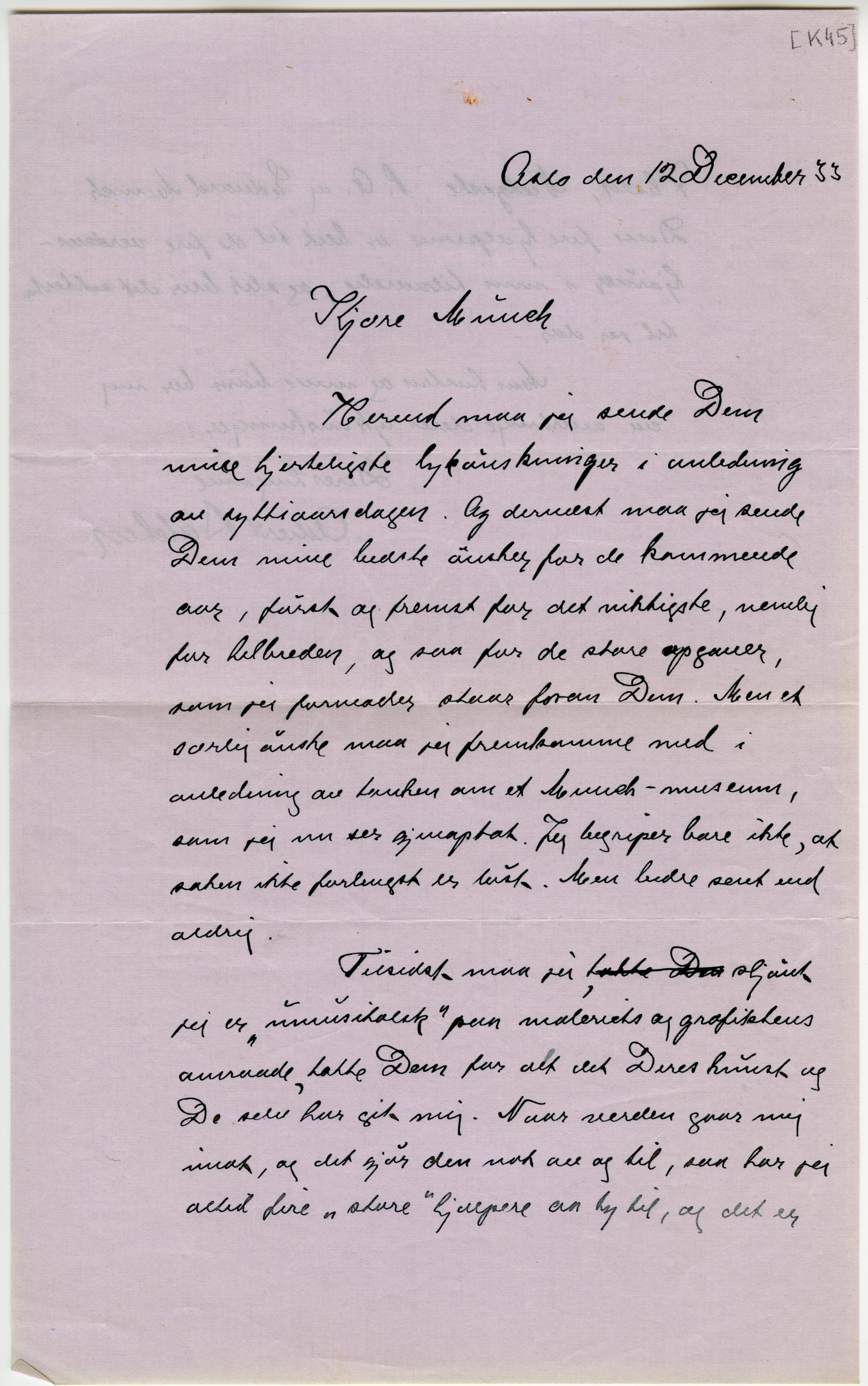 MM K 45, Munchmuseet. Datert 12.12.1933. Brev fra Albert Balchen.
