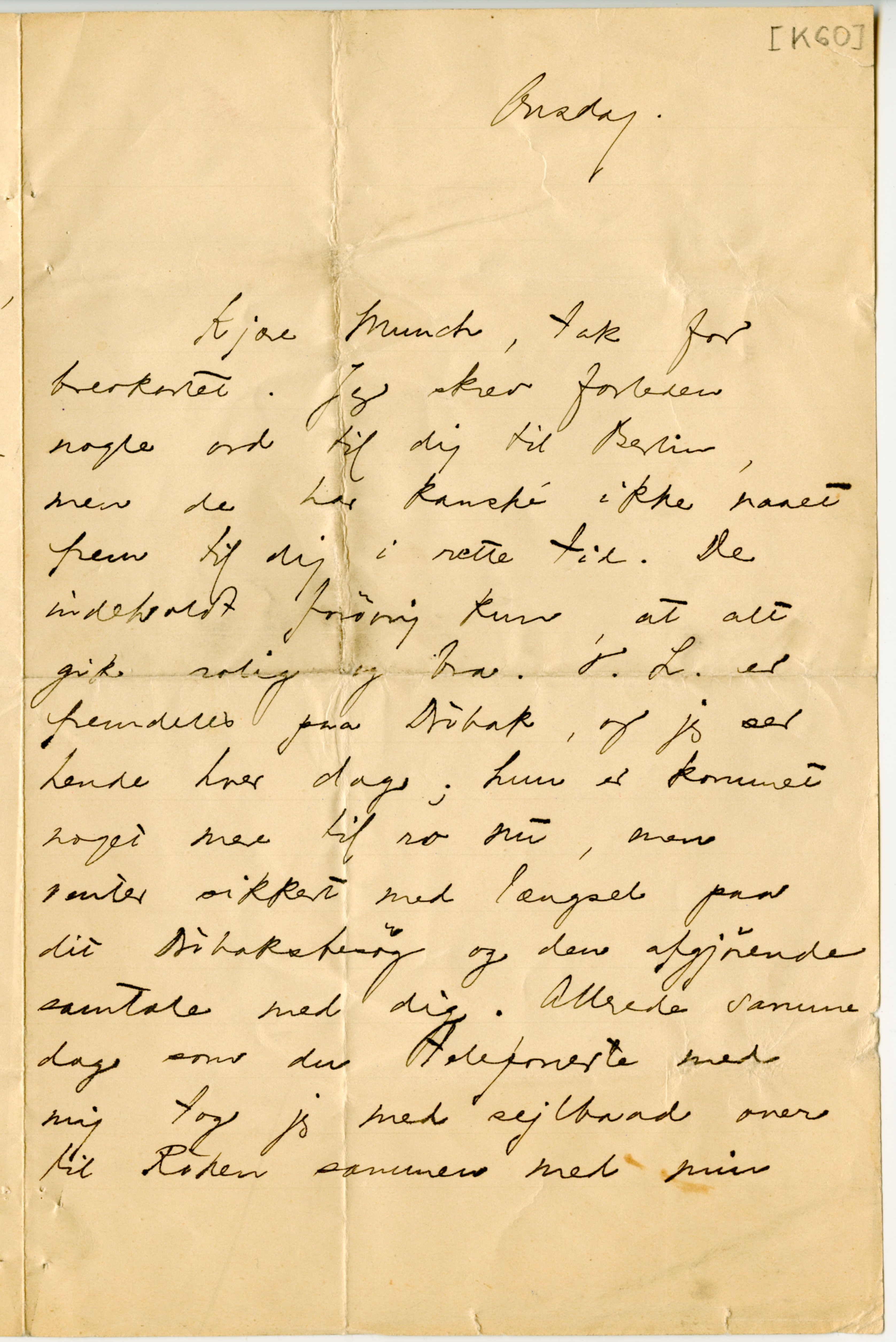 MM K 60, Munchmuseet. Ikke datert. Brev fra Sigurd Bødtker.