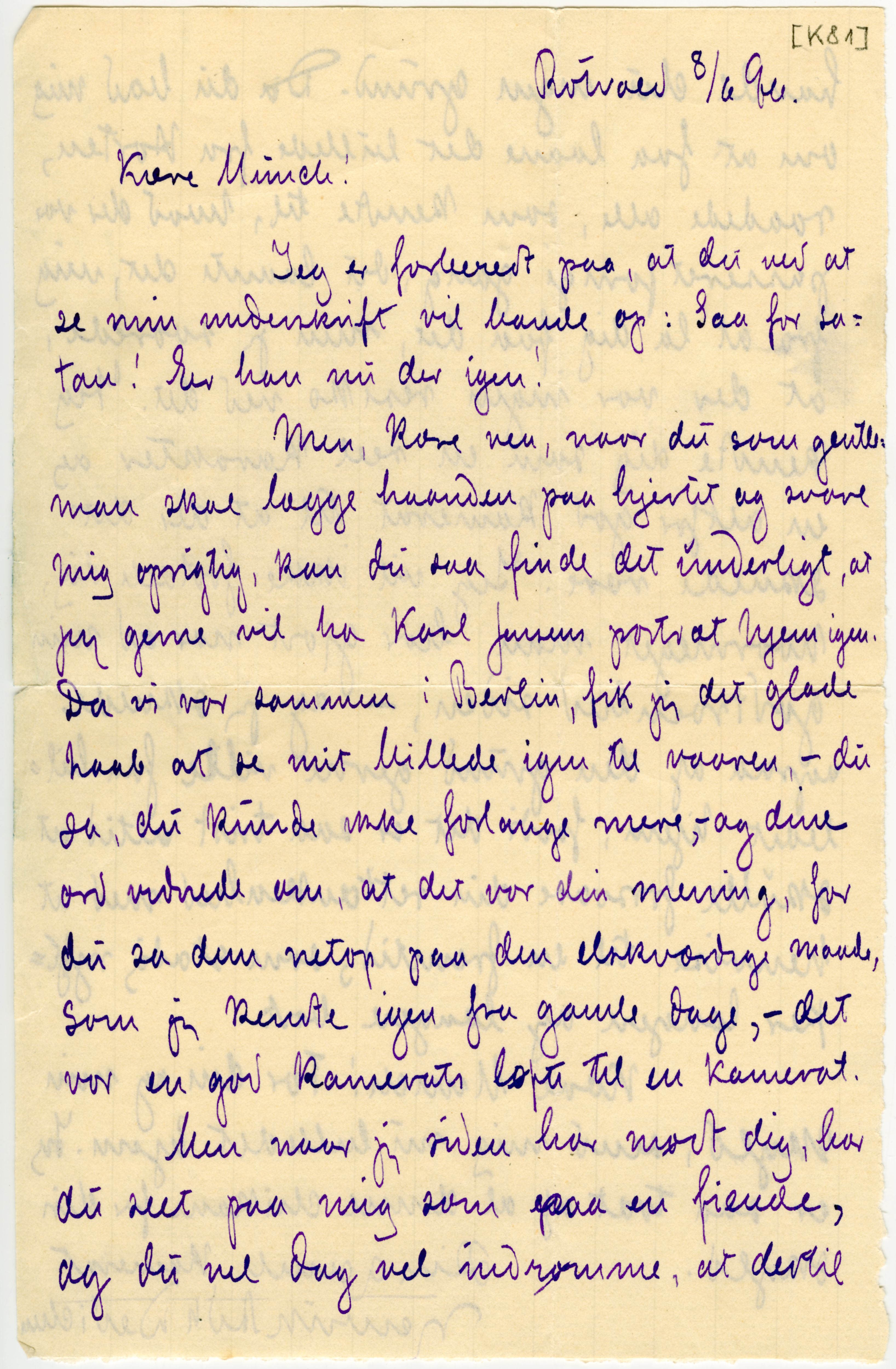 MM K 81, Munchmuseet. Datert 08.06.1896. Brev fra Henrik Dedichen.