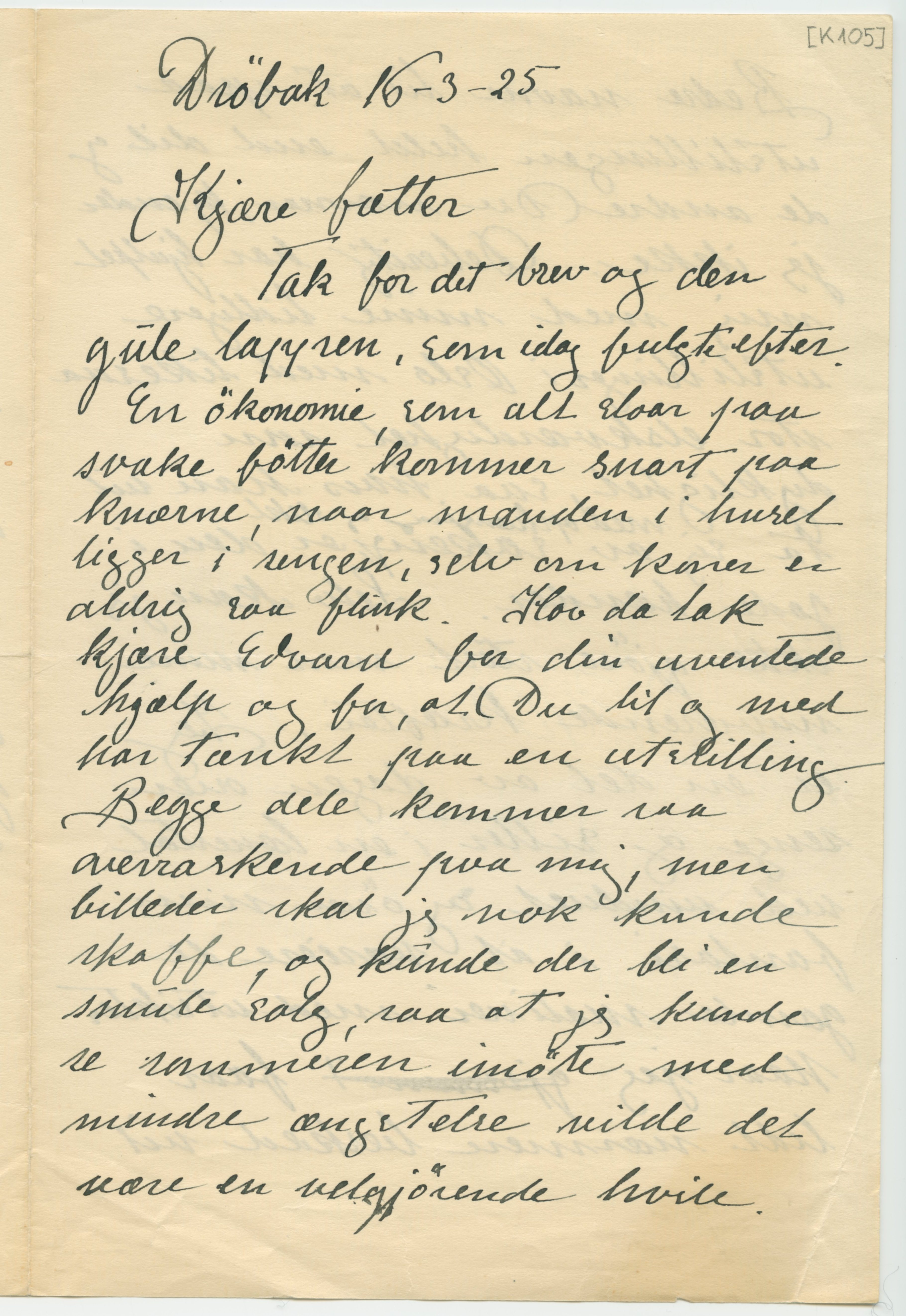 MM K 105, Munchmuseet. Datert 16.03.1925. Brev fra Edvard Diriks.