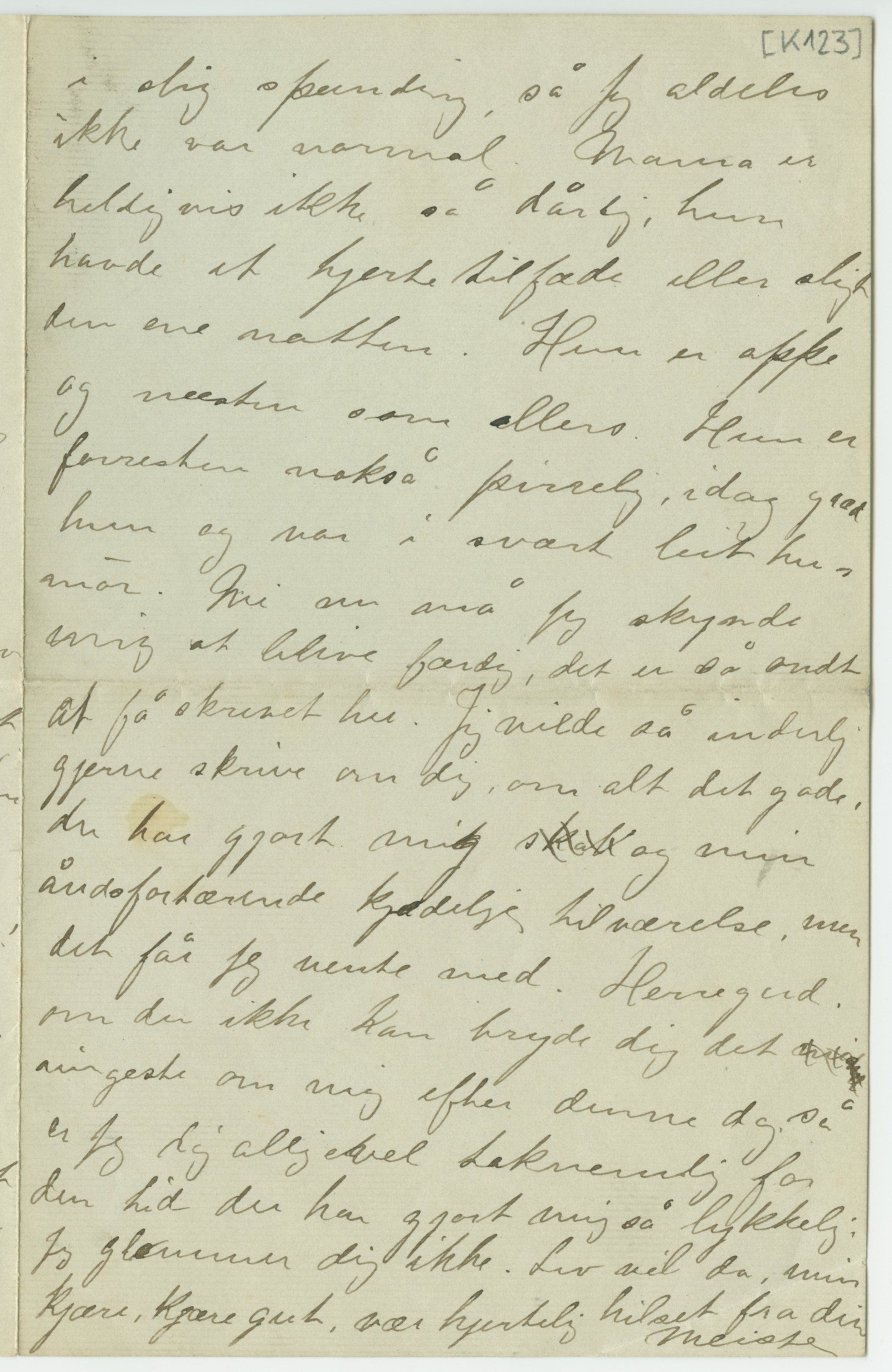 MM K 123, Munchmuseet. Datert 06.04.1889. Brev fra Charlotte Marie (Meisse) Dørnberger.