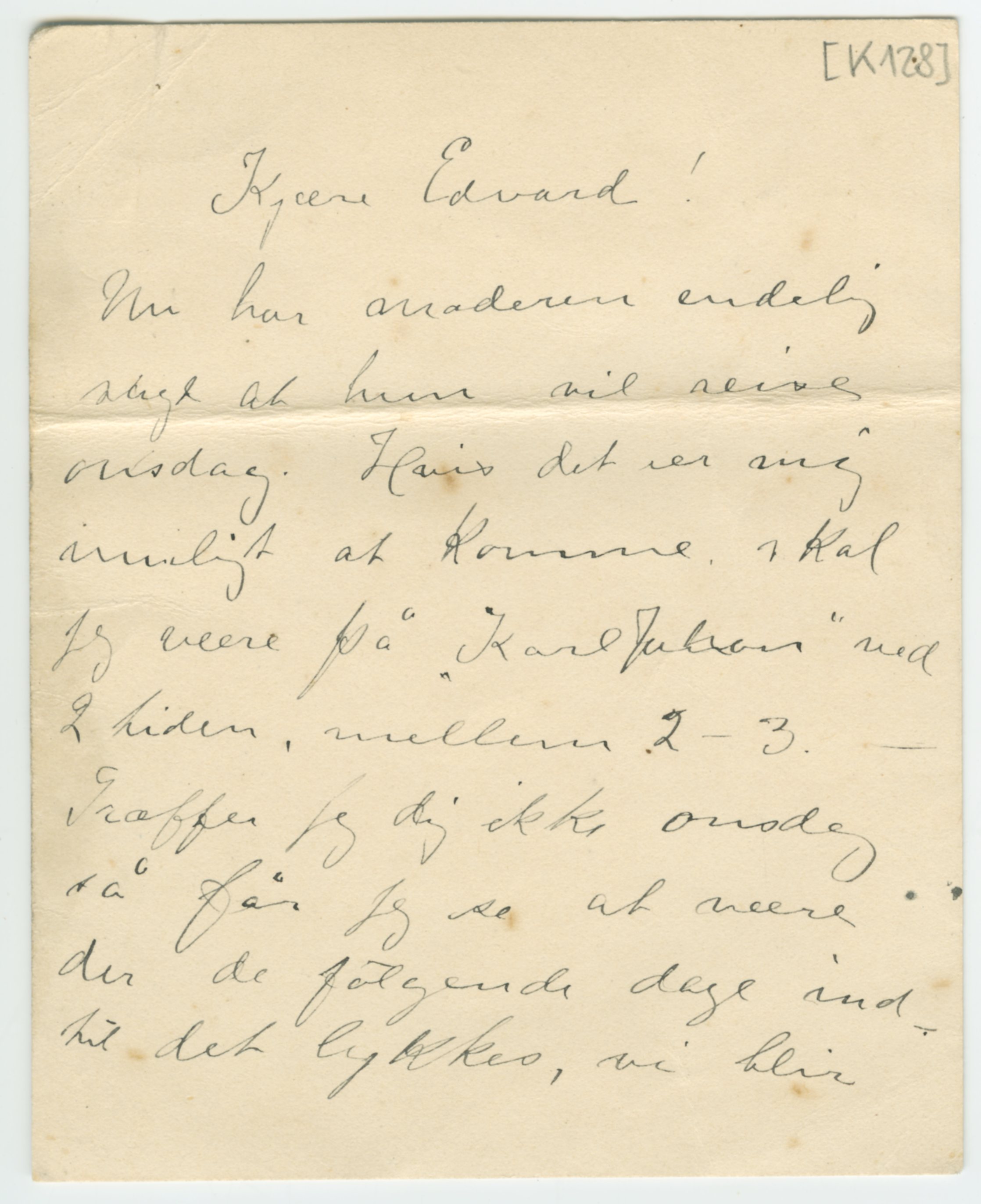 MM K 128, Munchmuseet. Datert 03.03.1905. Brev fra Charlotte Marie (Meisse) Dørnberger.
