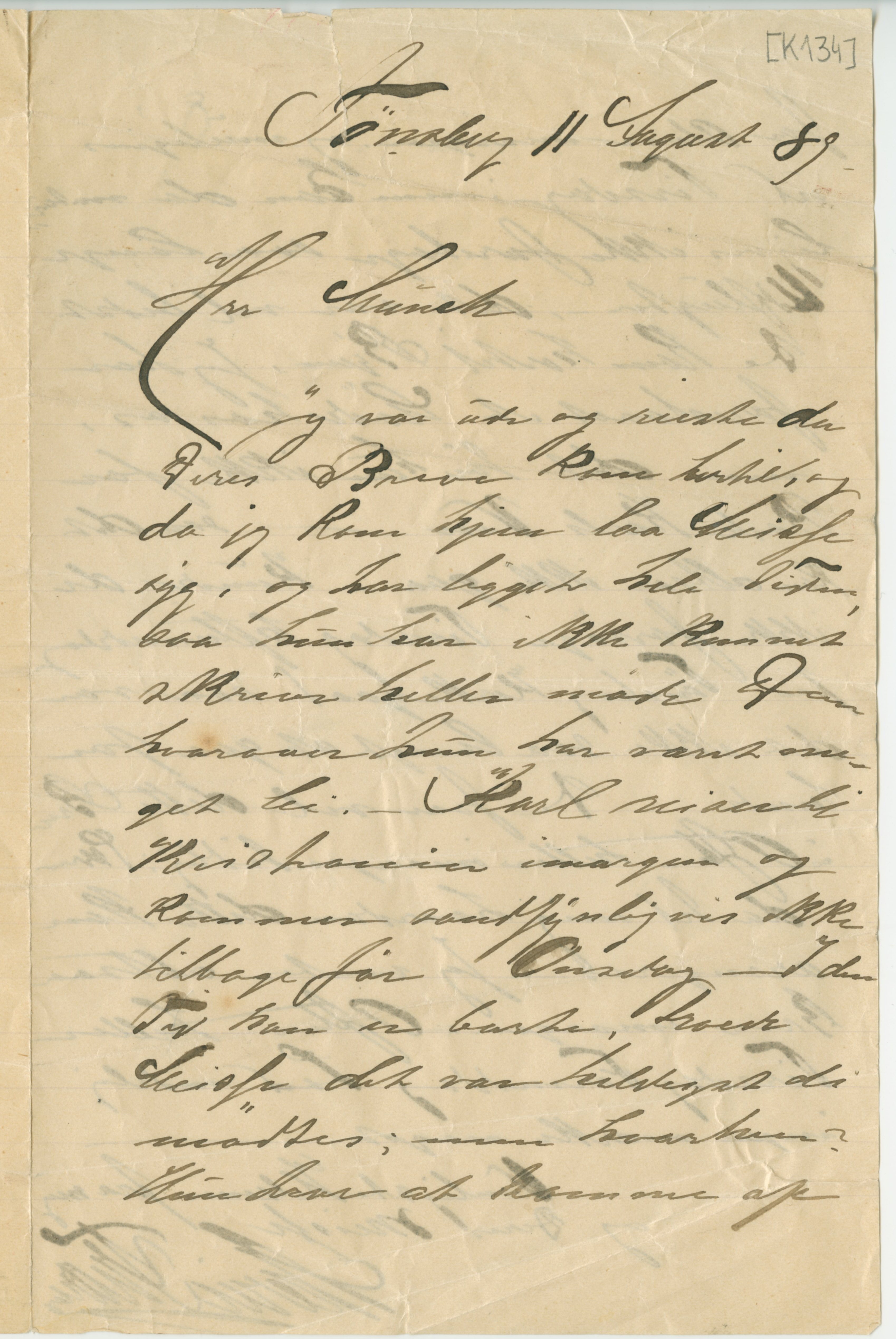 MM K 134, Munchmuseet. Datert 11.08.1889. Brev fra Charlotte Marie (Meisse) Dørnberger, Maria Fredriksen.