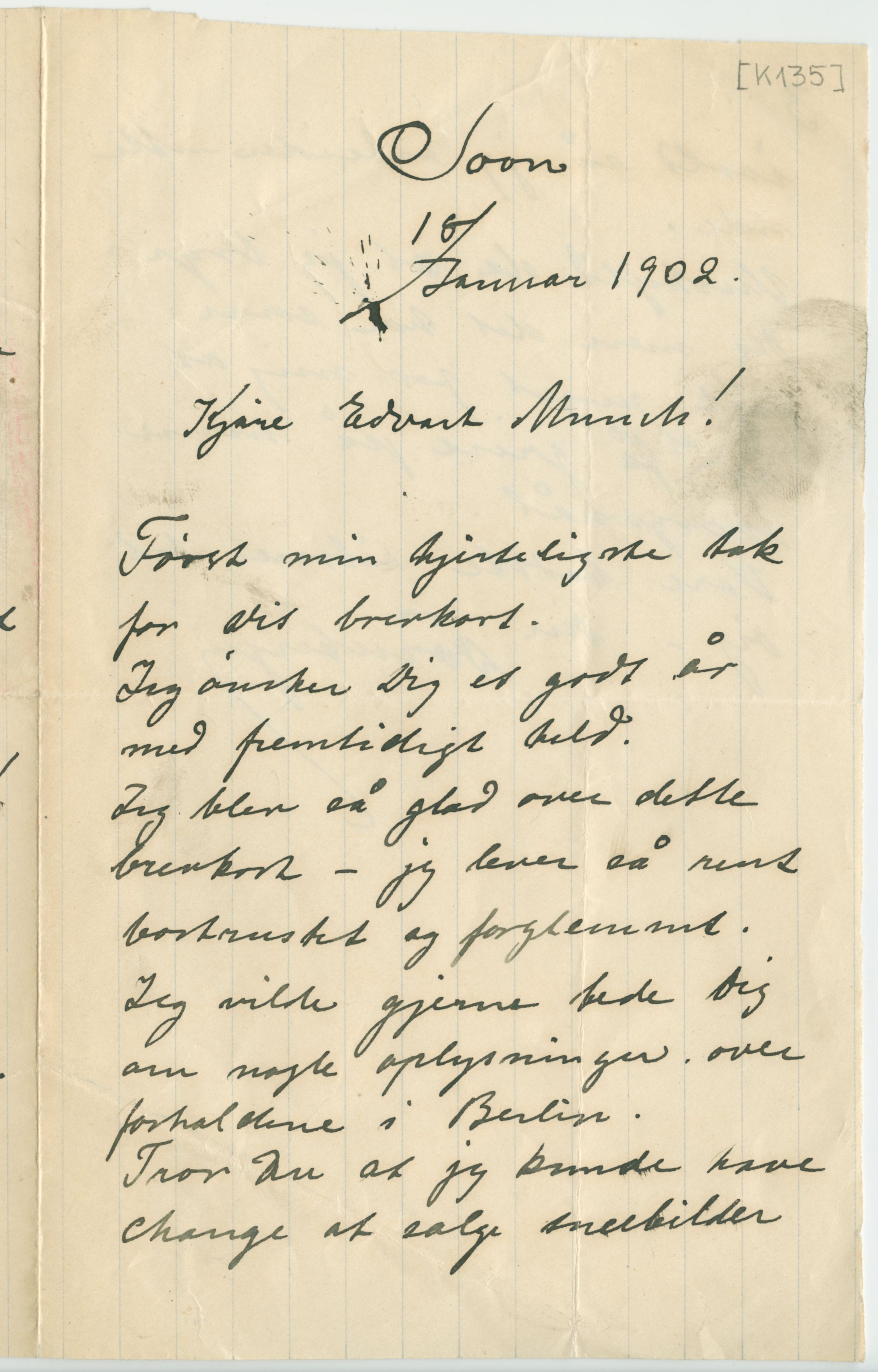 MM K 135, Munchmuseet. Datert 10.01.1902. Brev fra Carl Dørnberger.