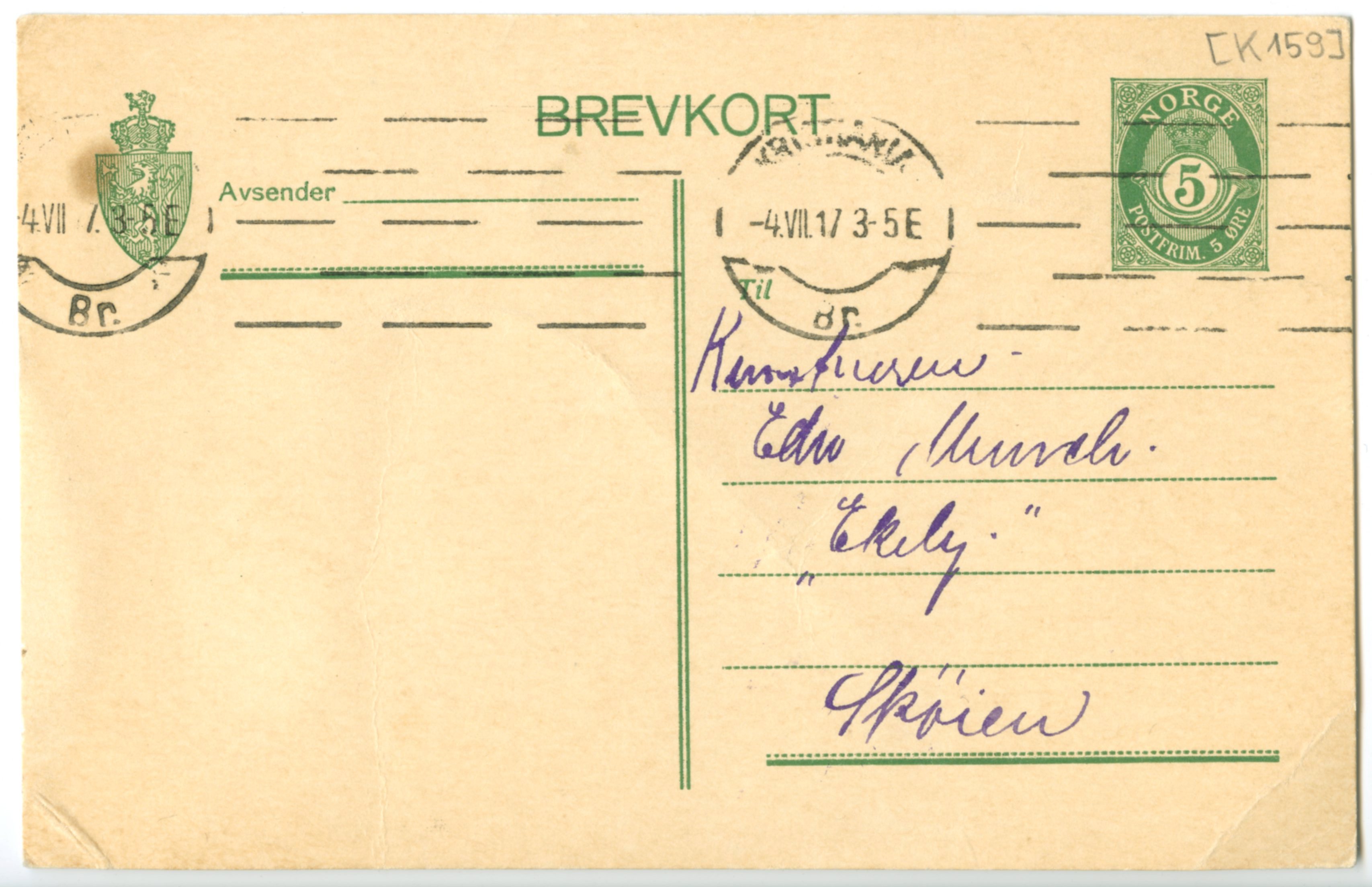 MM K 159, Munchmuseet. Datert 04.07.1917. Brev fra Maisa L. Ekenæss.
