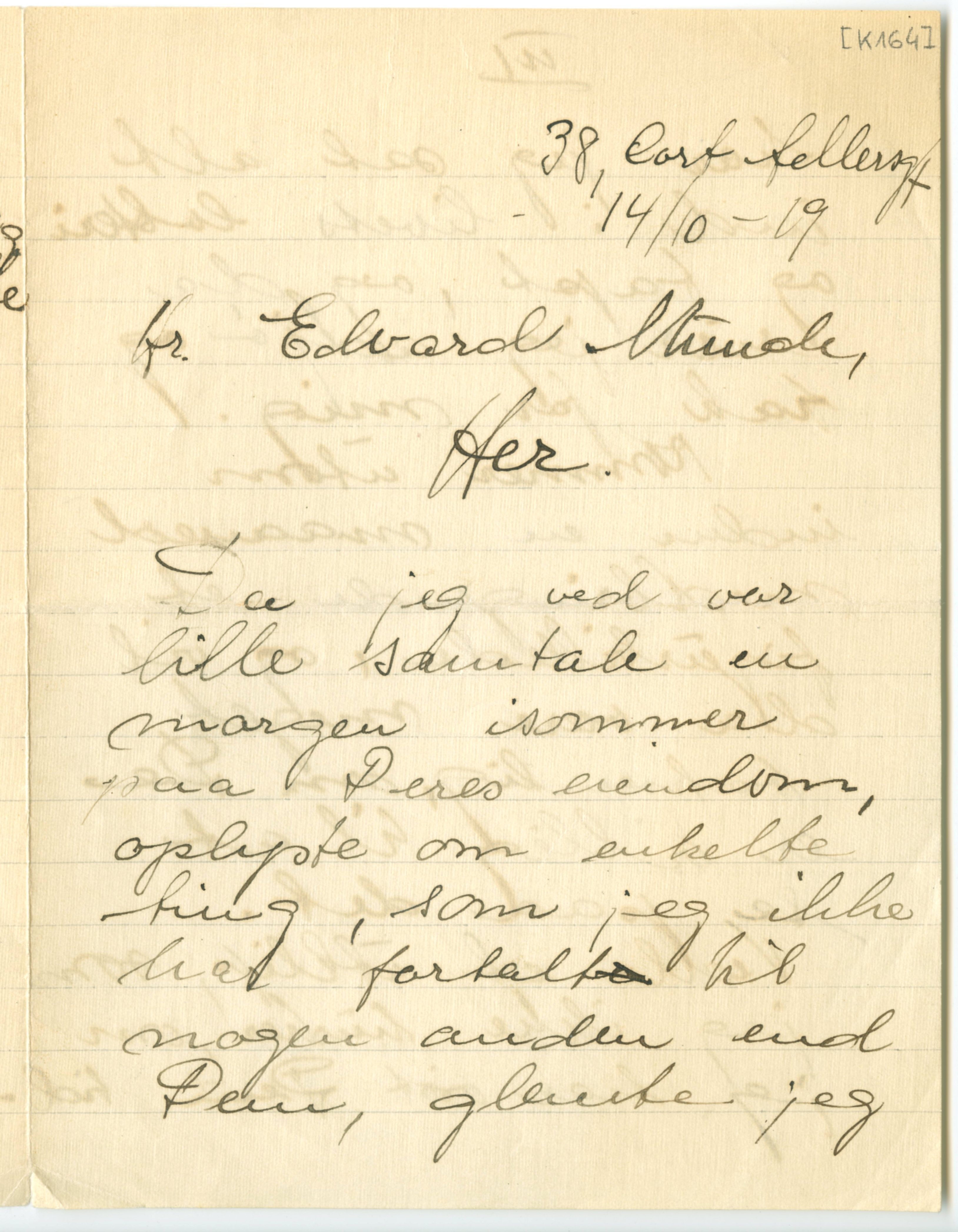 MM K 164, Munchmuseet. Datert 14.10.1919. Brev fra Trygve Fleischer.