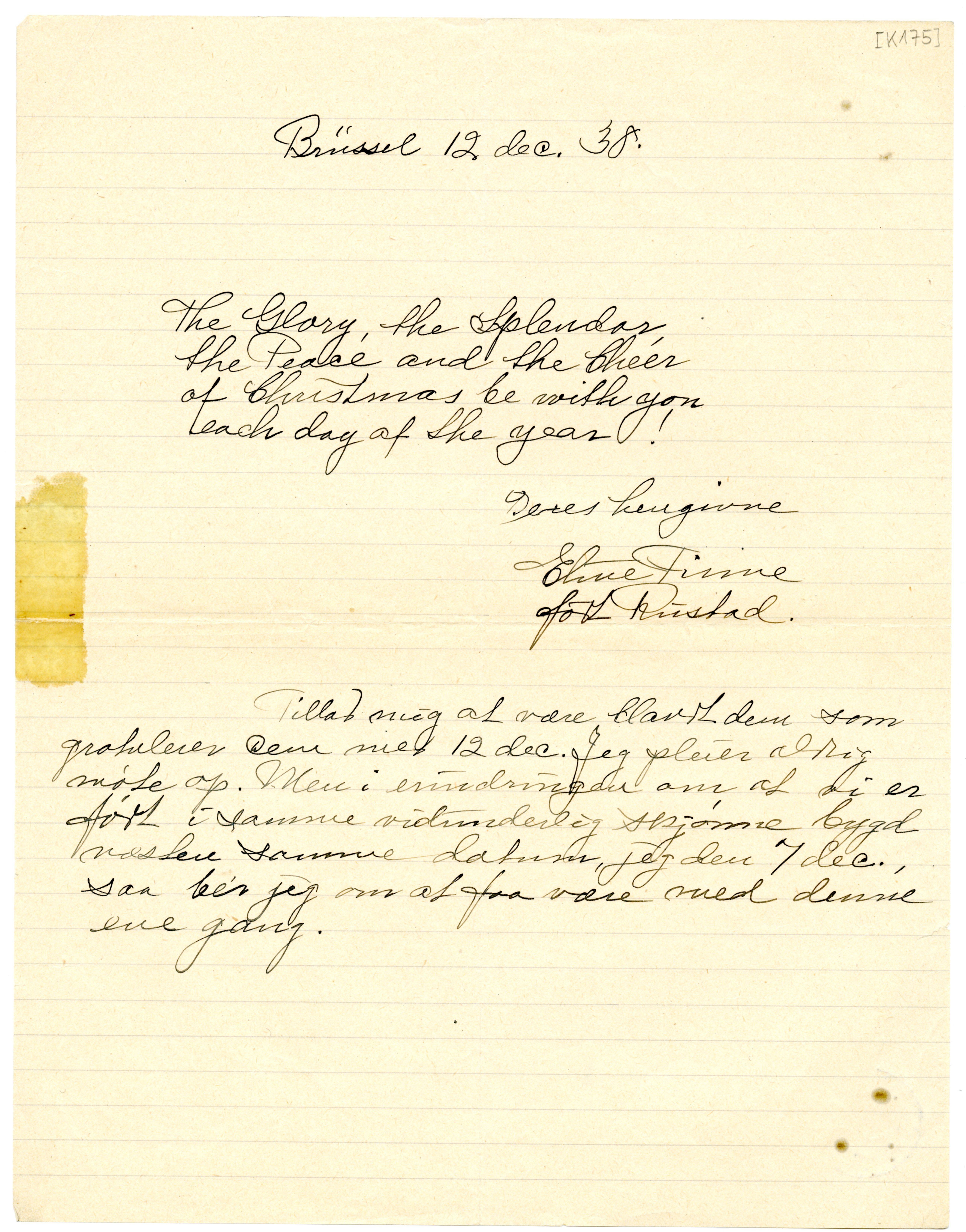 MM K 175, Munchmuseet. Datert 12.12.1939. Brev fra Eline Finne.