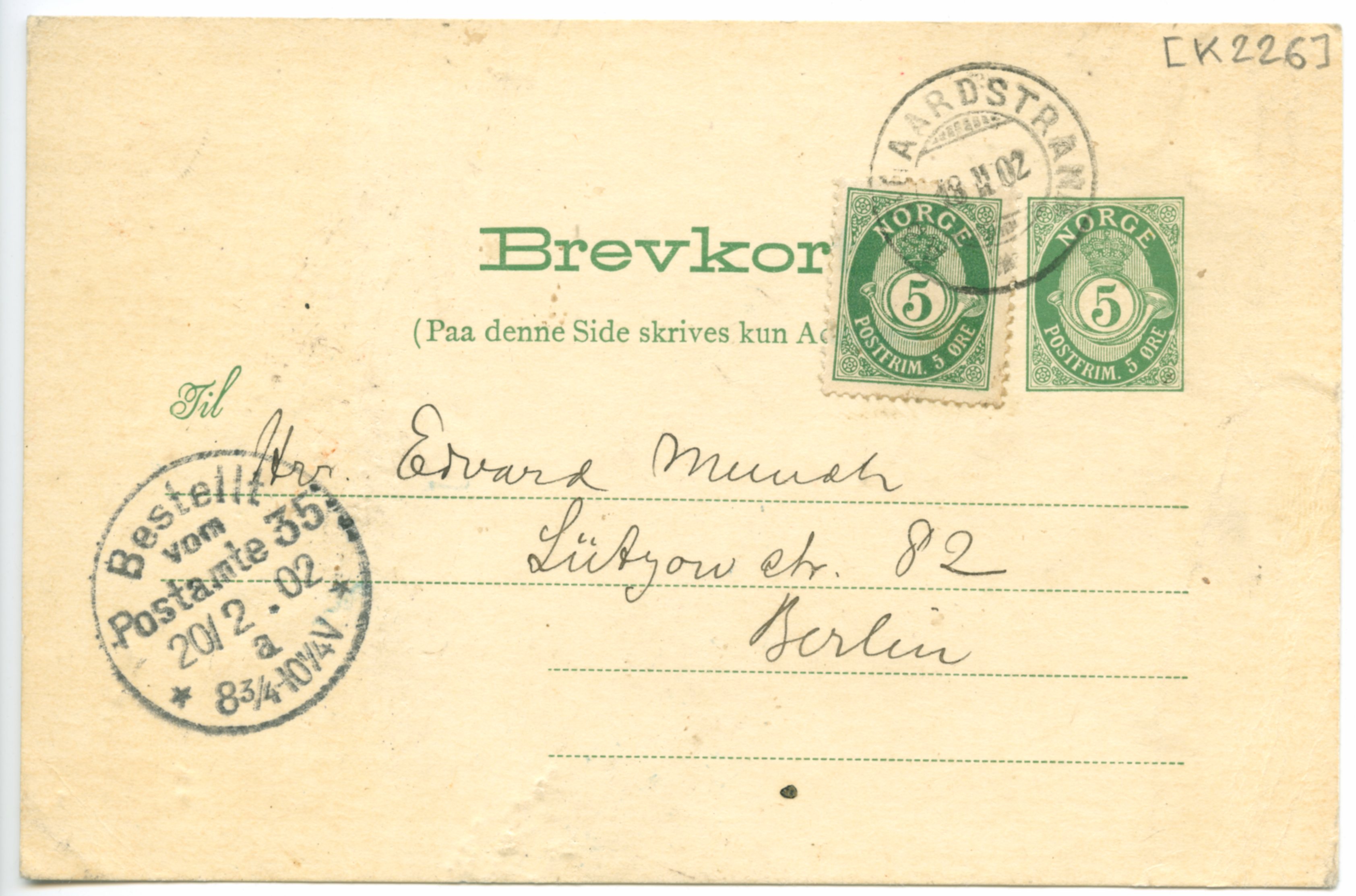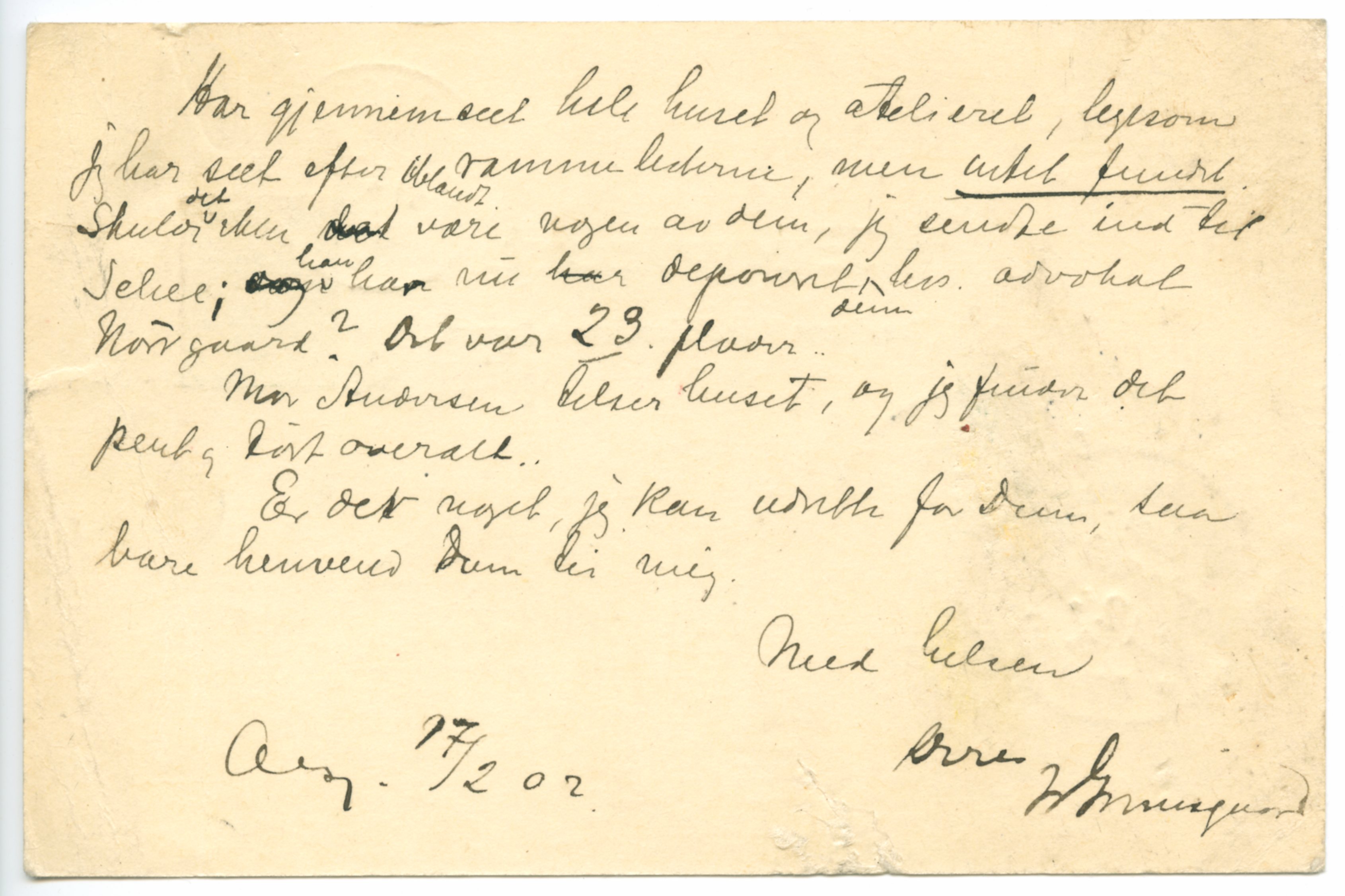 MM K 226, Munchmuseet. Datert 17.02.1902. Brev fra Wilhelm Grimsgaard.