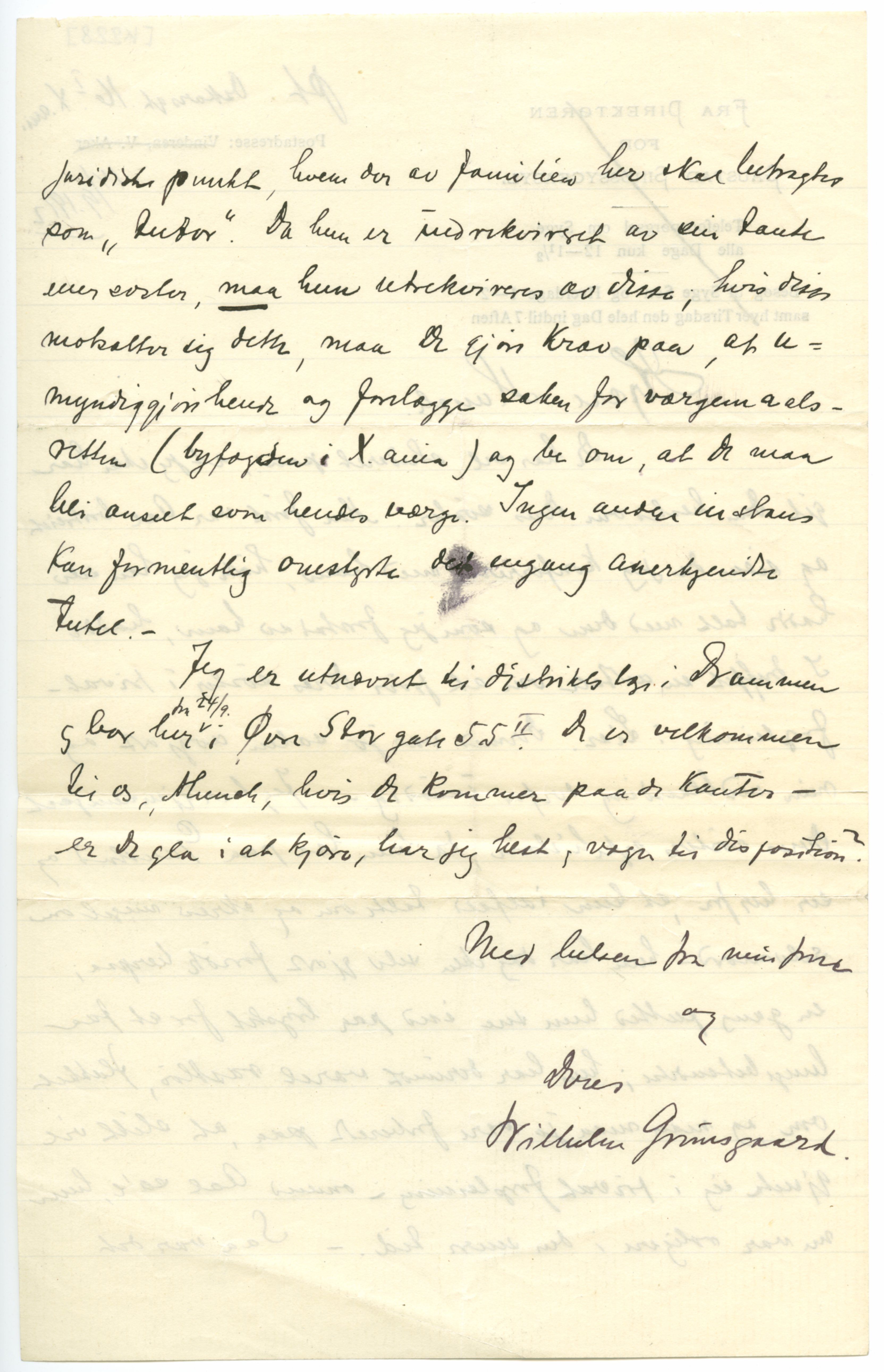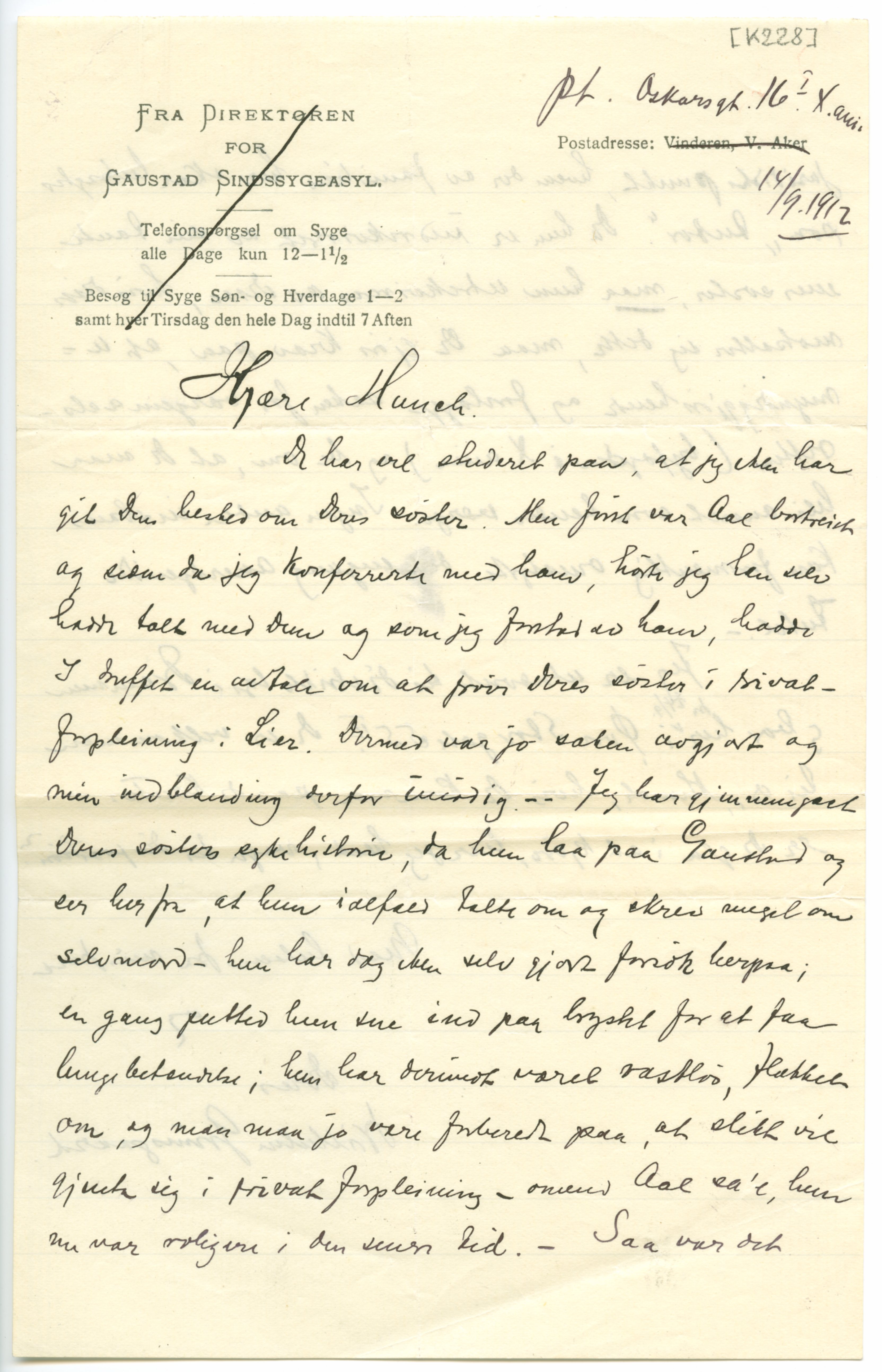 MM K 228, Munchmuseet. Datert 14.09.1912. Brev fra Wilhelm Grimsgaard.