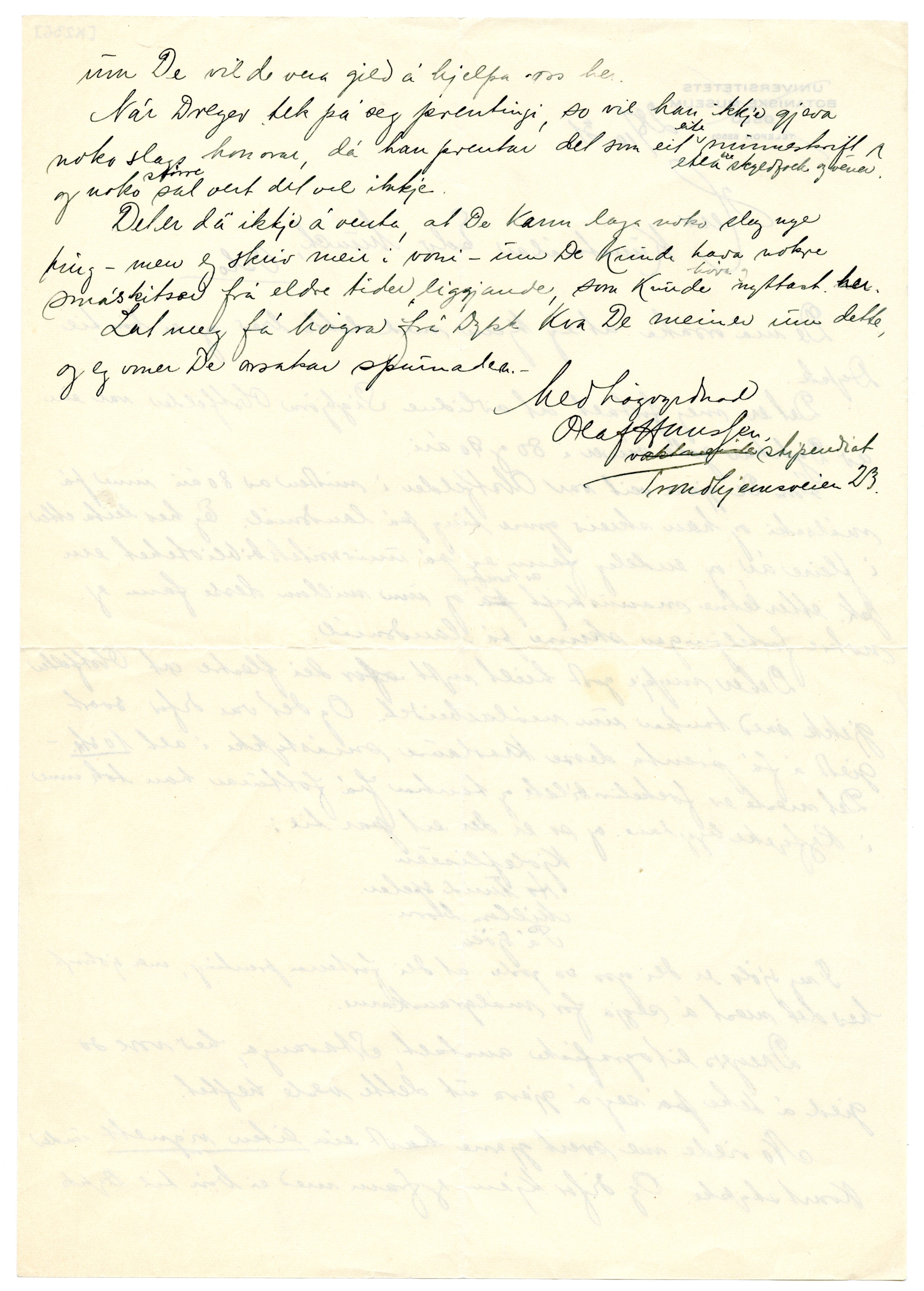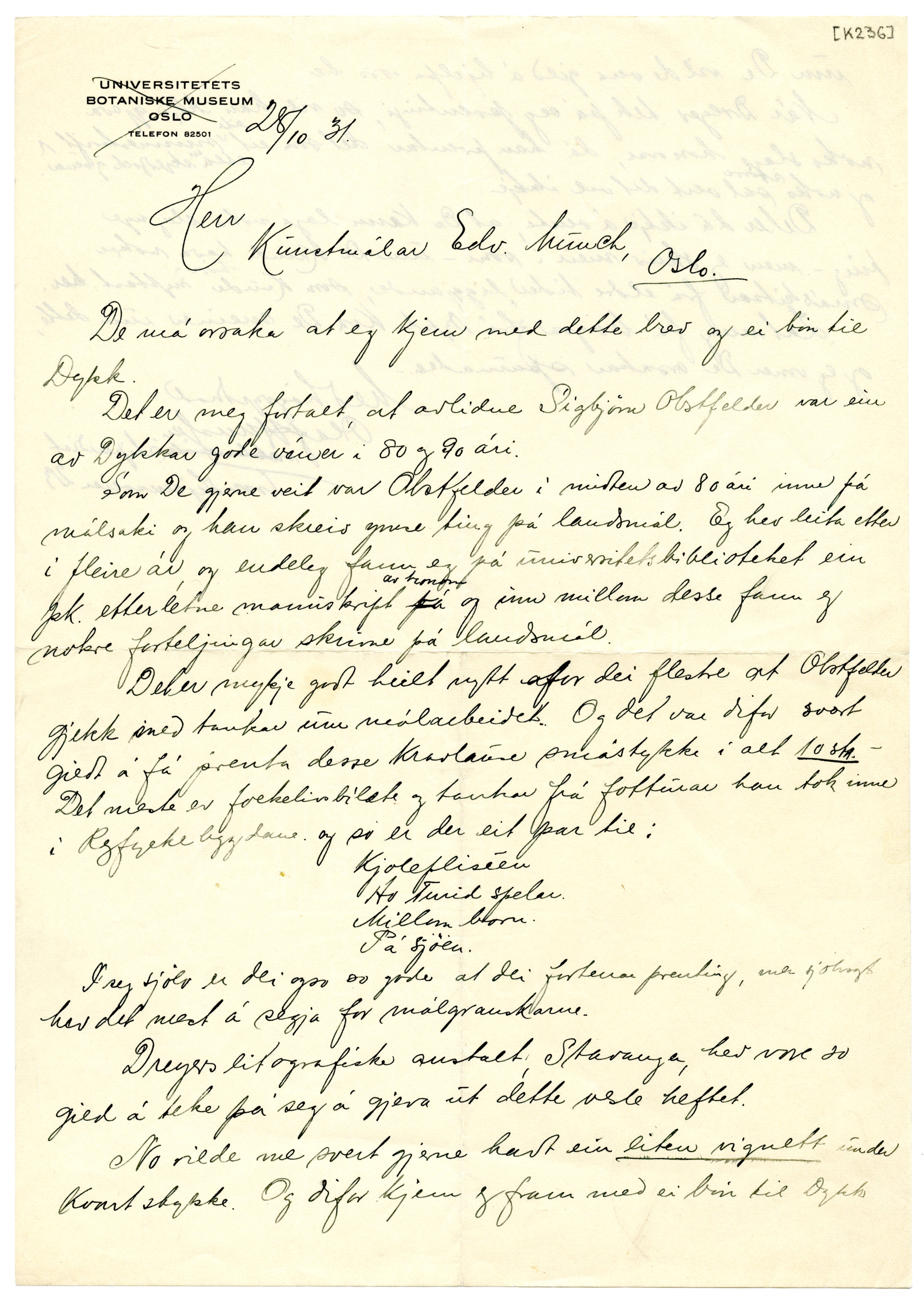 MM K 236, Munchmuseet. Datert 28.10.1931. Brev fra Olaf Hanssen.