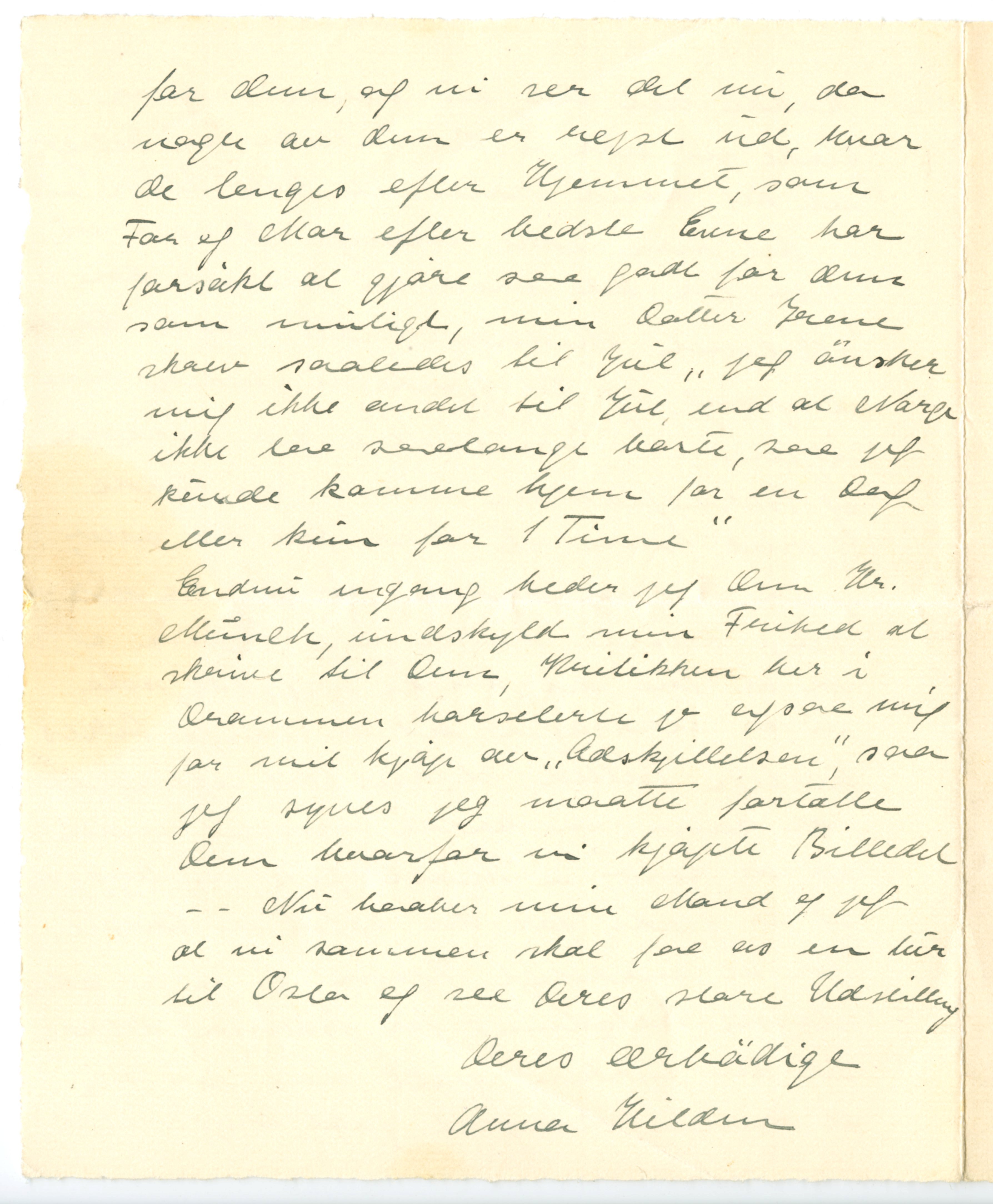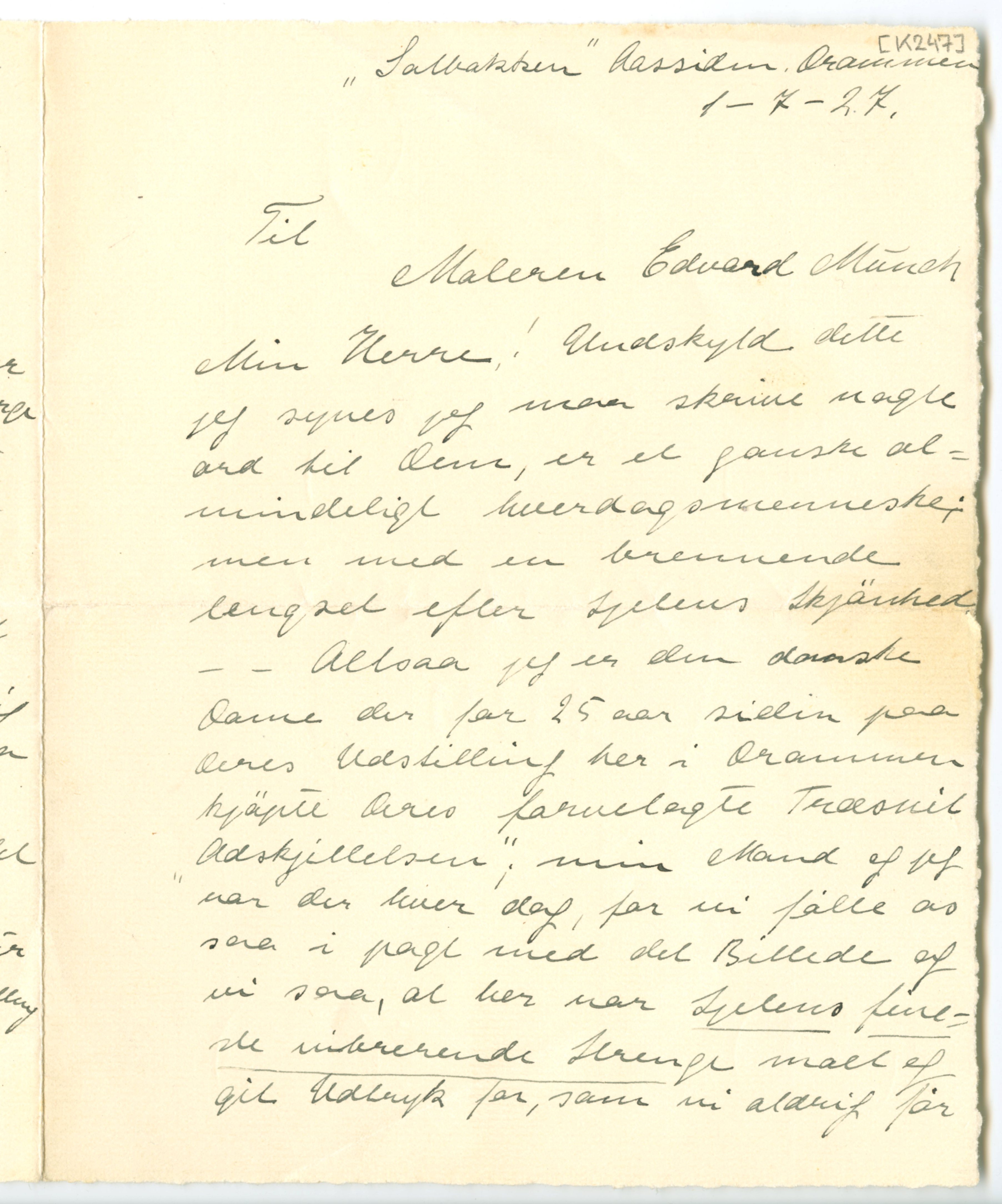 MM K 247, Munchmuseet. Datert 01.07.1927. Brev fra Anna Hilden.