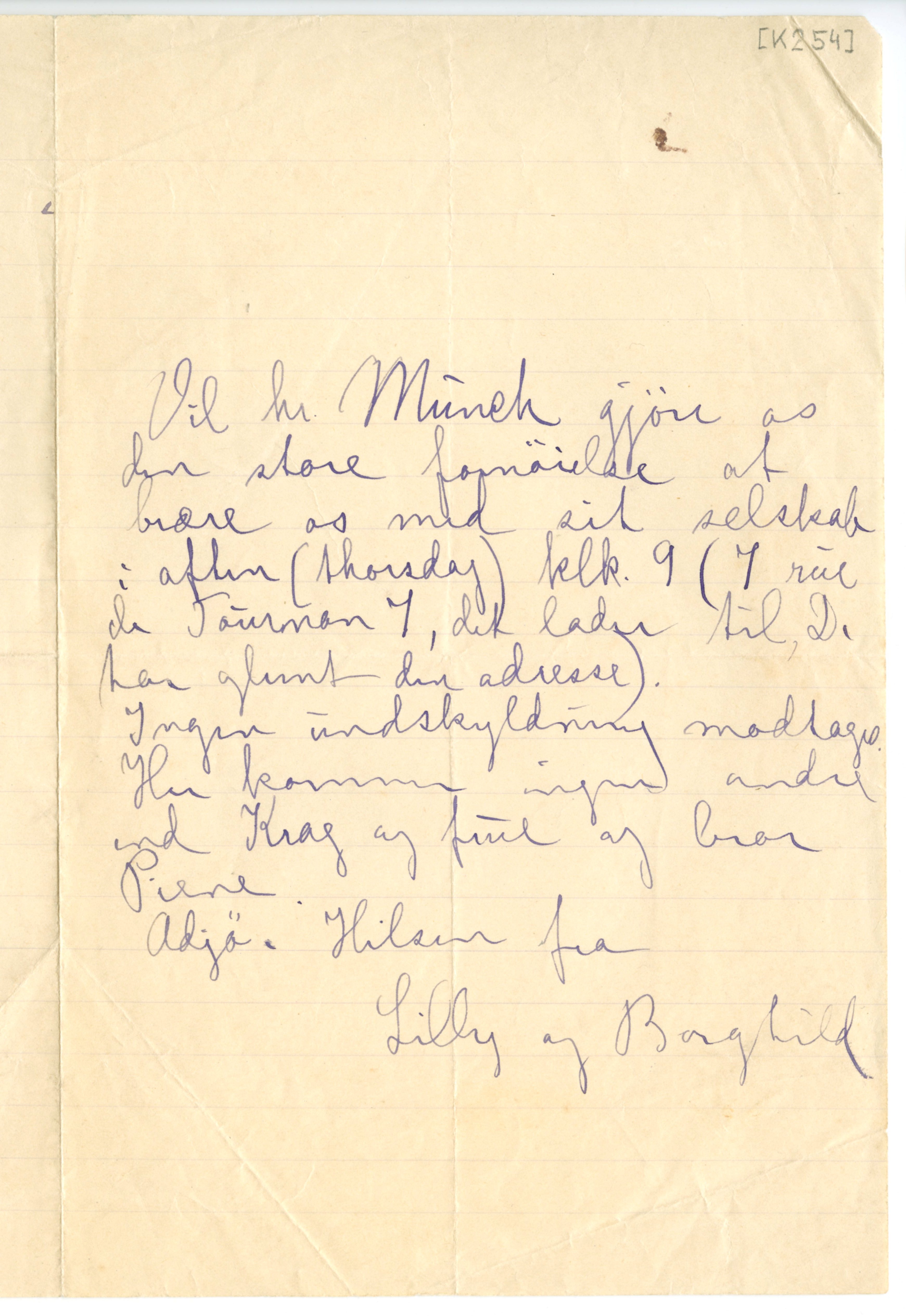 MM K 254, Munchmuseet. Ikke datert. Brev fra Lilly og Borghild Holmsen.