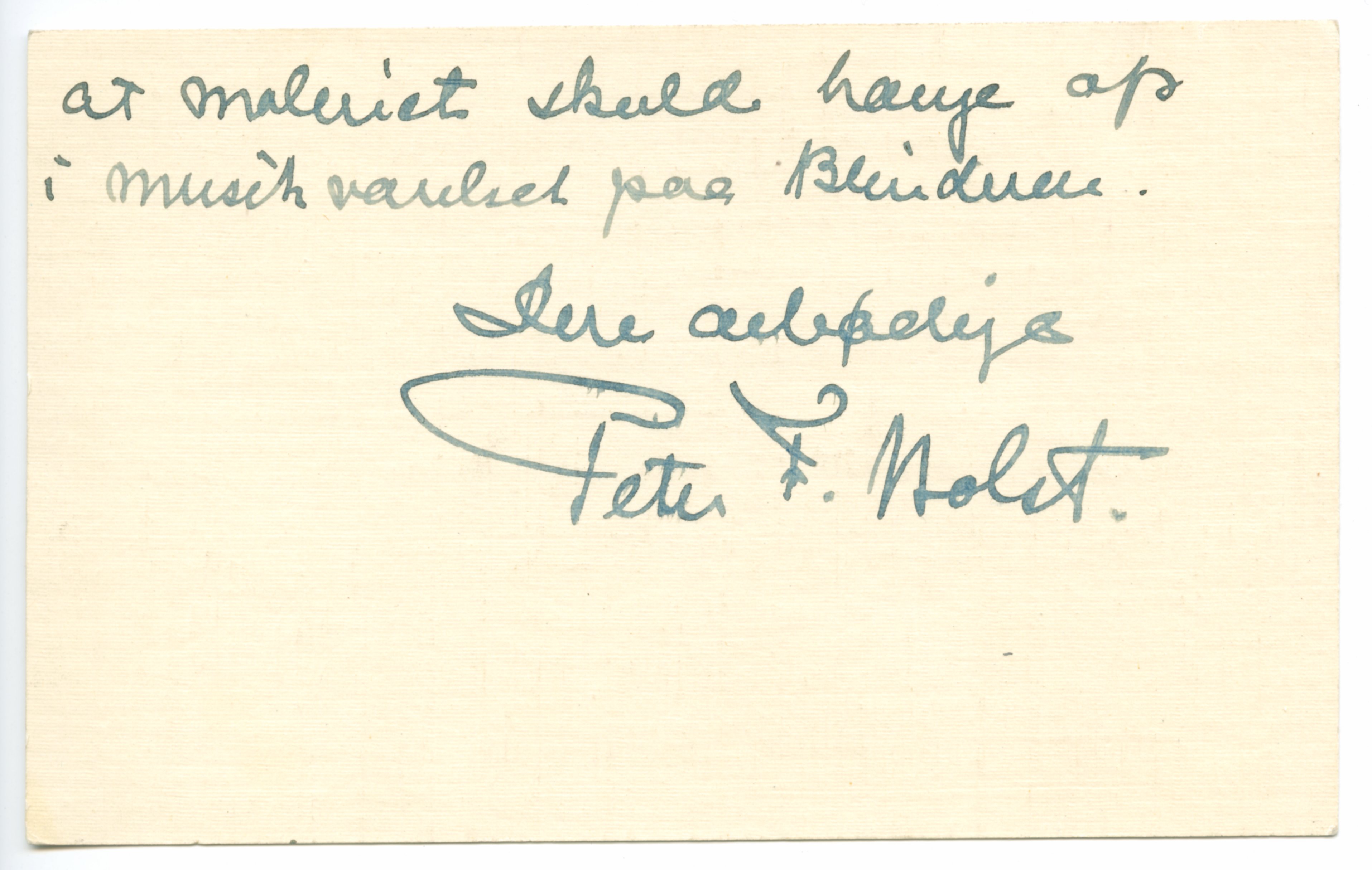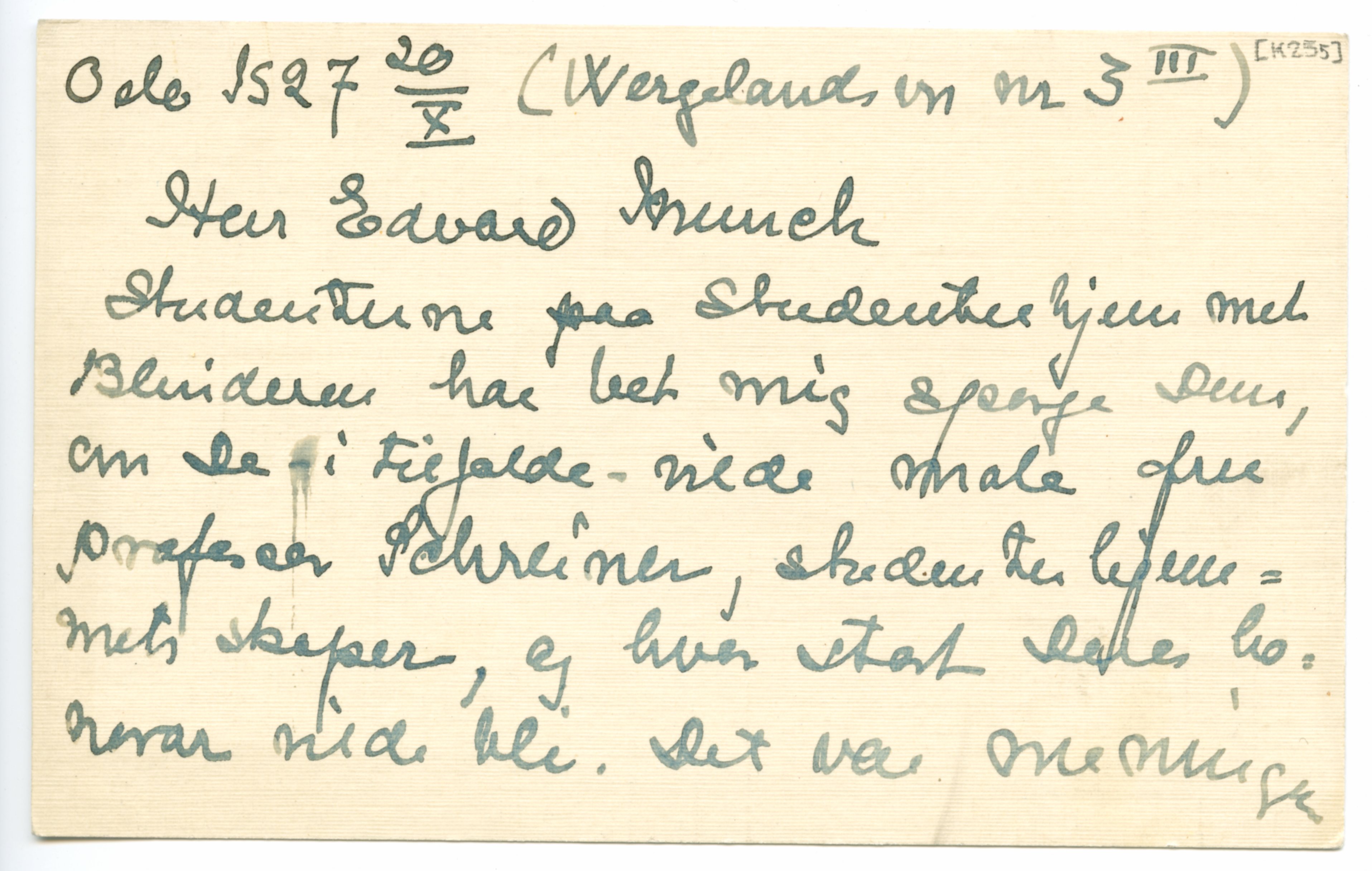 MM K 255, Munchmuseet. Datert 20.10.1927. Brev fra Peter F. Holst, Blindern Studenterhjem.