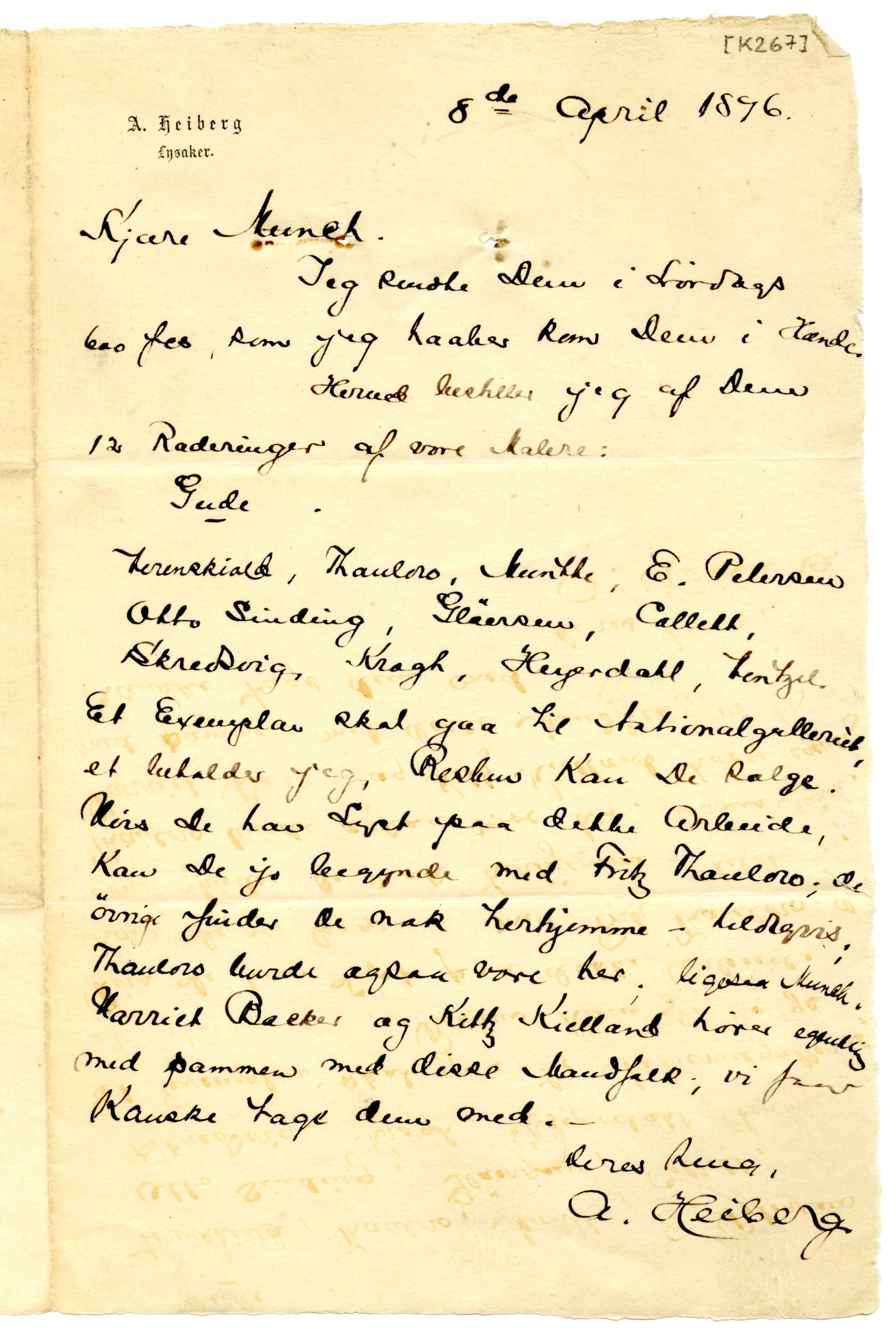 MM K 267, Munchmuseet. Datert 08.04.1896. Brev fra Axel Heiberg.