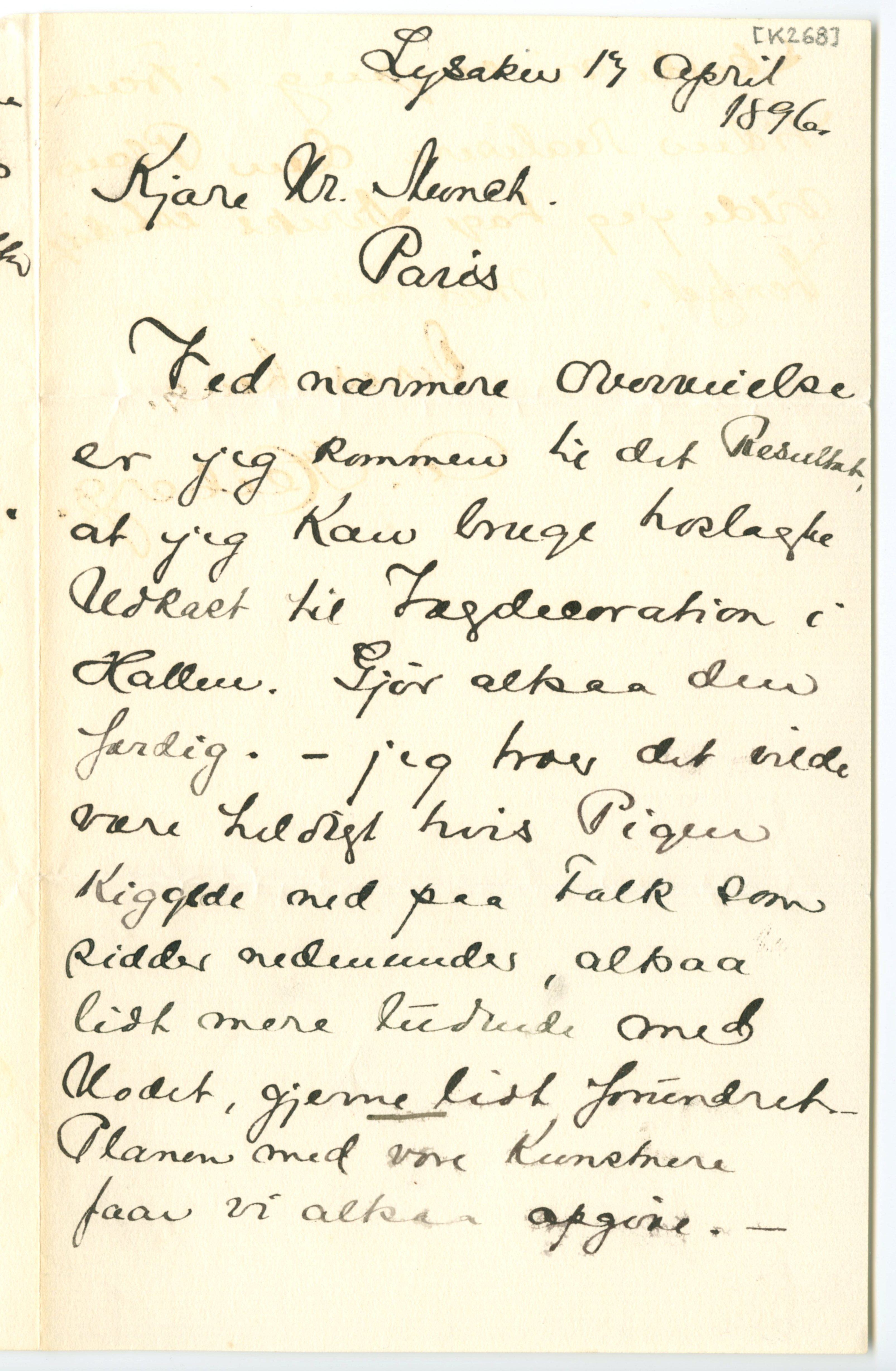 MM K 268, Munchmuseet. Datert 17.04.1896. Brev fra Axel Heiberg.