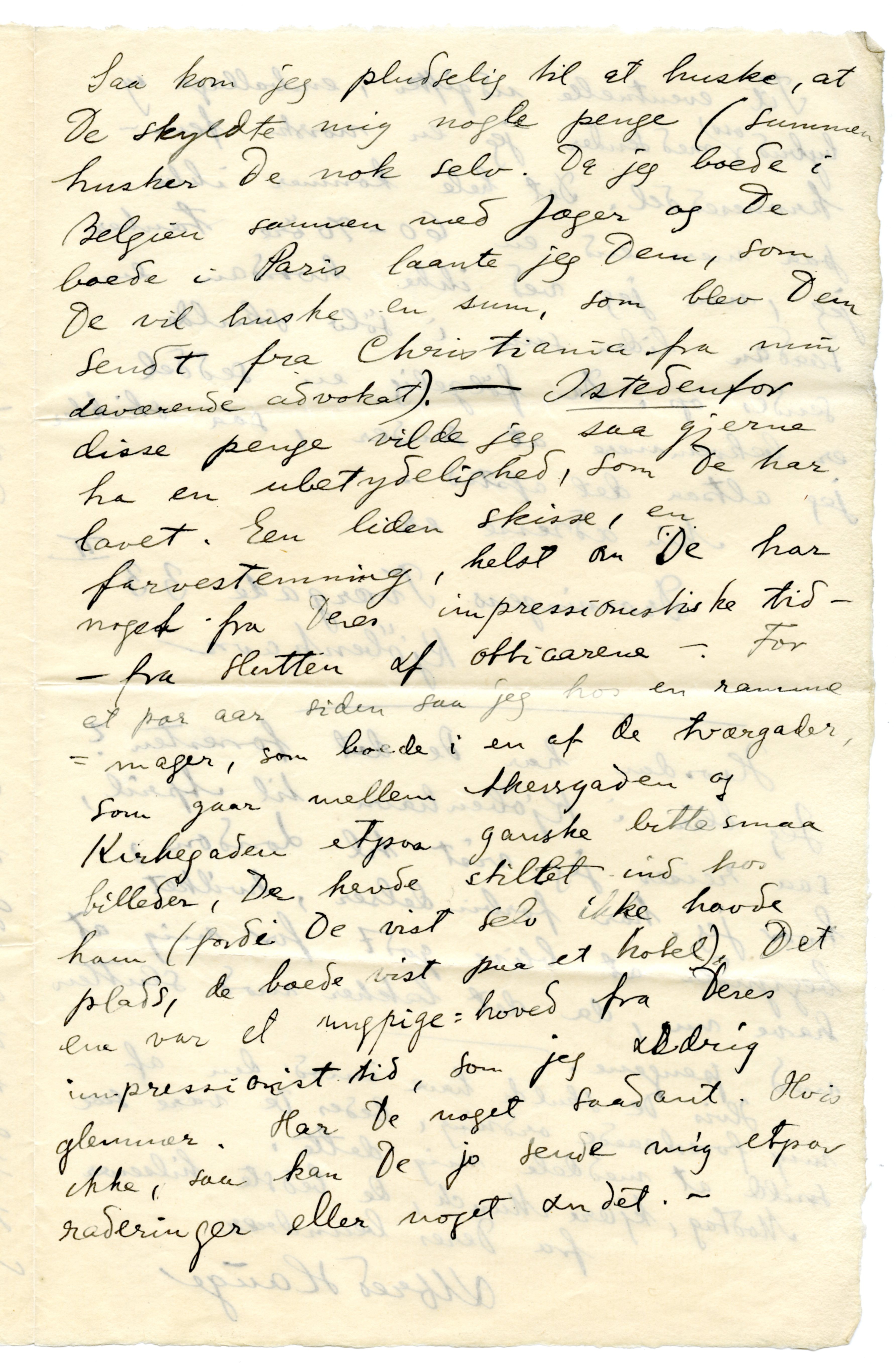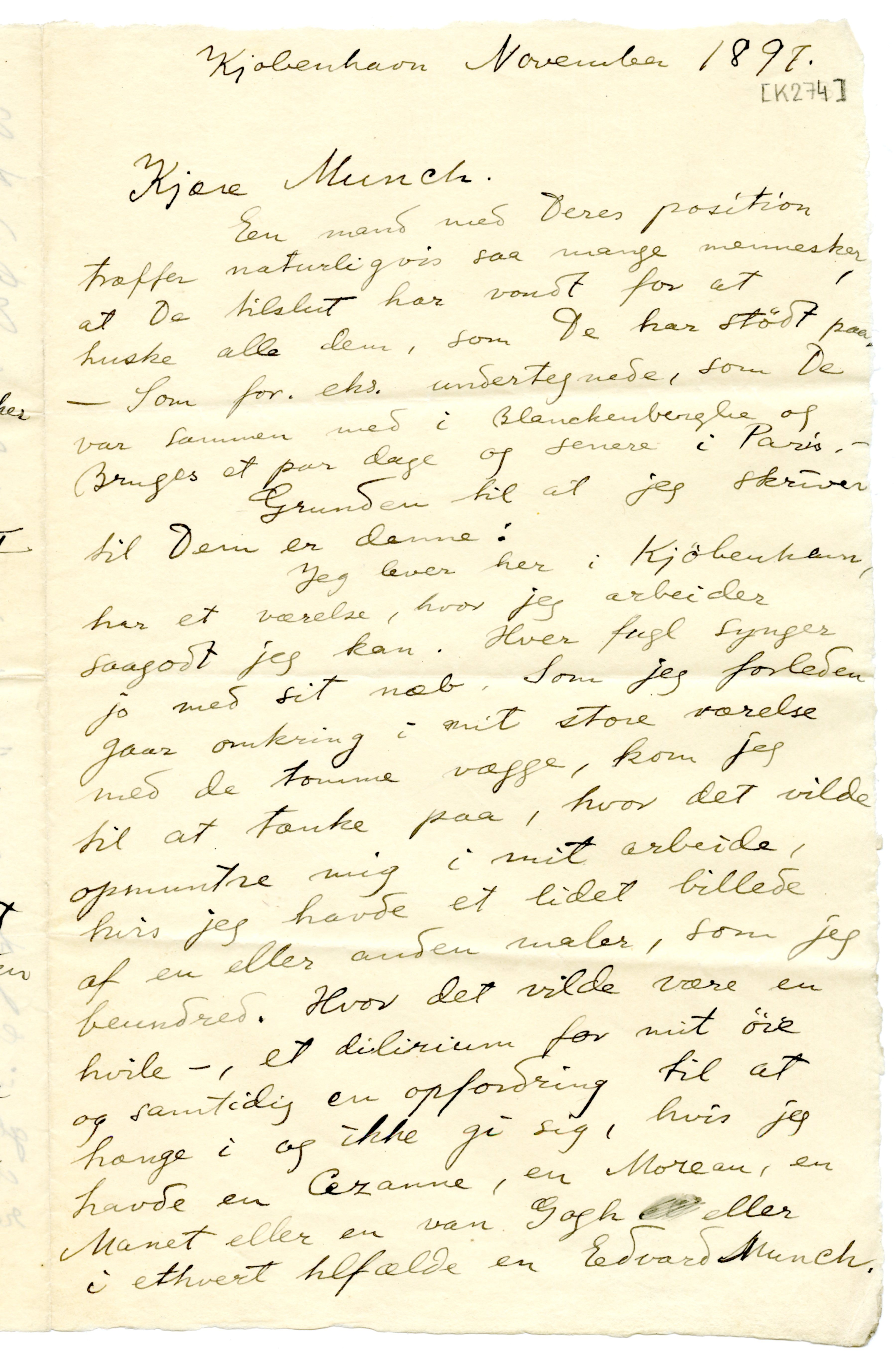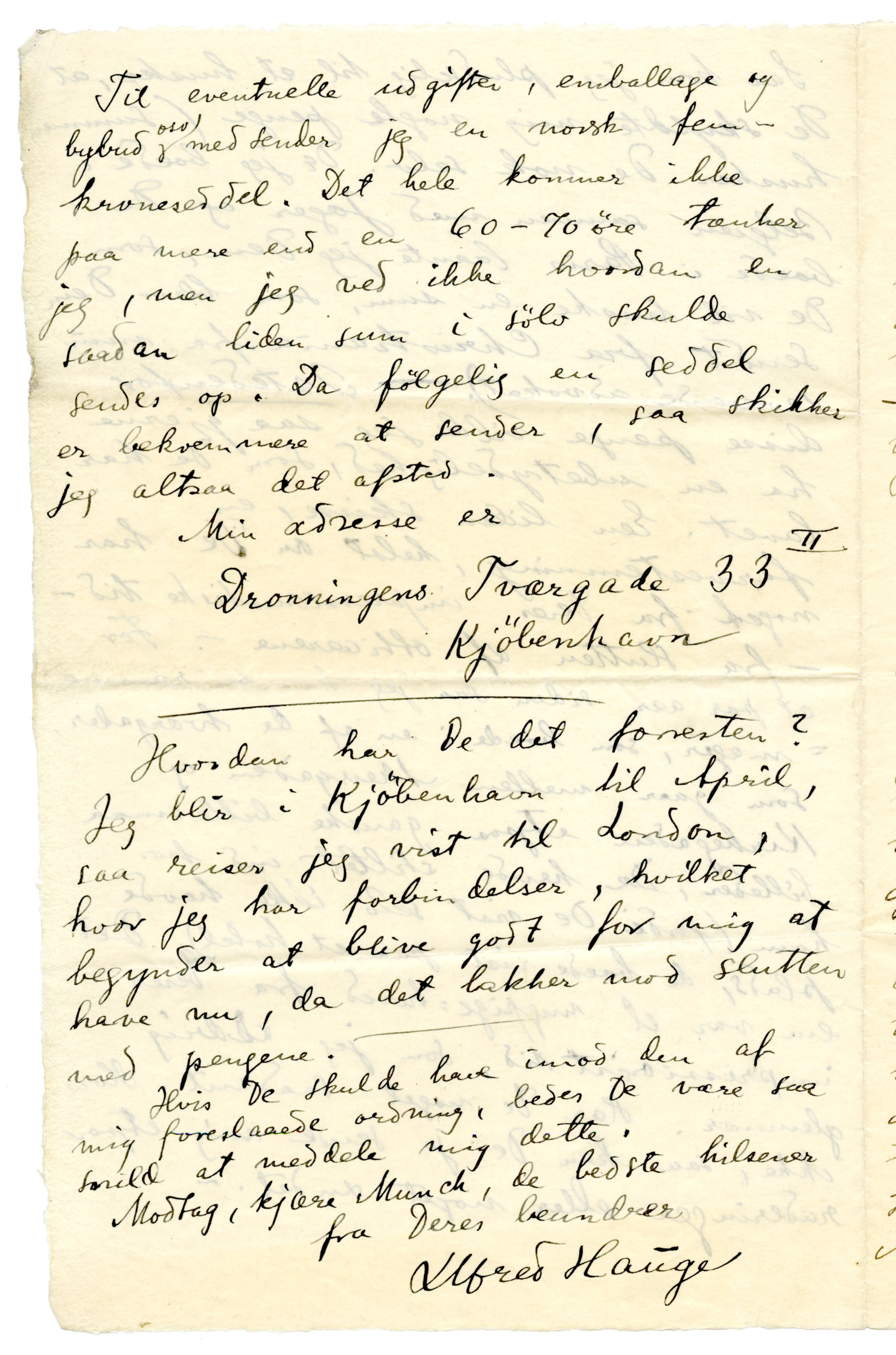 MM K 274, Munchmuseet. Datert [??].11.1897. Brev fra Alfred Hauge.