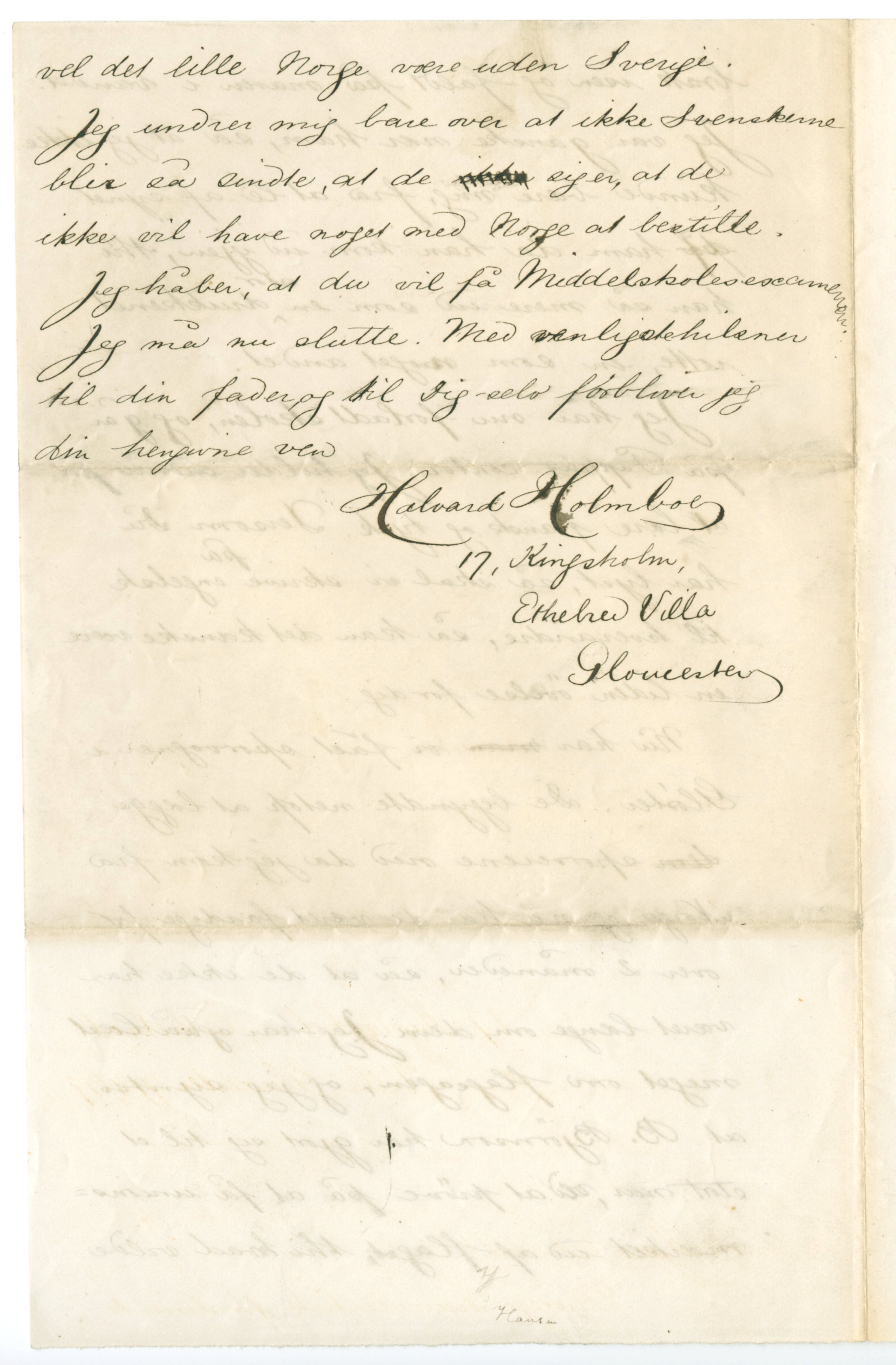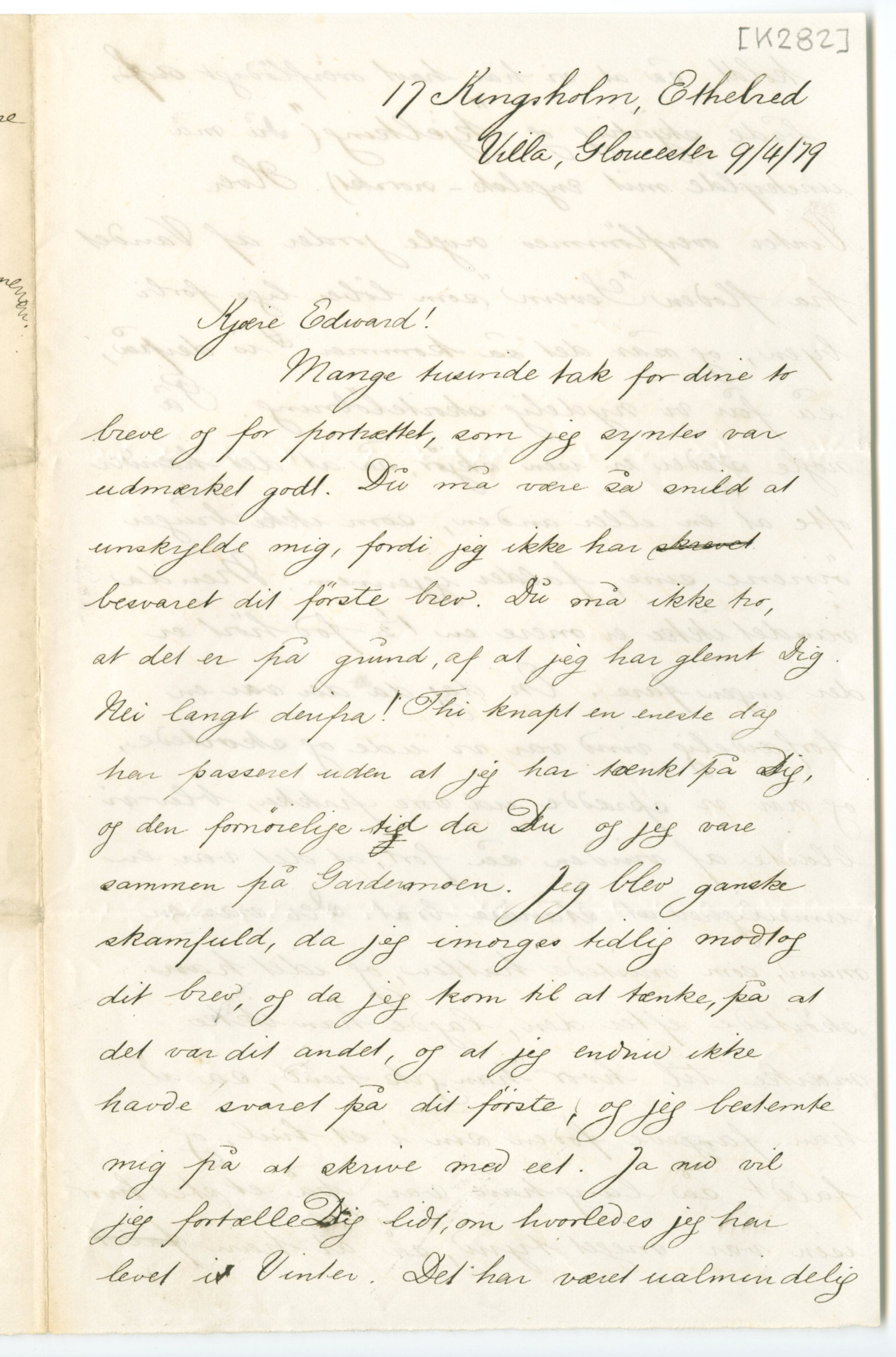 MM K 282, Munchmuseet. Datert 04.09.1879. Brev fra Halvard Holmboe.