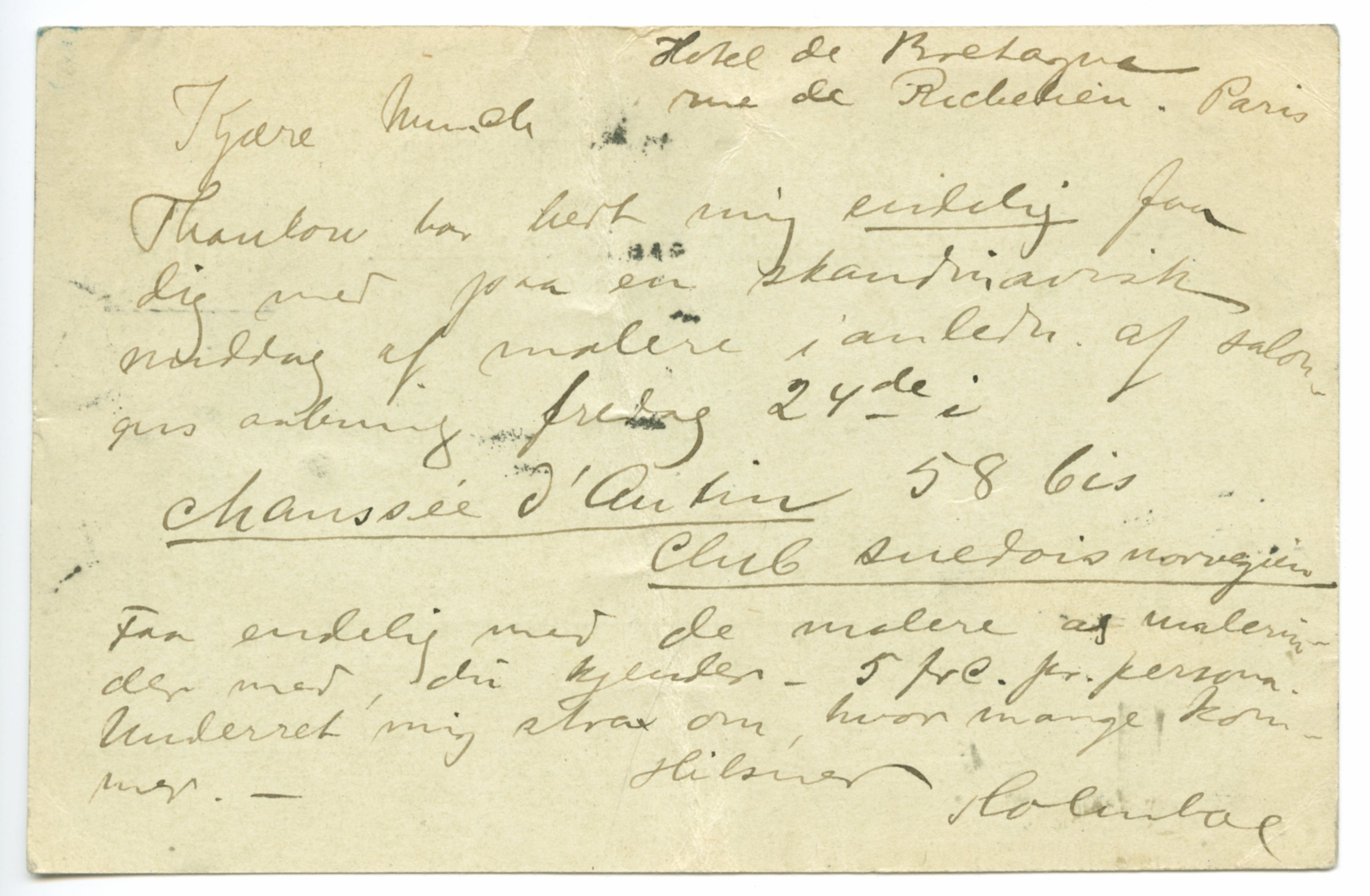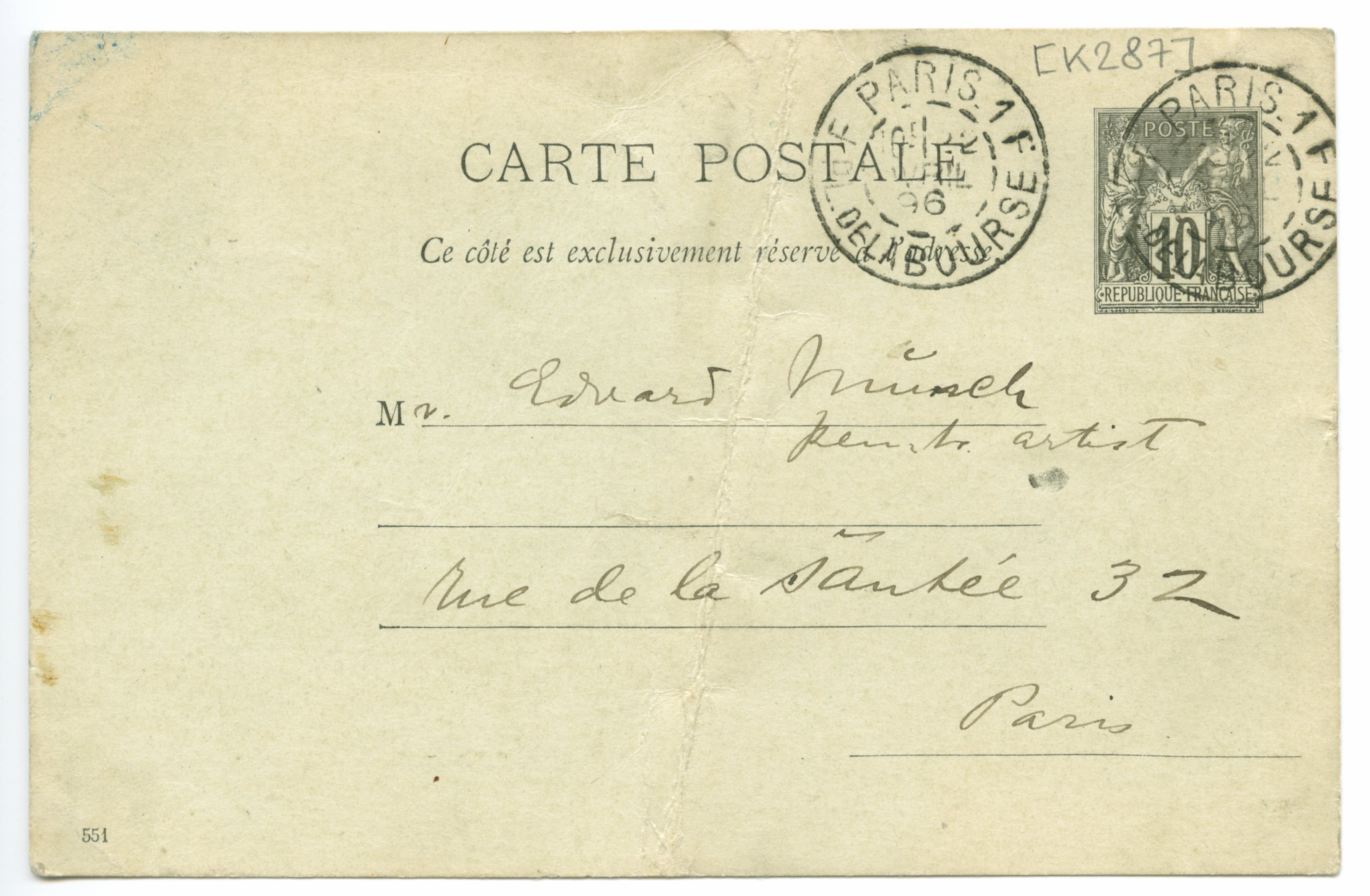 MM K 287, Munchmuseet. Datert 10.04.1896. Brev fra Thorolf Holmboe.