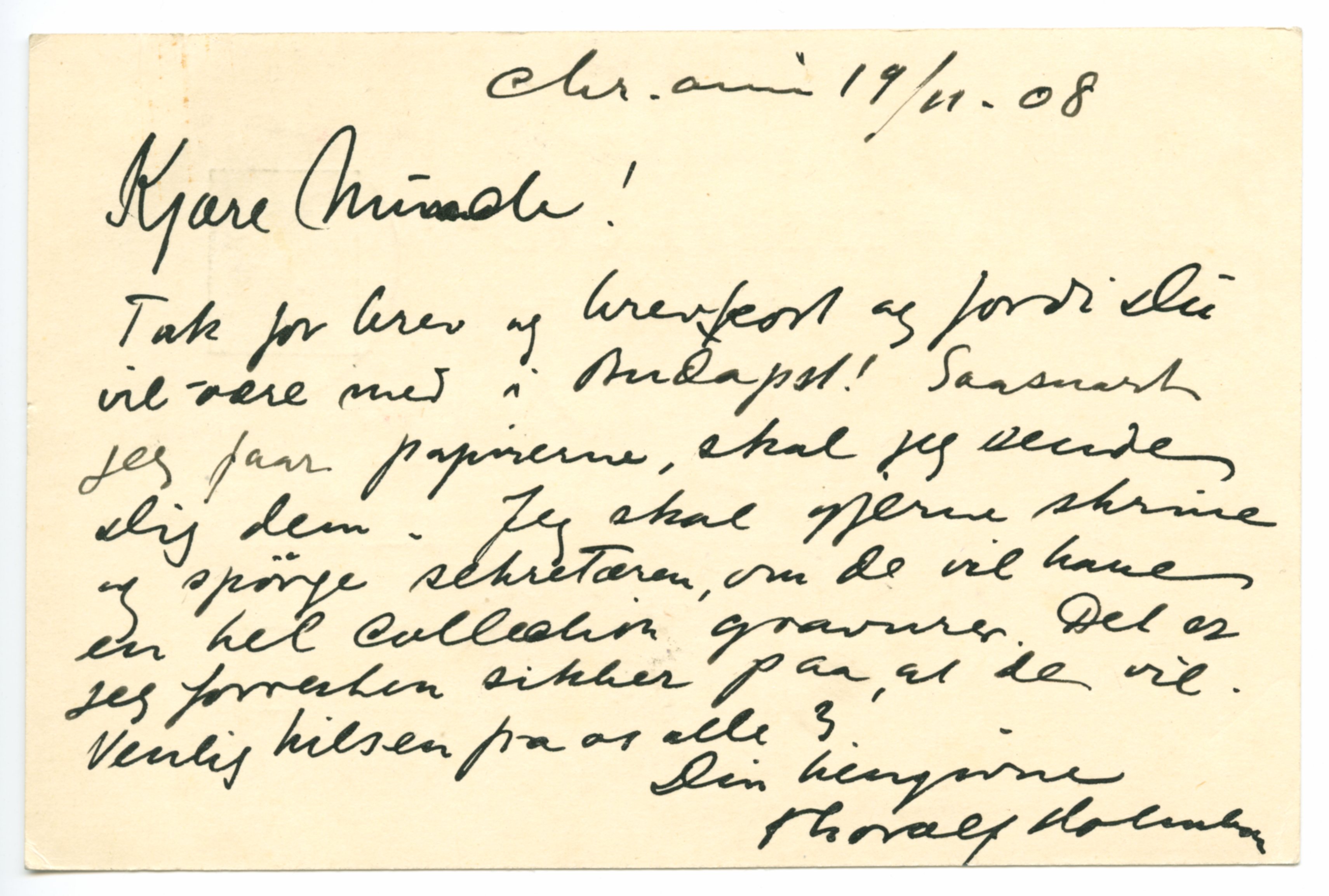 MM K 290, Munchmuseet. Datert 19.11.1908. Brev fra Thorolf Holmboe.