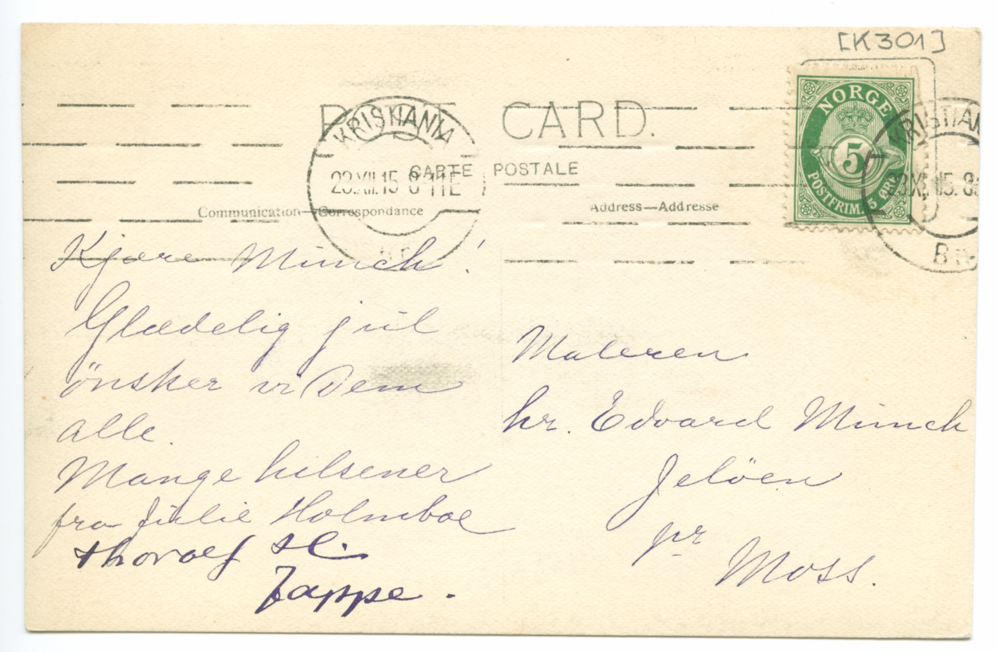 MM K 301, Munchmuseet. Datert 23.12.1915. Brev fra Thorolf Holmboe, Julie Holmboe, Jappe Nilssen.