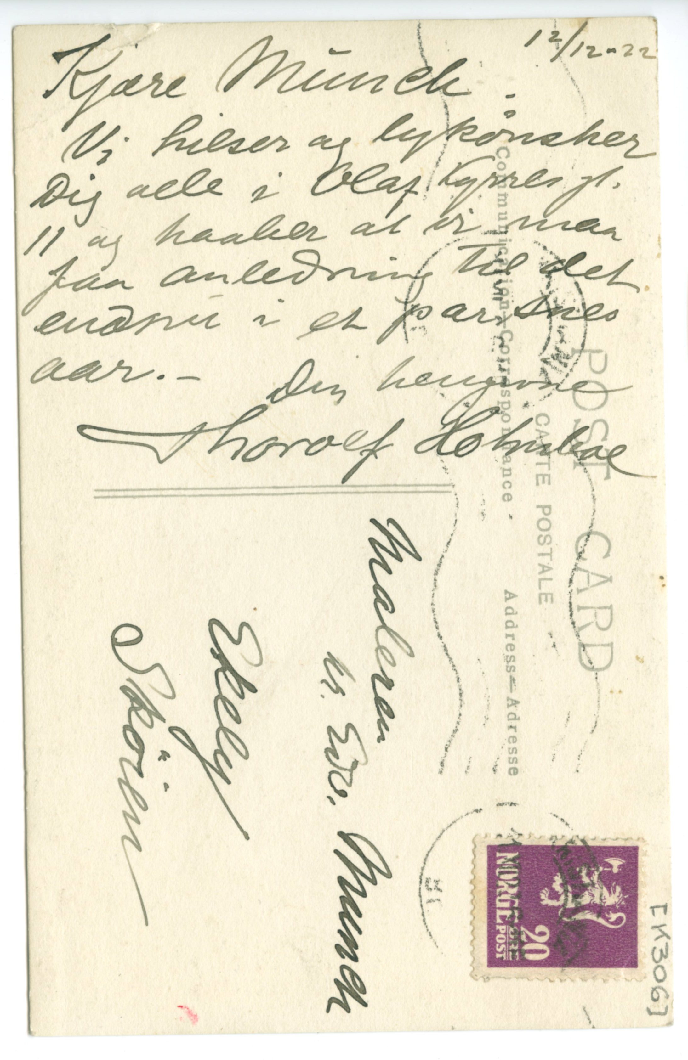 MM K 306, Munchmuseet. Datert 12.12.1922. Brev fra Thorolf Holmboe.