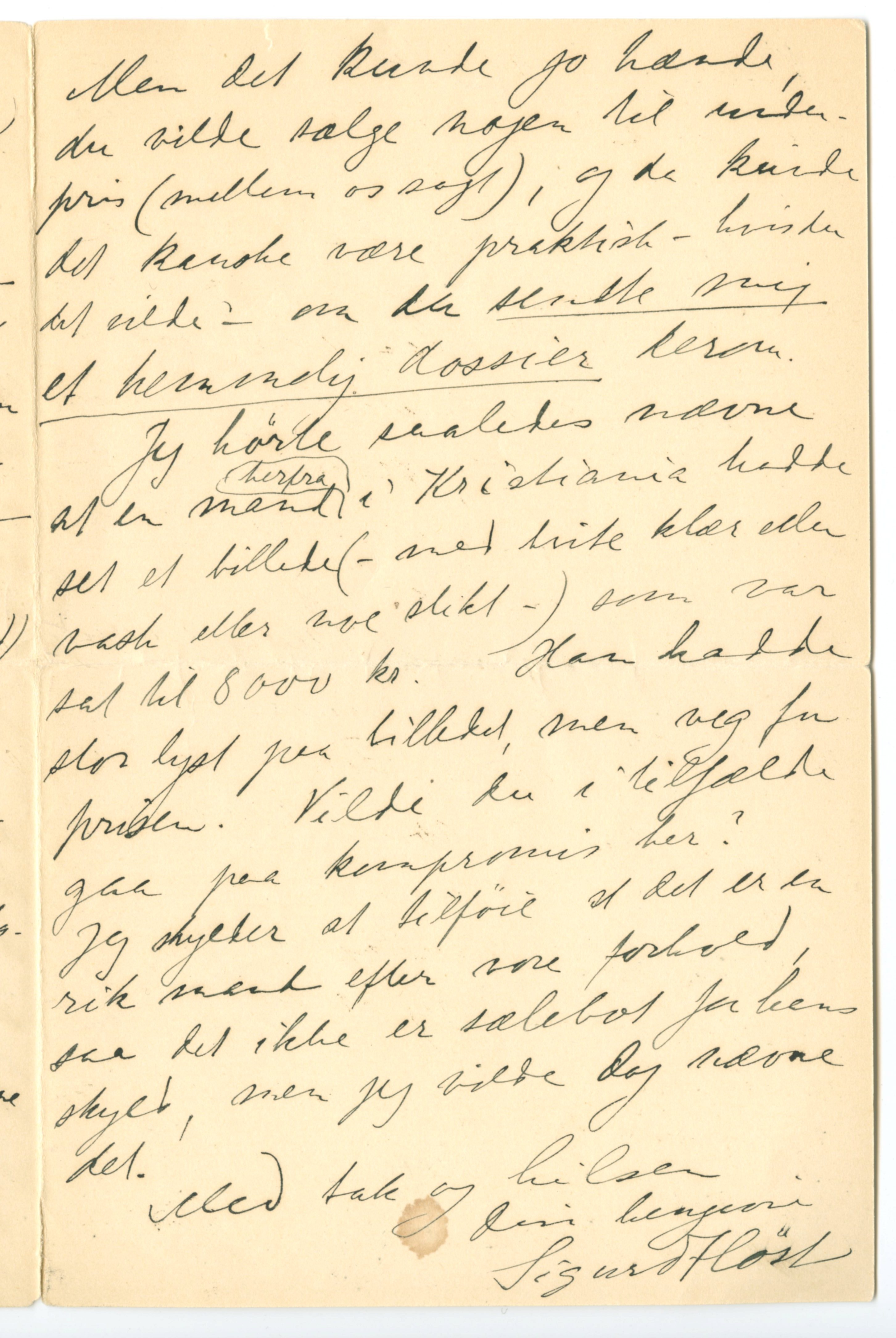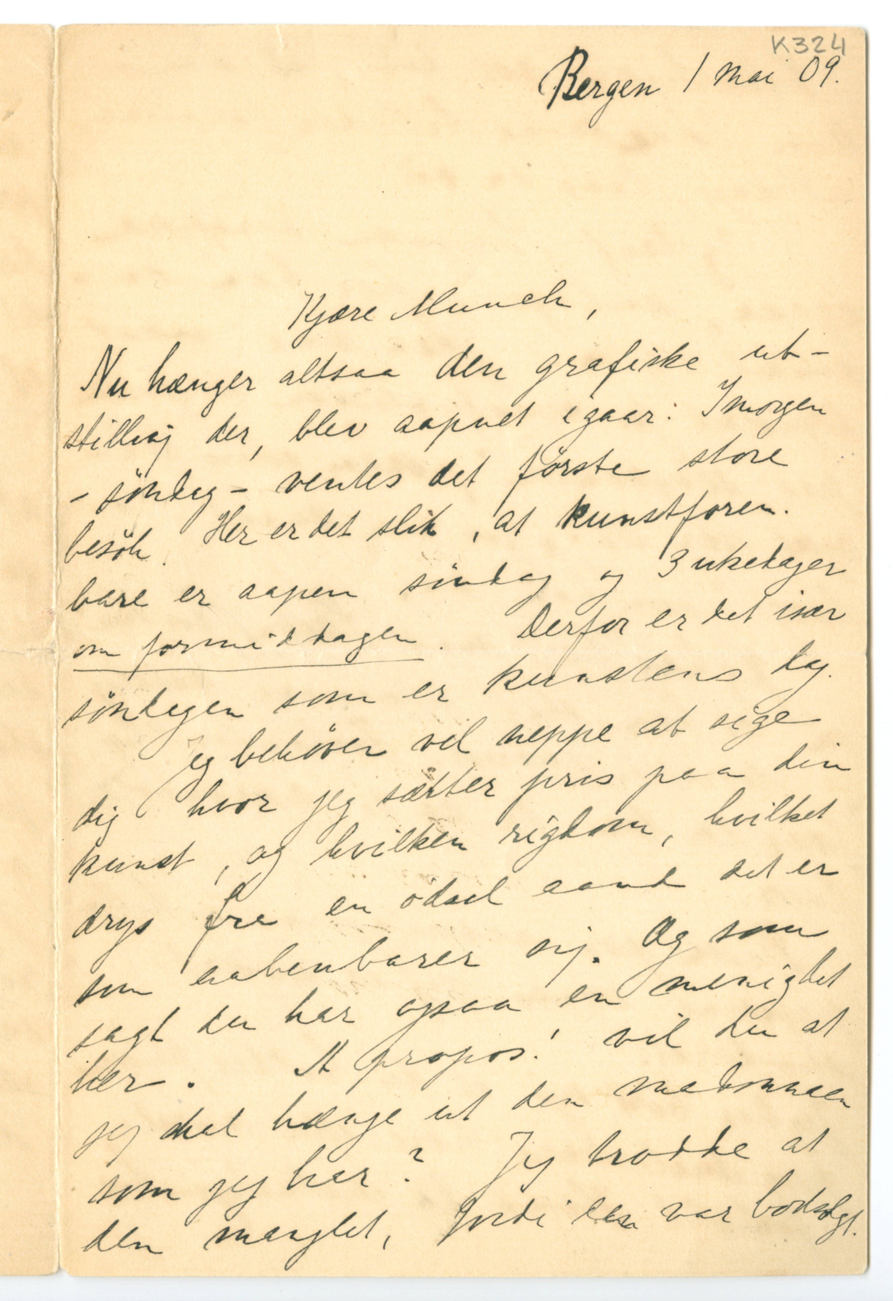 MM K 324, Munchmuseet. Datert 01.05.1909. Brev fra Sigurd Høst.