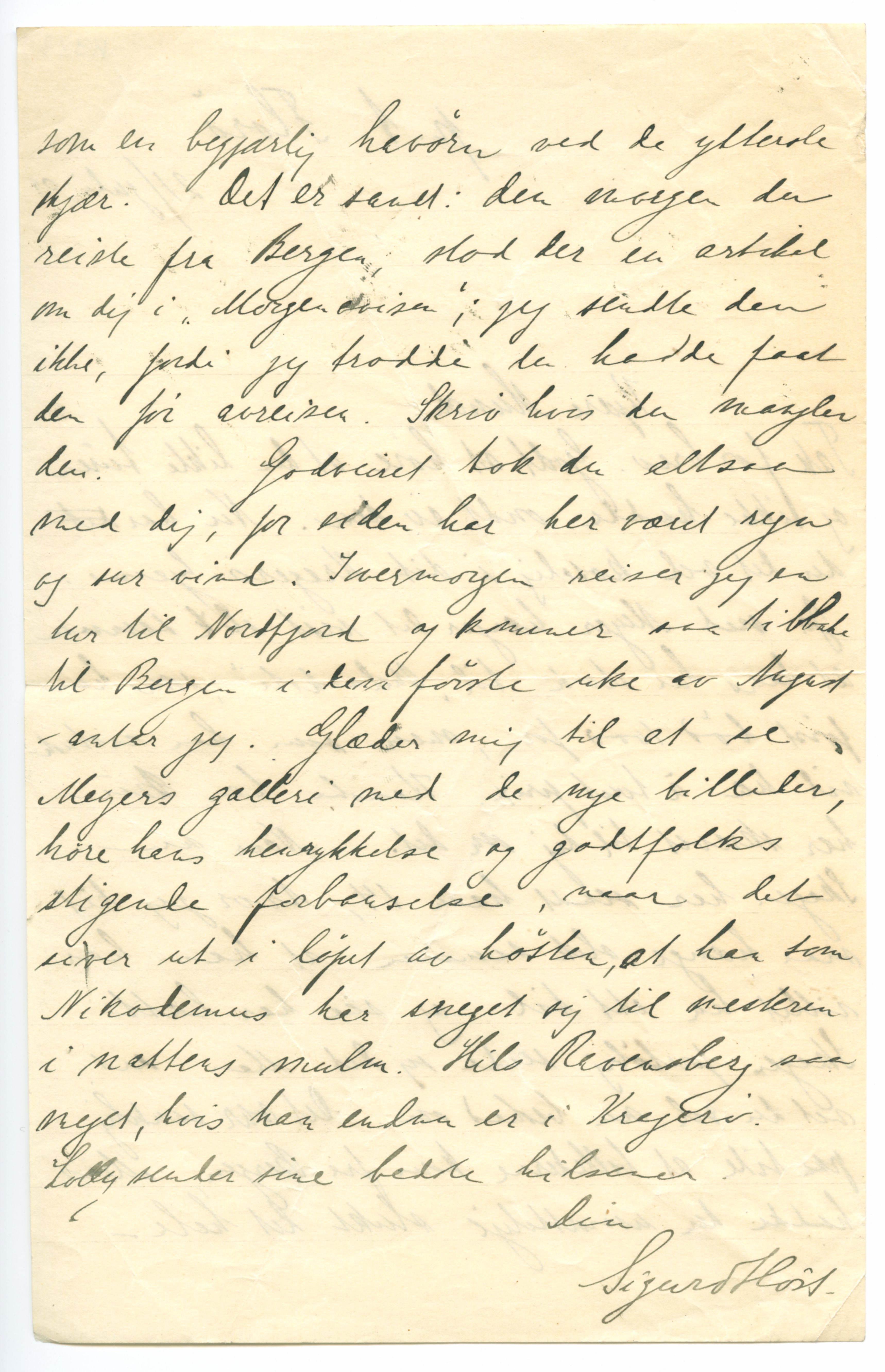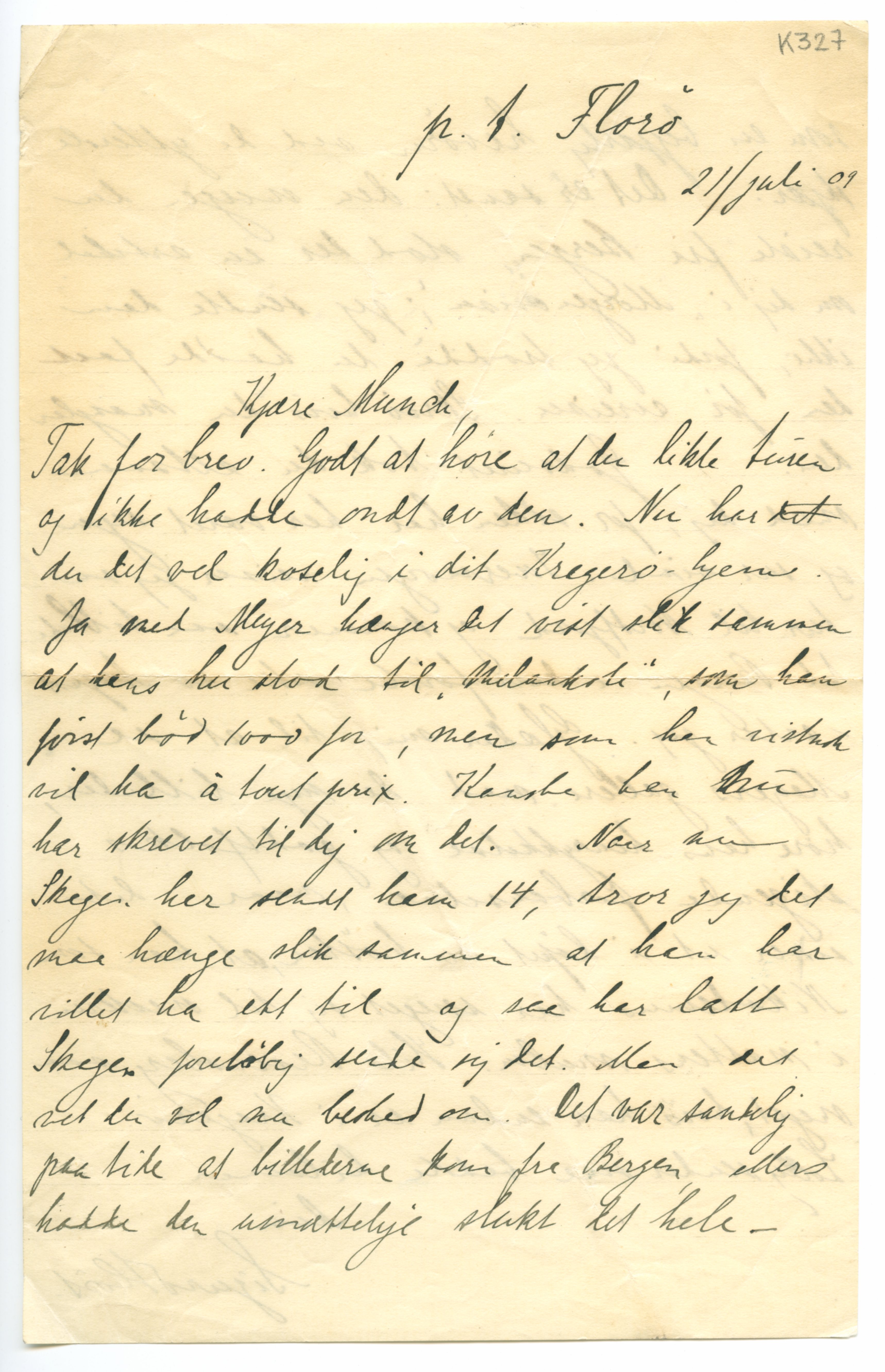 MM K 327, Munchmuseet. Datert 21.07.1909. Brev fra Sigurd Høst.